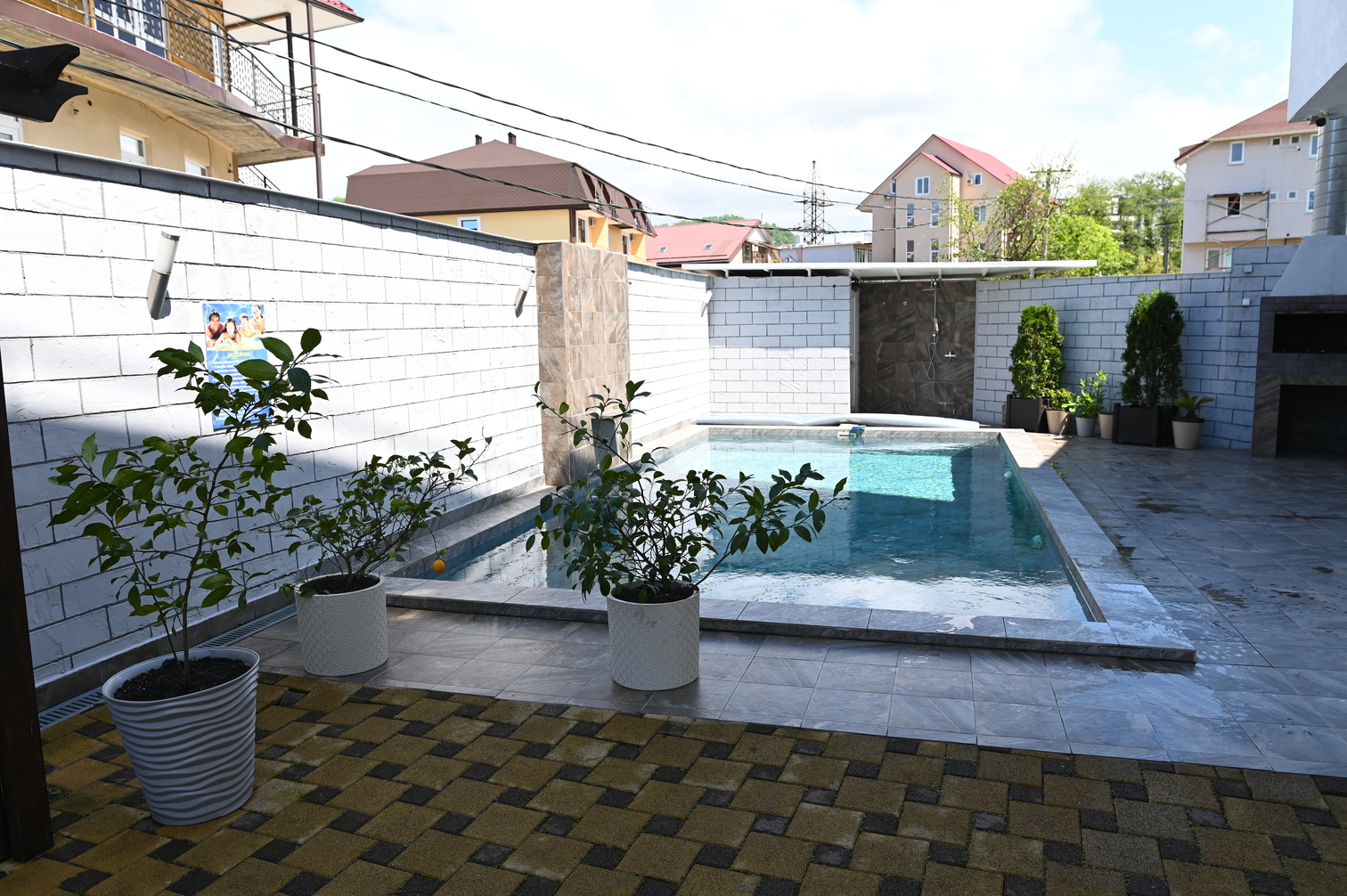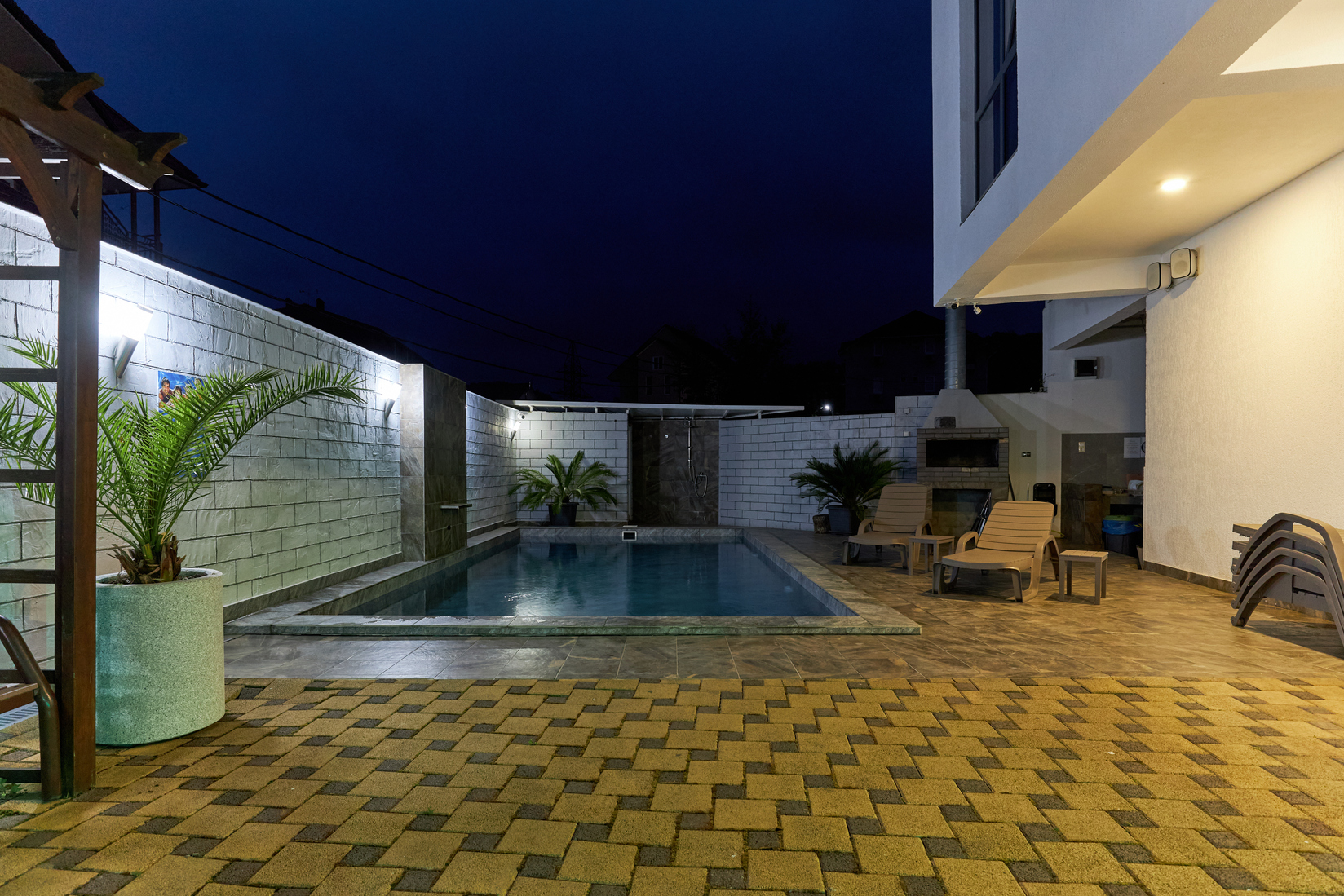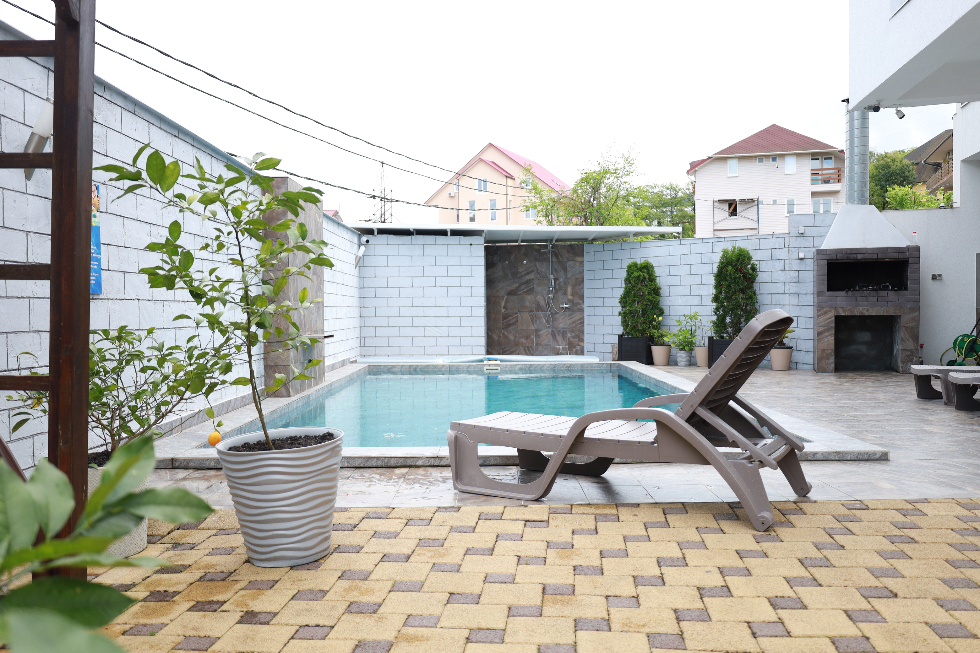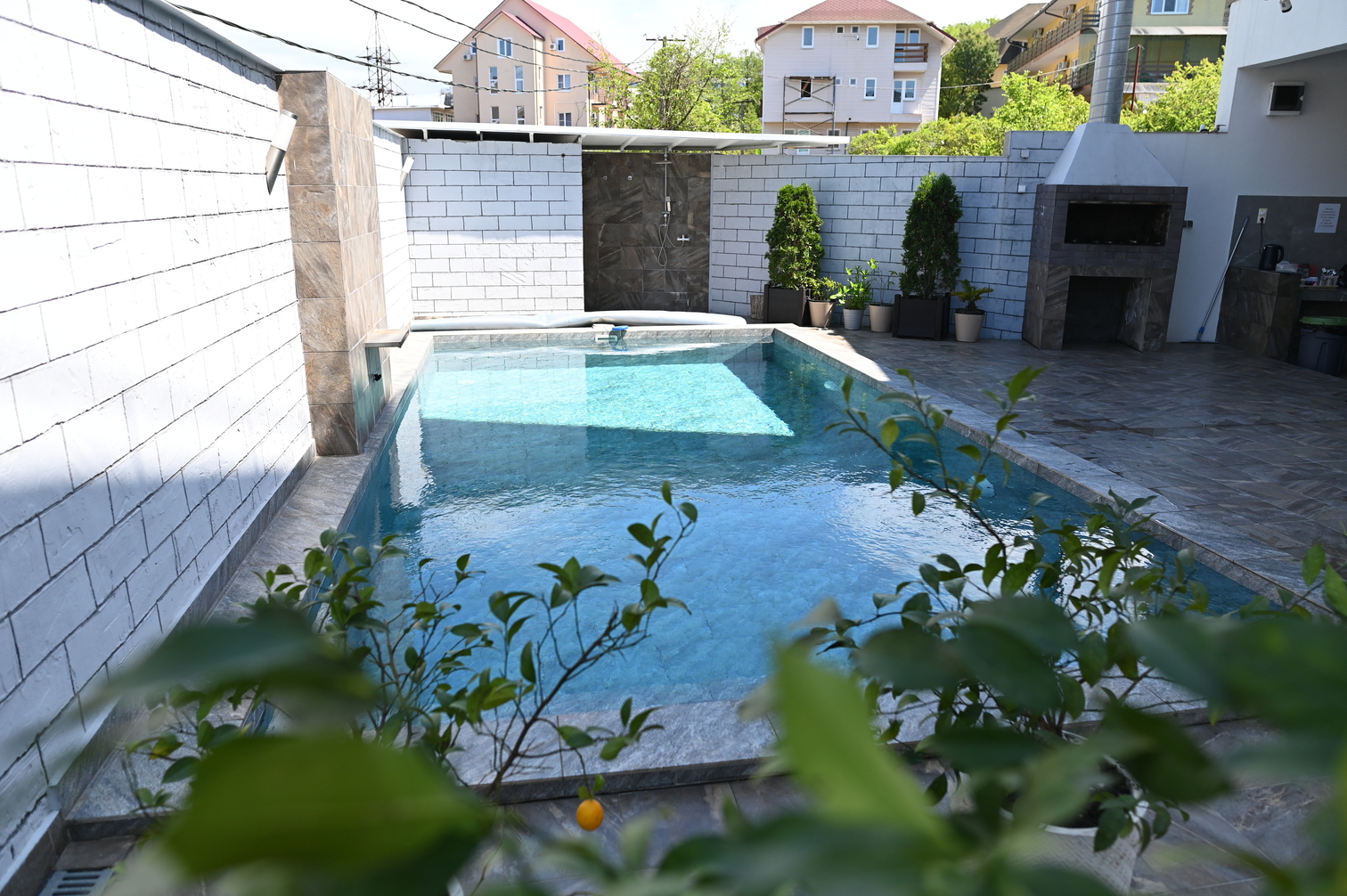 На первом этаже гостевого дома работает общая кухня, полностью оборудованная необходимой посудой и техникой. Во внутреннем дворике – открытый бассейн с подогревом, а рядом с ним – небольшая зона для загара с шезлонгами. Также в распоряжении гостей – беспроводной интернет и прачечная. Родителям с малышами администрация предоставляет в аренду детские кроватки, а для автовладельцев доступны парковочные места.