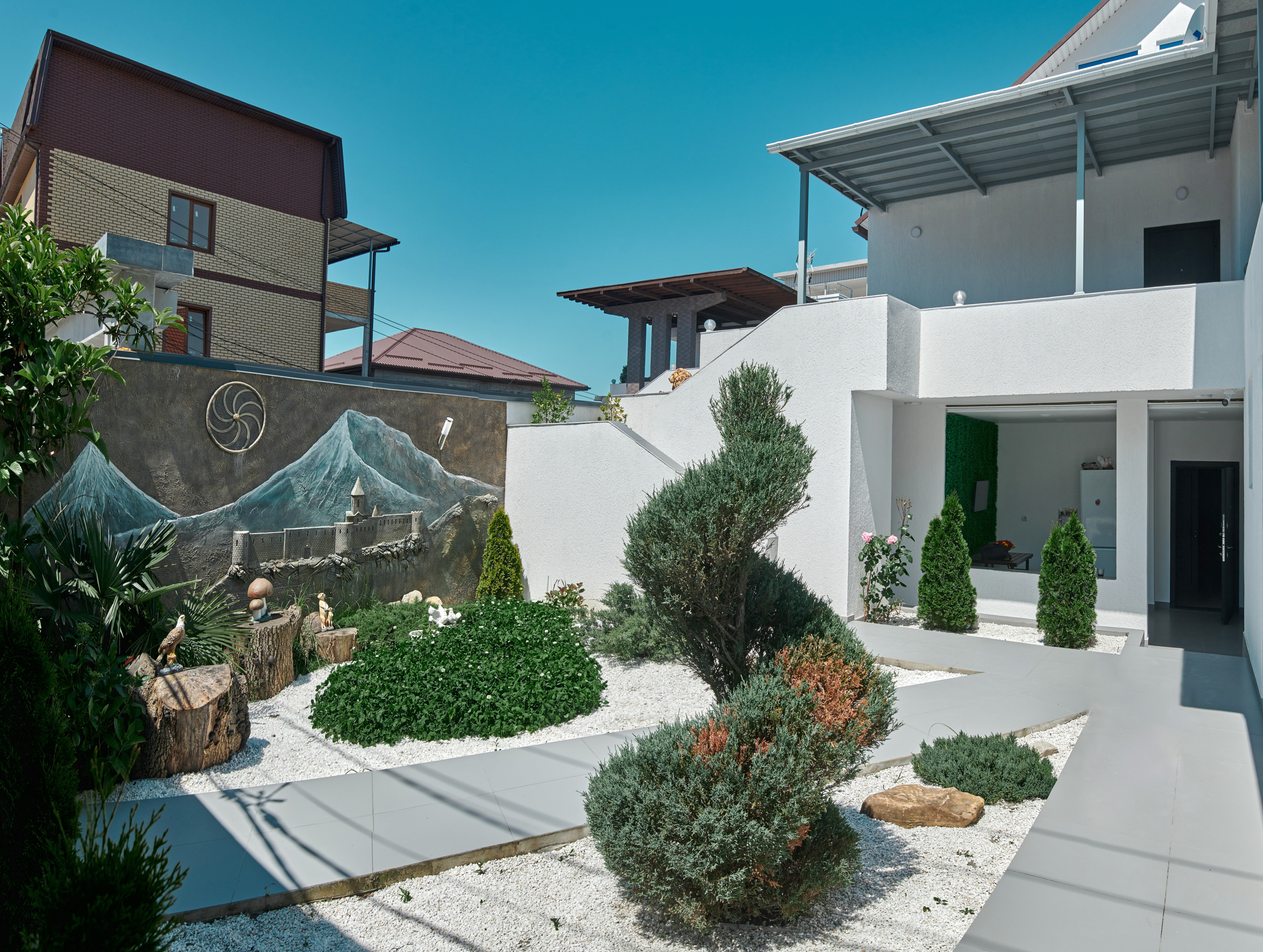 Гостевой дом «Madisson Rodina» находится на берегу Черного моря в курортном поселке Лоо, расположенном в пригороде Сочи. В непосредственной близости – продуктовые магазины, столовые, кафе, железнодорожная станция «Горны воздух». Всего в 5 минутах ходьбы – аквапарк, парк аттракционов, дельфинарий. За полчаса можно доехать до железнодорожного вокзала Сочи, куда прибывают поезда из Москвы, Петербурга и других городов, а до аэропорта, расположенного в Адлере, 59 километров.