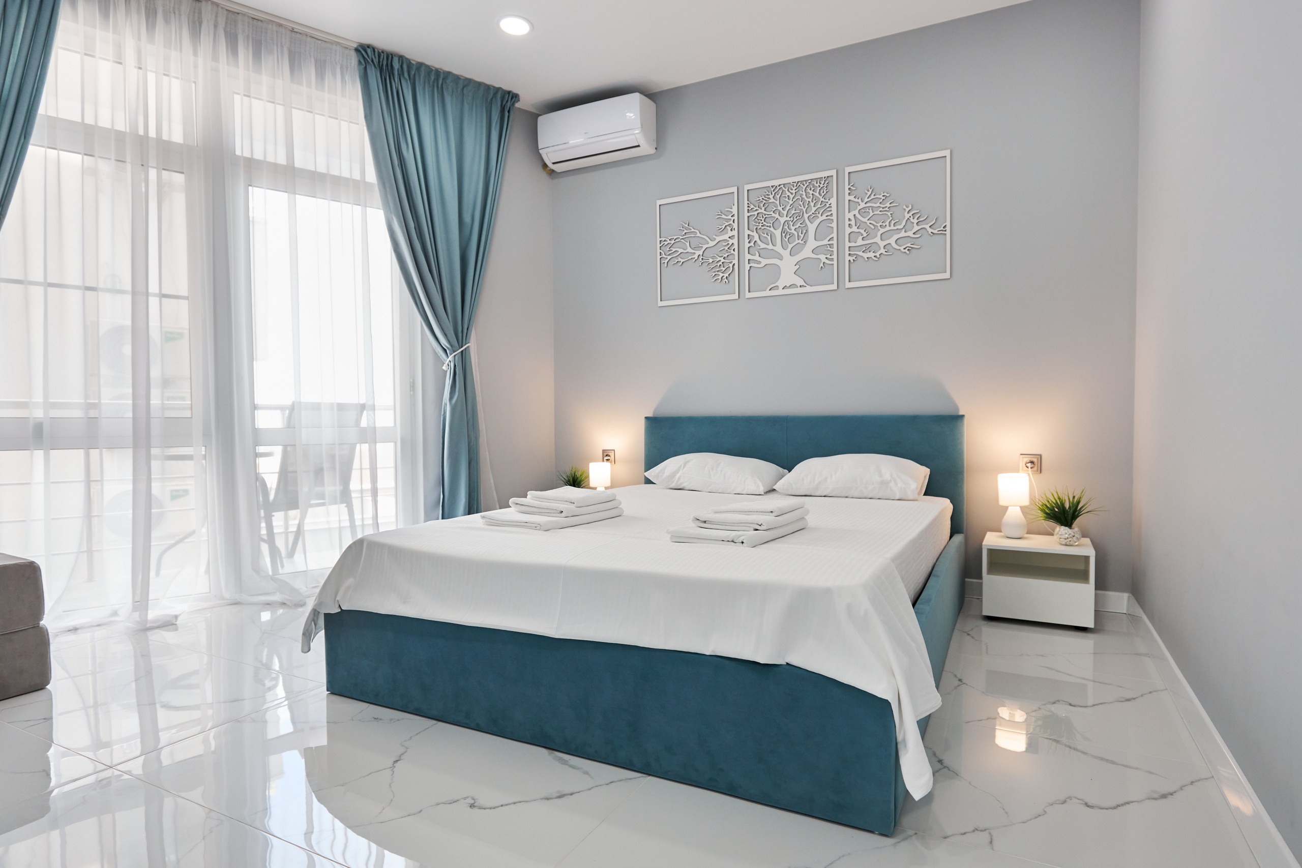 вешалка: ; диван раскладной: 2; зеркало: ; кровать двуспальная: 2; прикроватные тумбочки: ; стол: ; столик журнальный: ; стулья: ; шкаф: ;