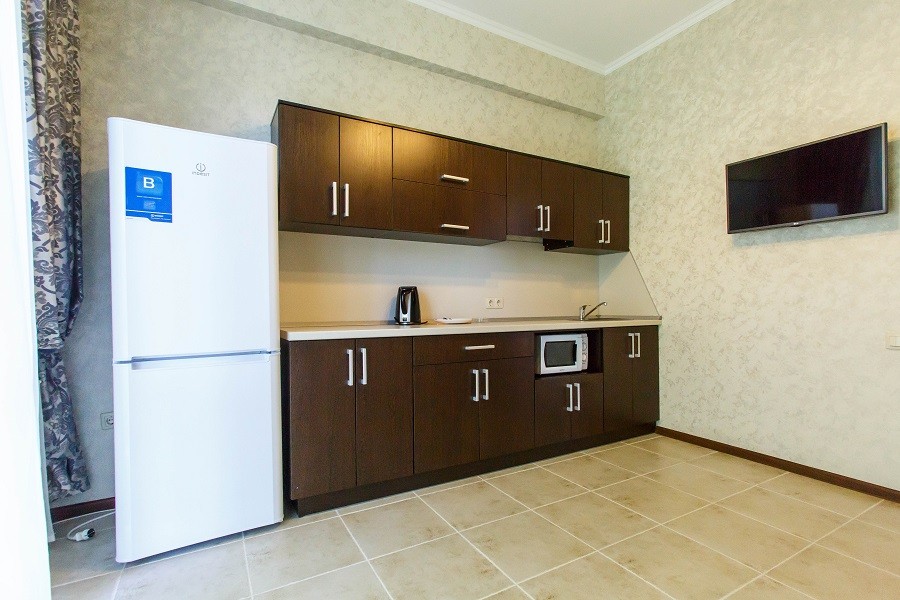 - Апартамент. Студия 1-ком. с кухней. Площадь: 36. Осн. мест: 2. Доп. мест: 1. Всего таких номеров: 2.