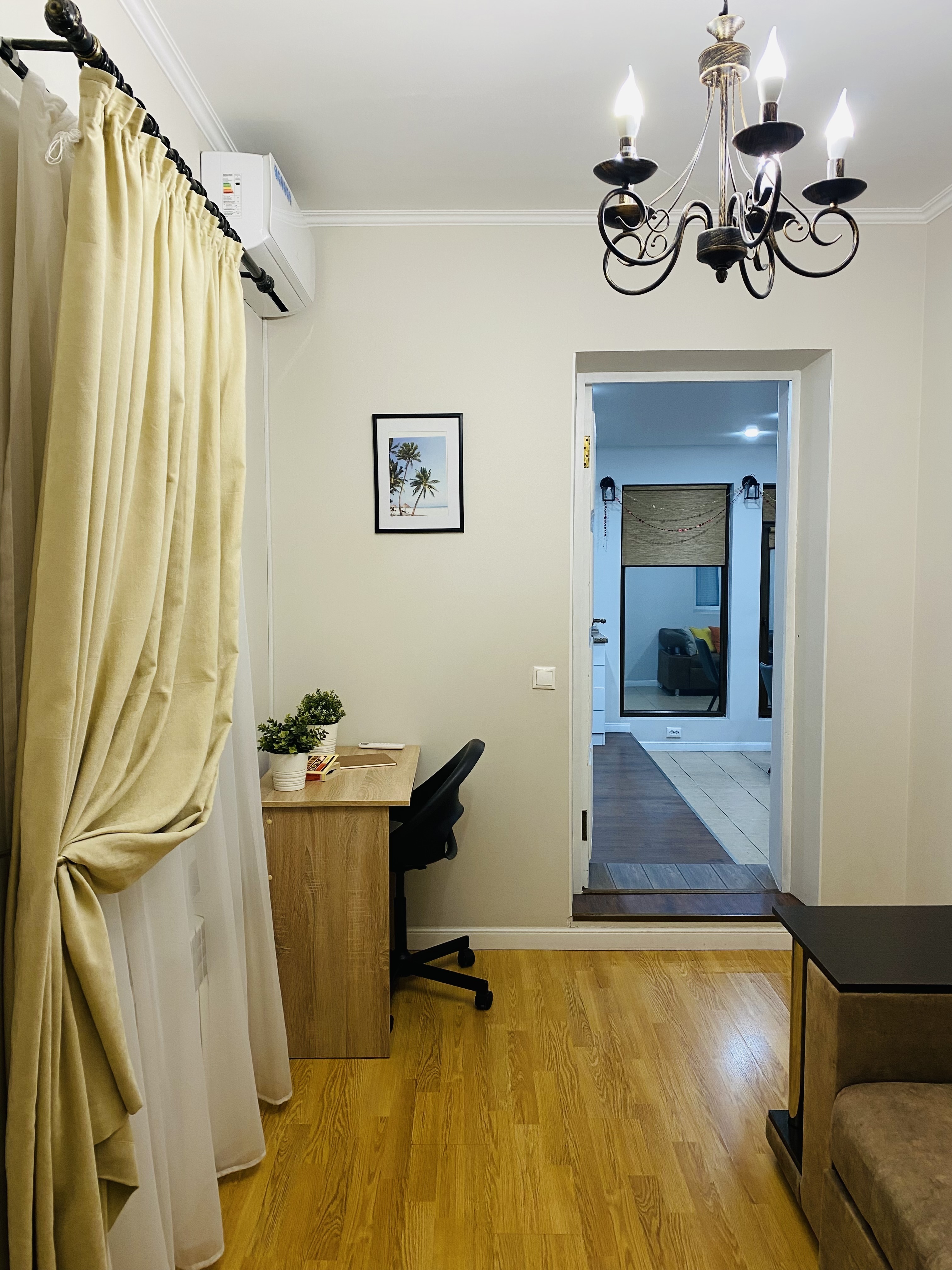 гладильная доска: ; кондиционер: ; микроволновая печь: ; набор посуды: ; плита электрическая: духовой шкаф; посудомоечная машина: ; стиральная машина: ; телевизор: ; телевизор ЖК: ; утюг: ; холодильник: ; электрочайник: ;