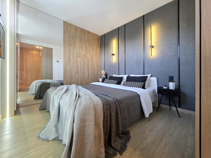 вешалка: ; диван раскладной: ; зеркало: ; комод: ; кровать двуспальная: ; стол: ; стулья: ; шкаф: ;