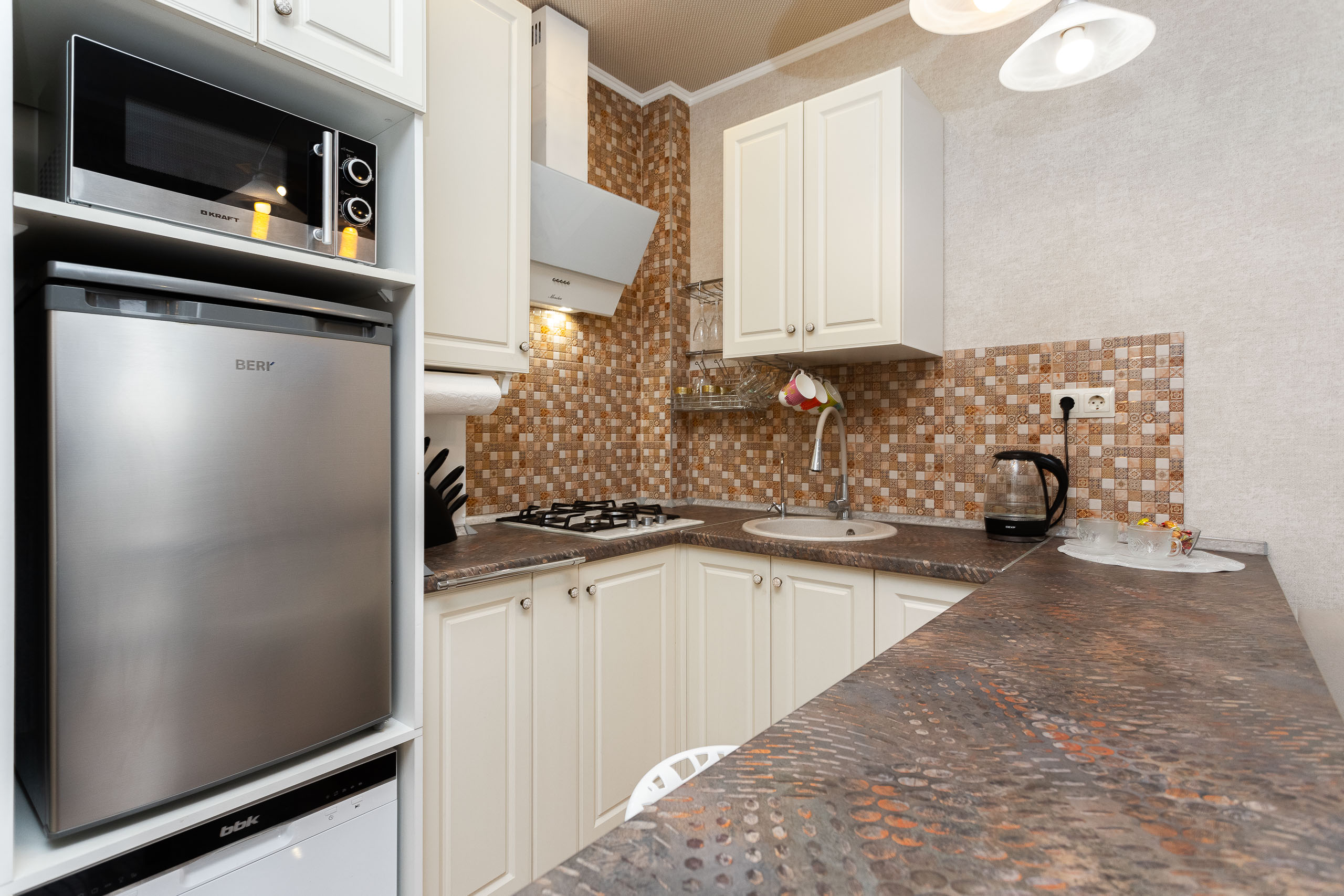 Однокомнатные апартаменты с кухней разместились в новом ЖК комфорт класса. Апартаменты оборудованы всем необходимым, в комнате – это большая кровать с ортопедическим матрасом, диван, плазменный телевизор. Кухня оснащена посудой и бытовой техникой: есть посудомоечная машина, микроволновая печь, электрочайник, плита. В ванной комнате установлена стиральная машина, подготовлены косметические наборы для гостей. Среди услуг – парковка на охраняемой территории жилого корпуса и высокоскоростной беспроводной интернет.
