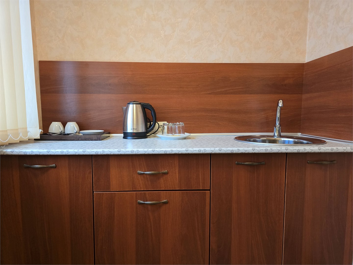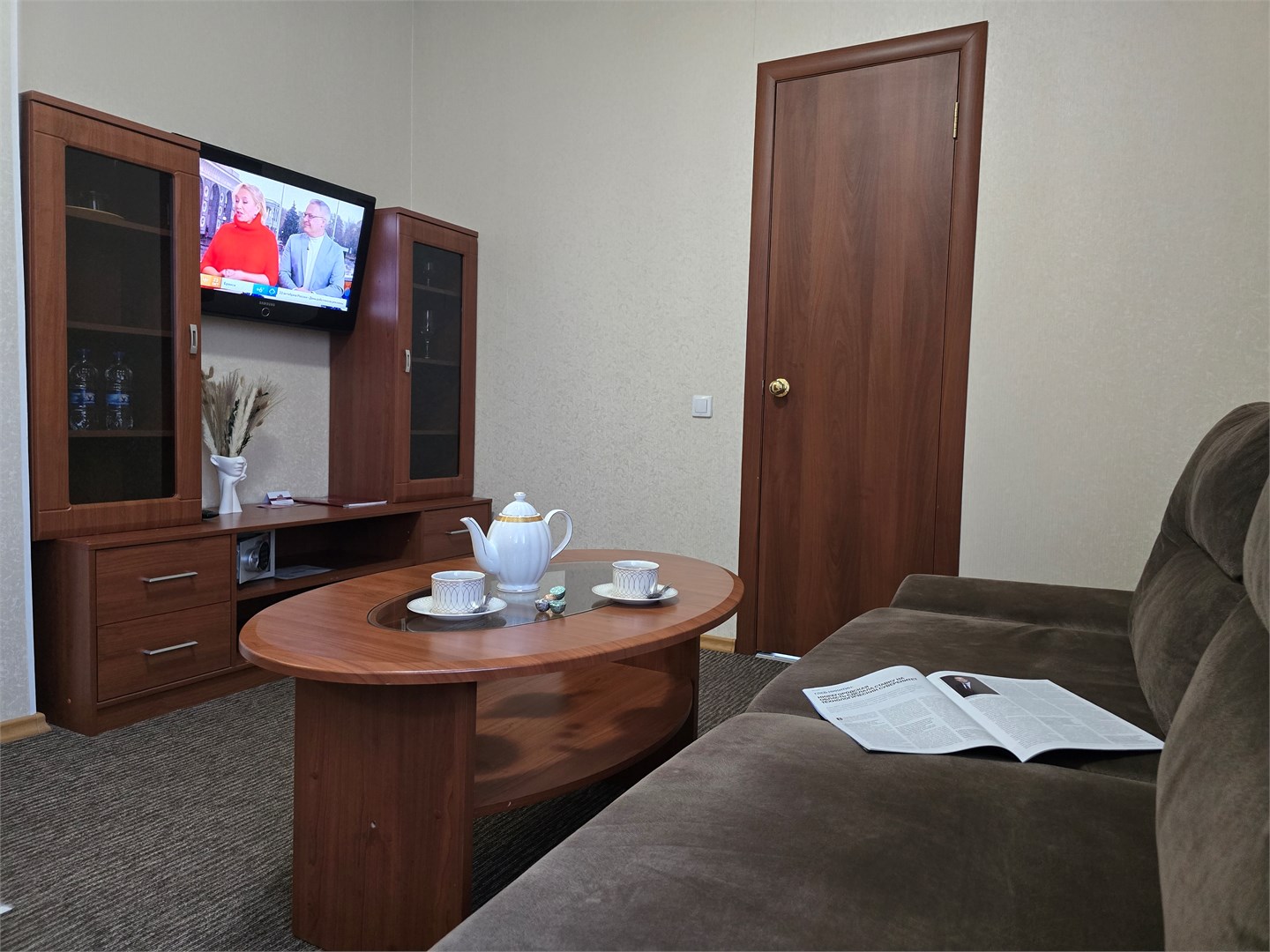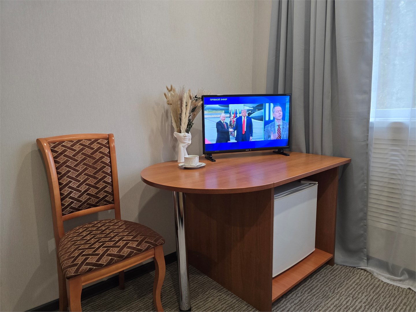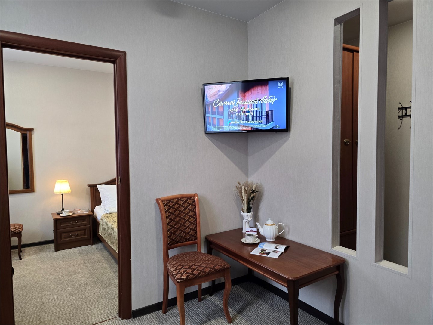 мини-холодильник: ; набор посуды: ; телевизор: ; чайный набор посуды: ; электрочайник: ;