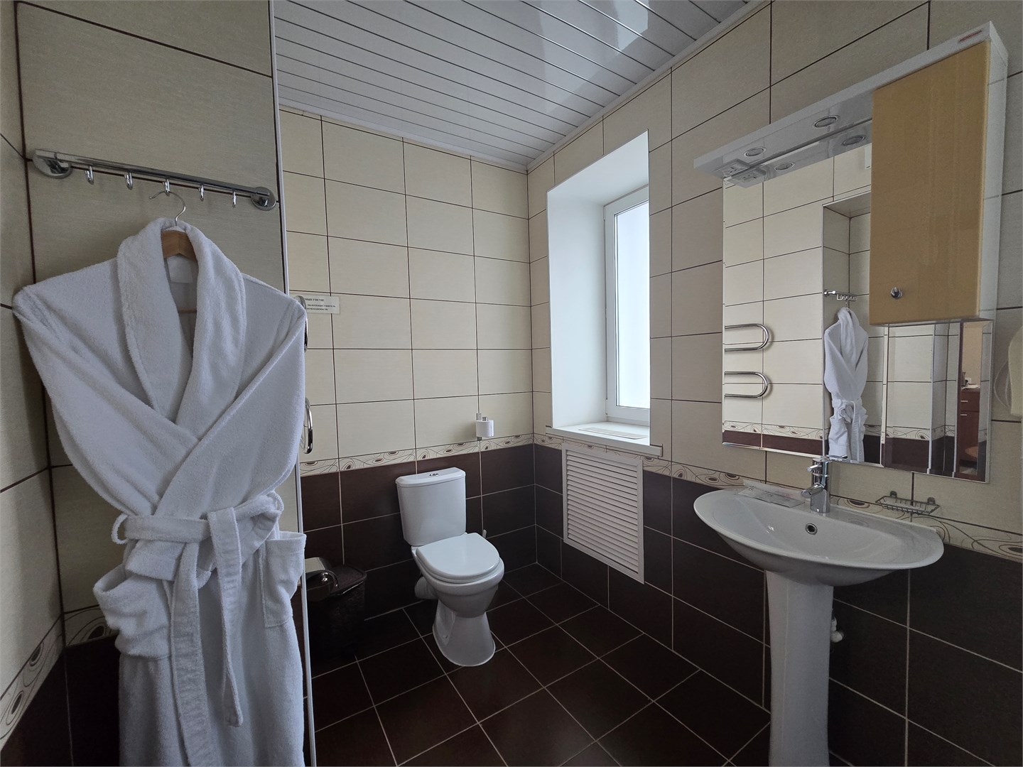 с ванной: ; тапочки: ; туалетные принадлежности: ; фен: ; халат: ;