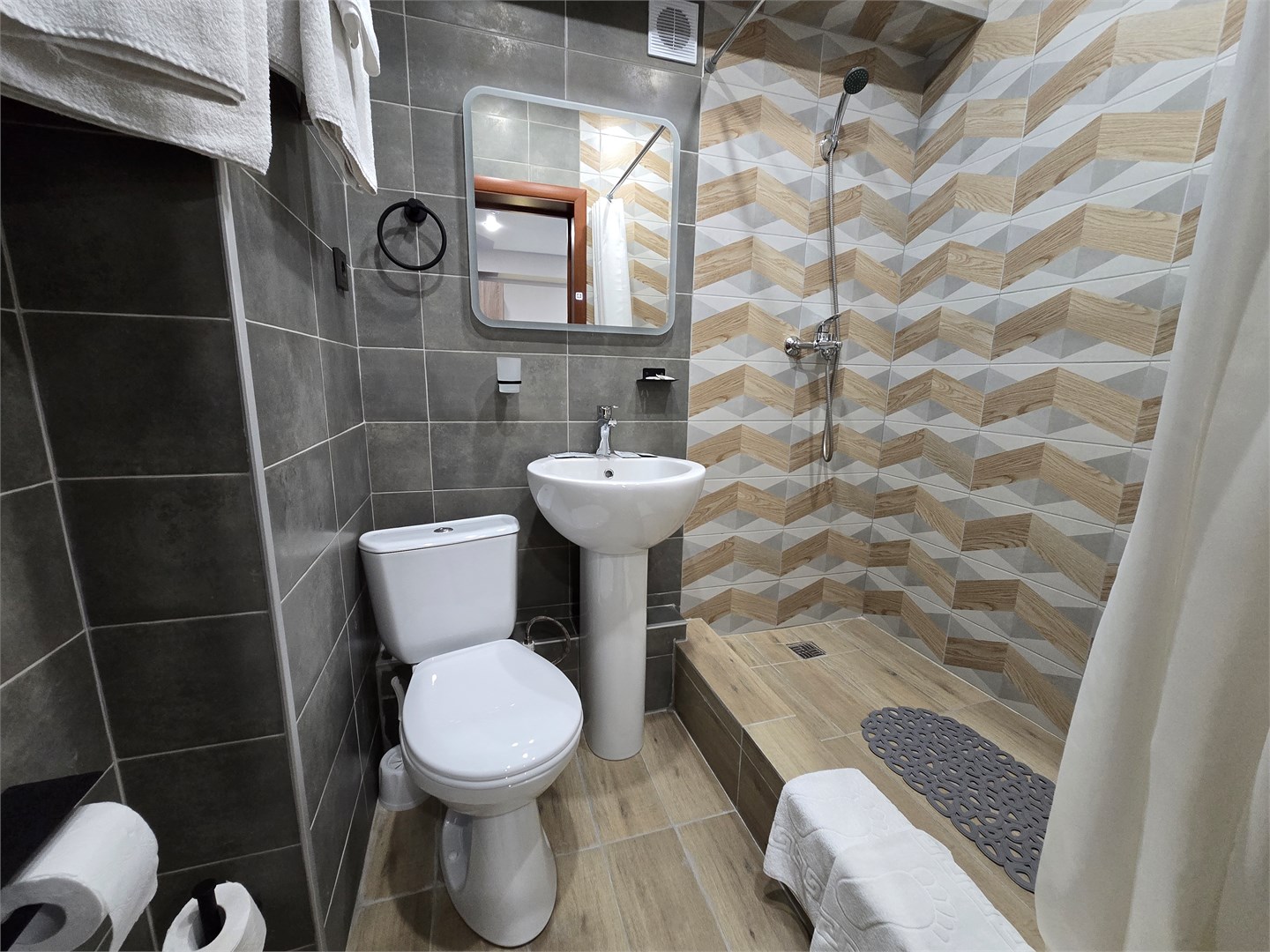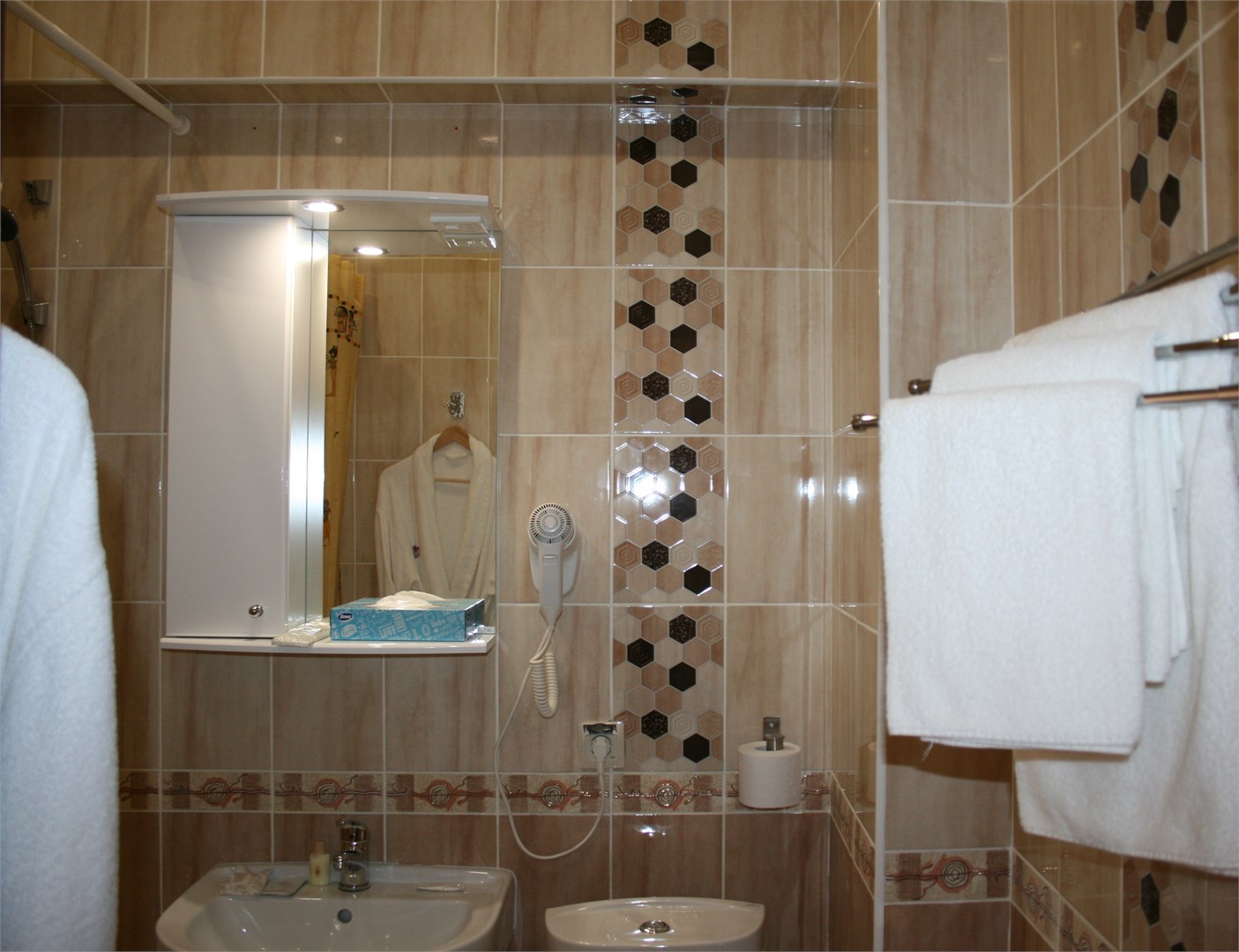 с душем: ; туалетные принадлежности: ; фен: ;