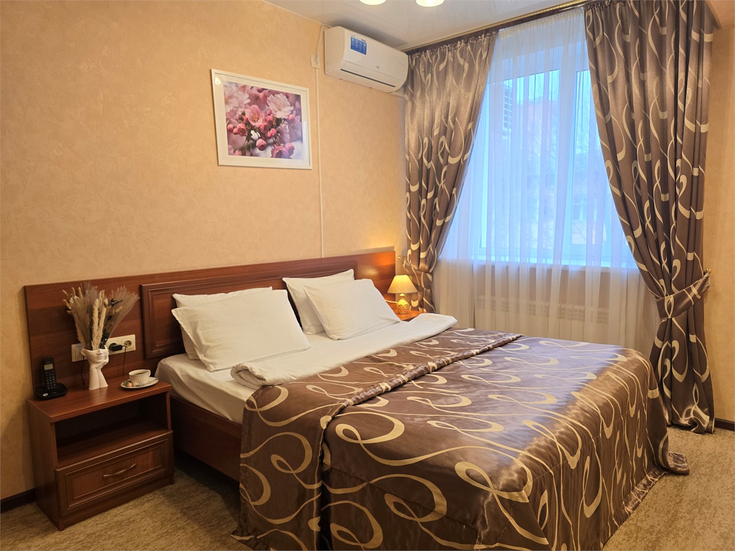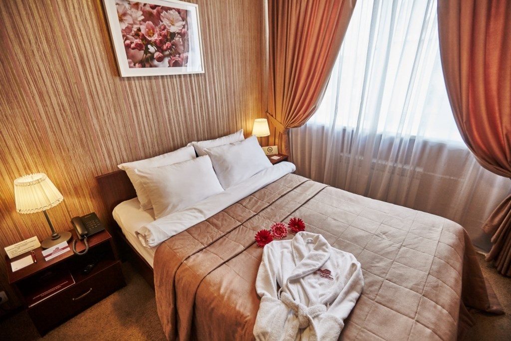 Номерной фонд разного уровня комфорта и вместимости расположился в 4-этажном здании. В комнатах установлена удобная мебель для отдыха, есть места для хранения одежды. К услугам гостей телевизор, кондиционер, Wi-Fi. Санузел индивидуальный, с душем, полотенцами, туалетными принадлежностями и феном. В некоторых номерах для самостоятельного приготовления еды есть кухонная зона, оборудованная холодильником, электрическим чайником и необходимым набором посуды. На территории гостиницы функционирует кафе, в котором подают блюда русской и европейской кухни. Доступен заказ еды и напитков в номер.