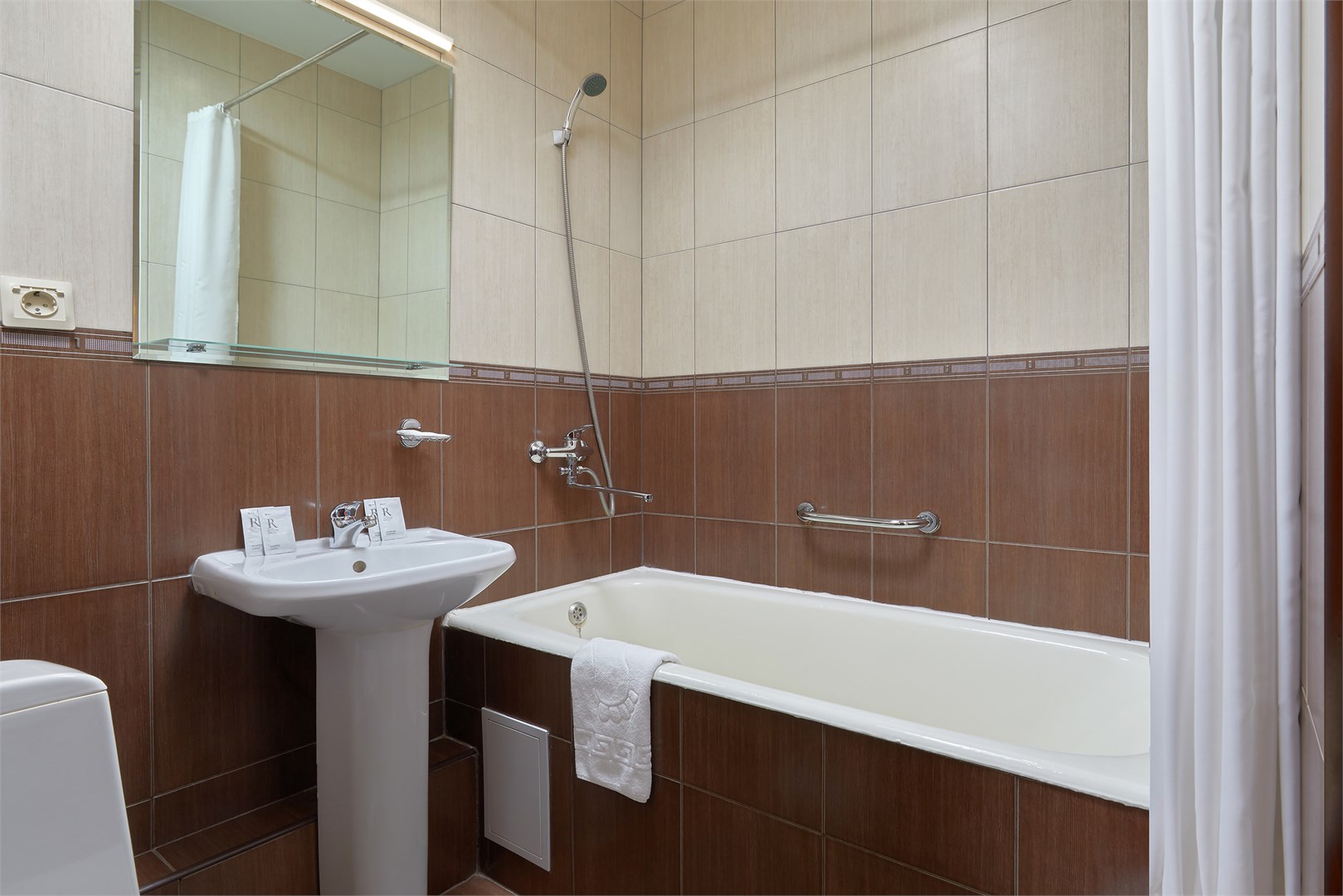 с ванной: ; туалетные принадлежности: ; фен: ;