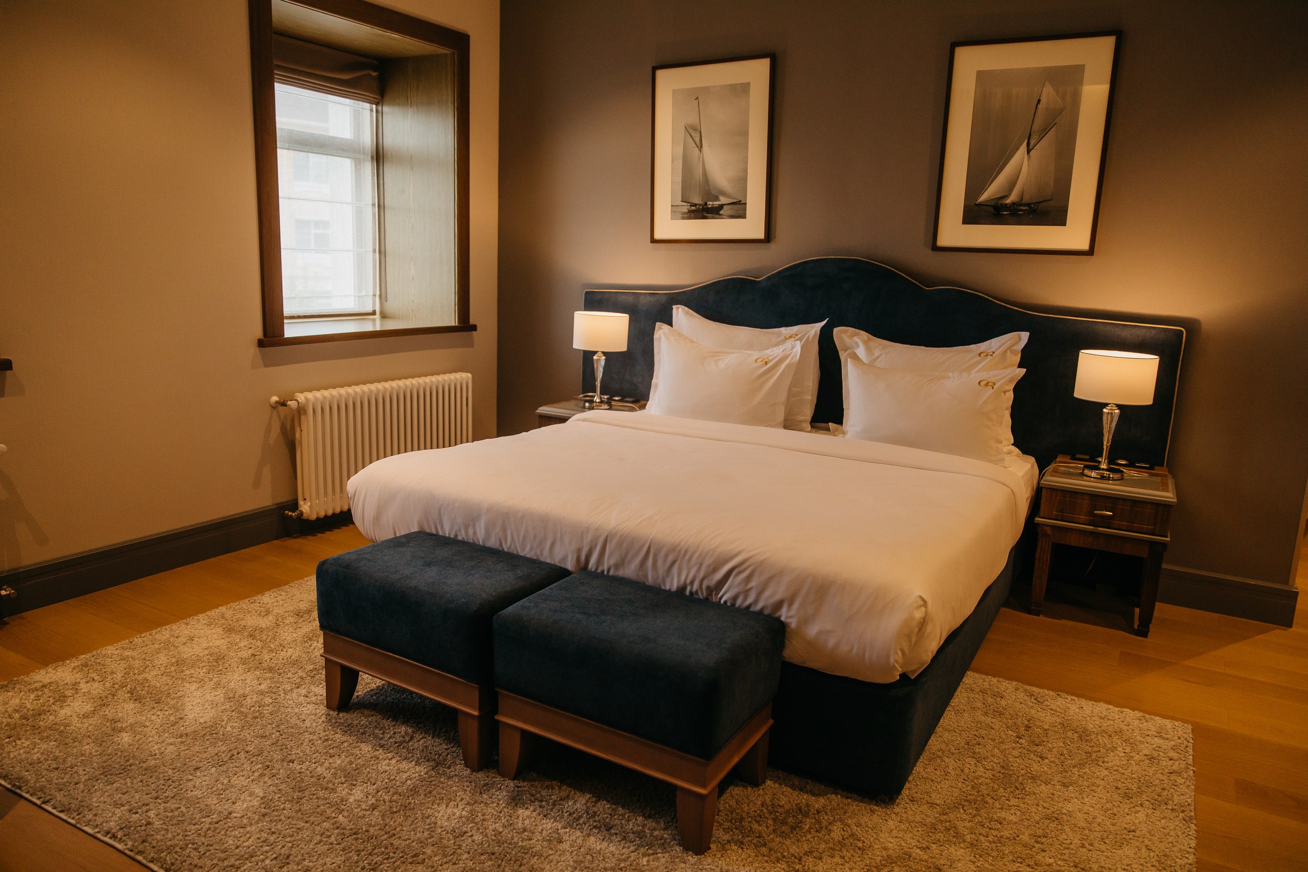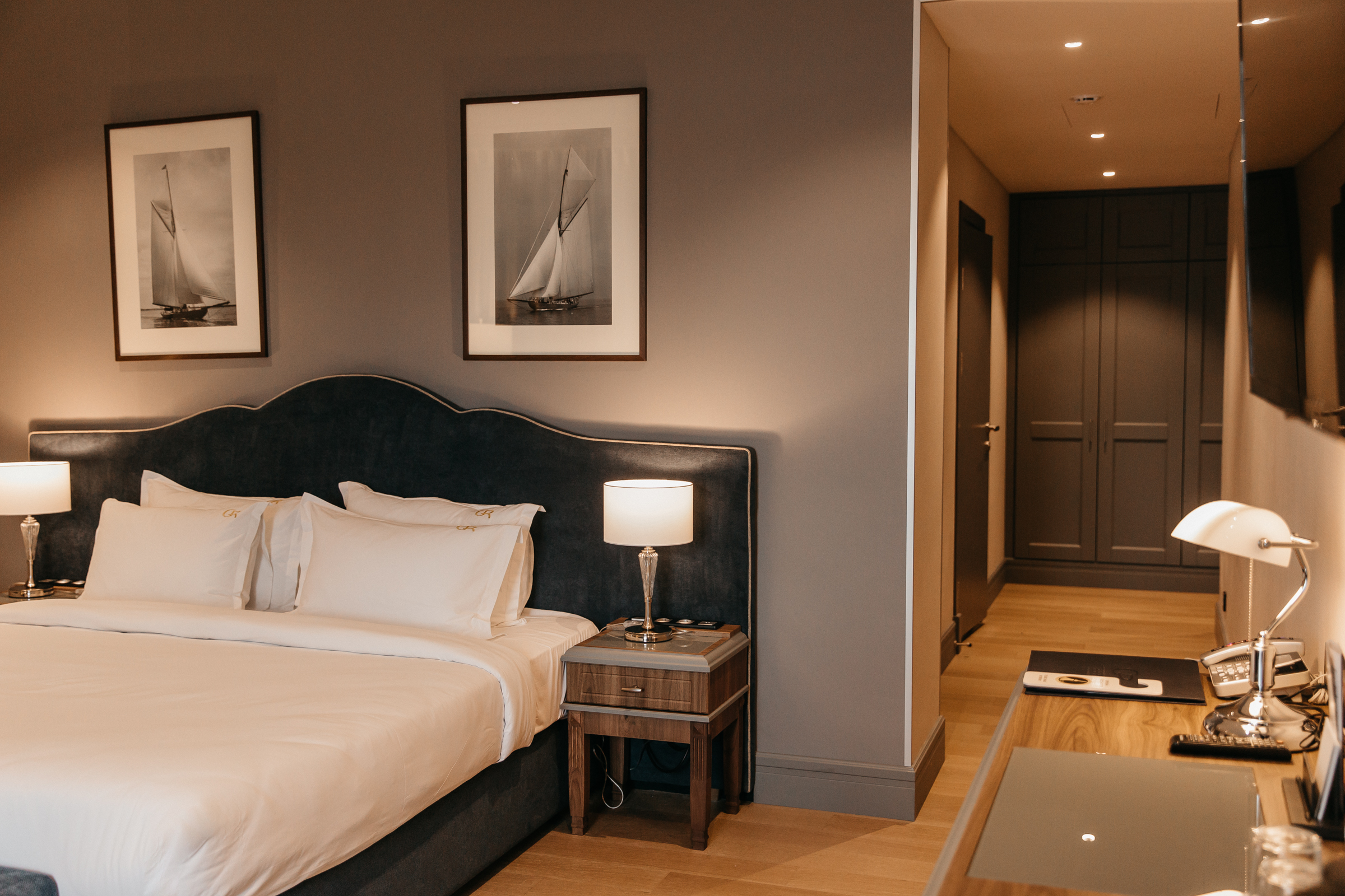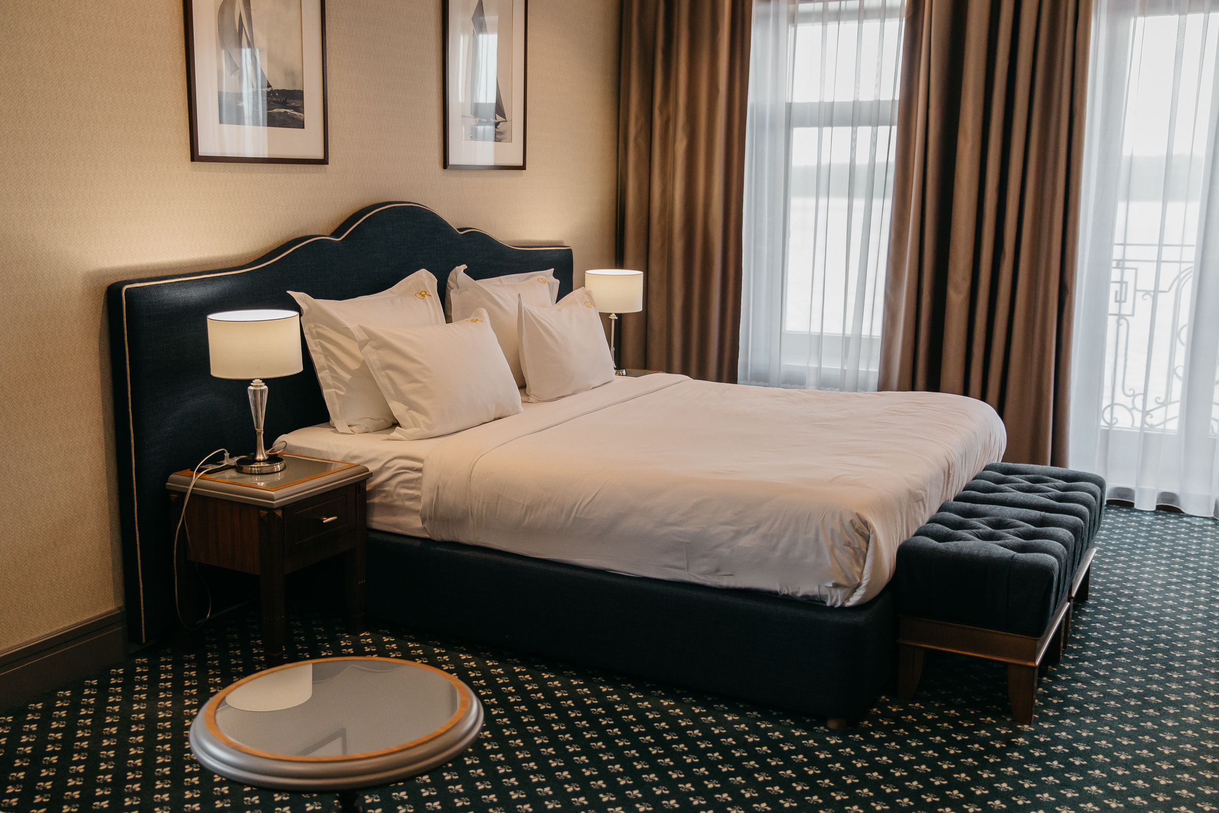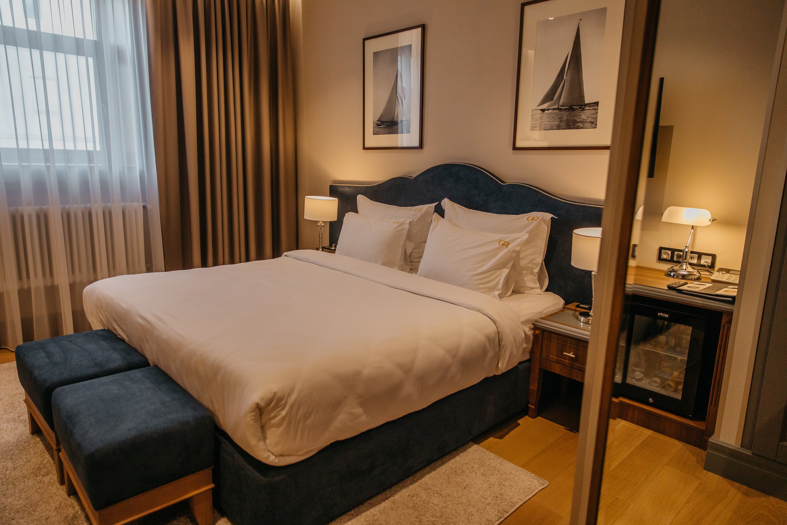 кровать двуспальная: ; прикроватные тумбочки: ; стол: ; стулья: ; шкаф: ;