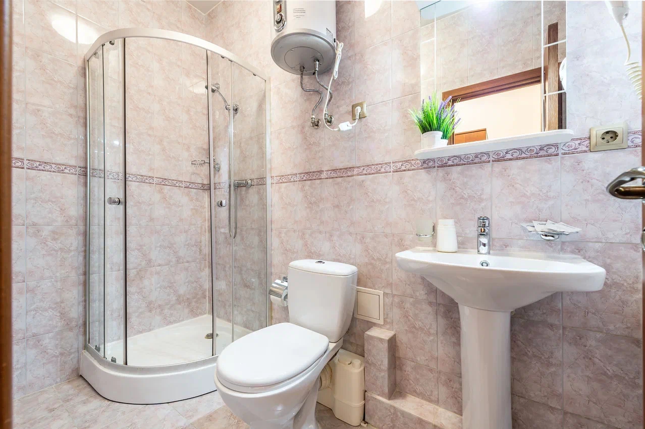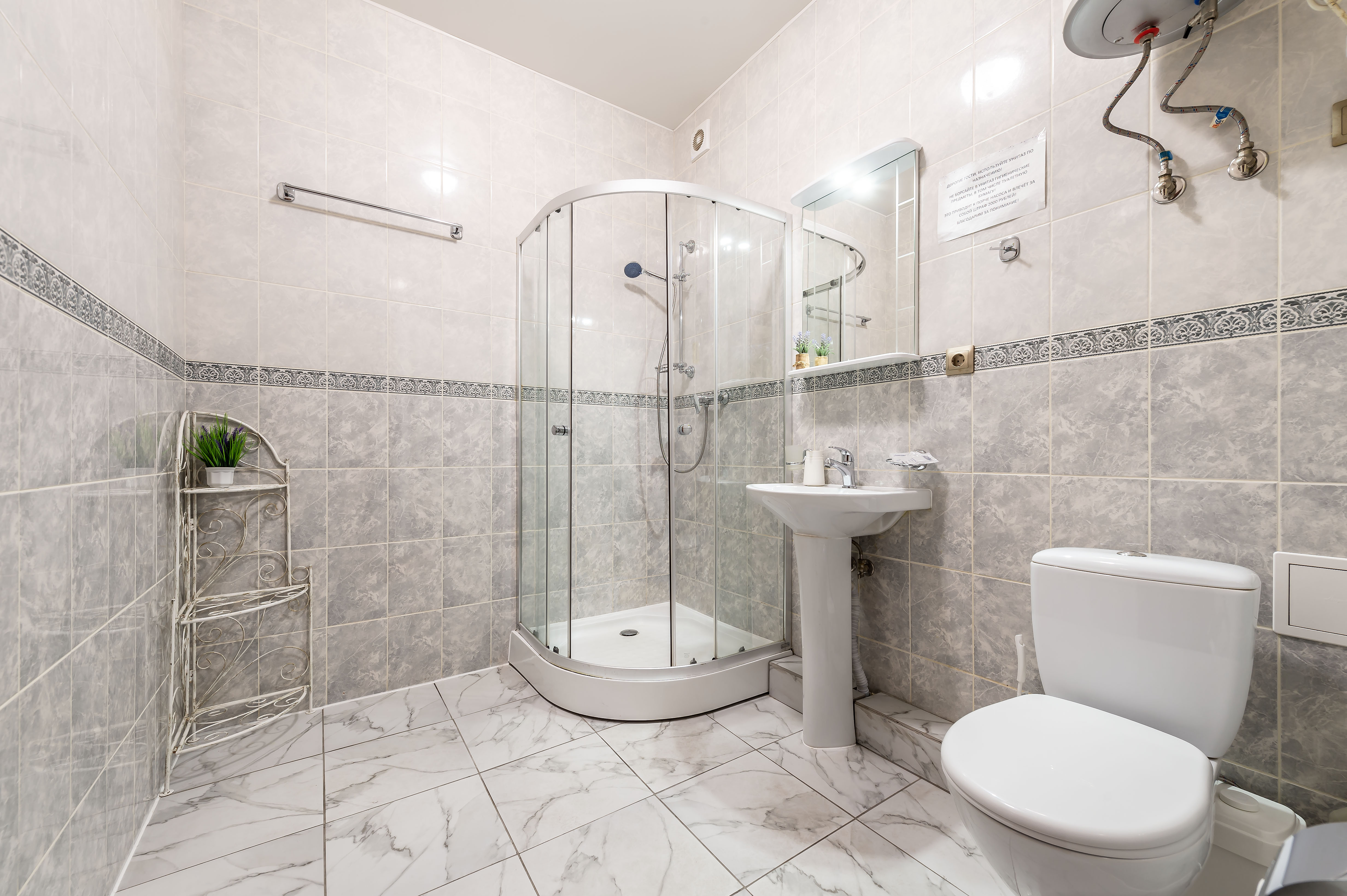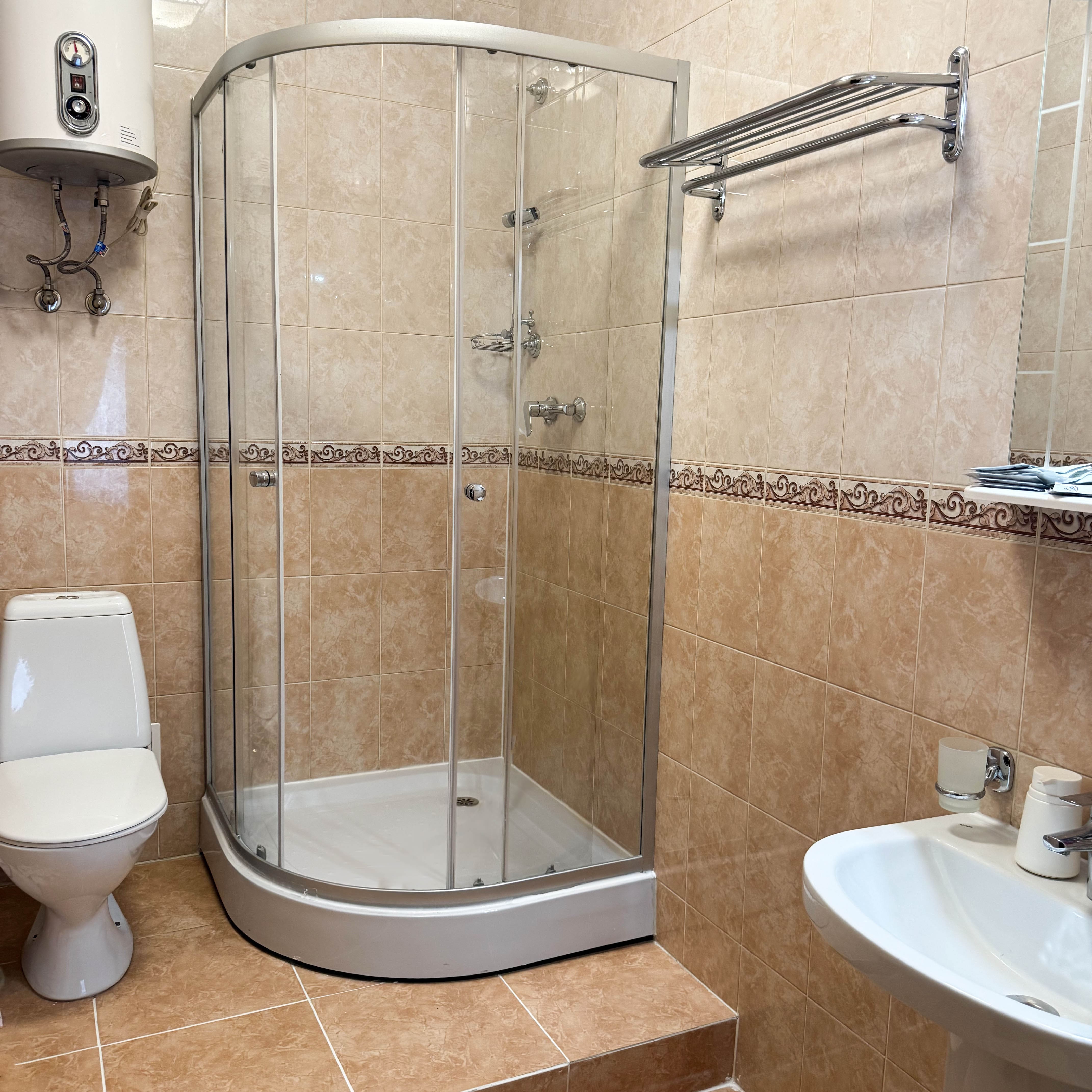 с душевой кабиной: ; тапочки: ; туалетные принадлежности: ; фен: ;