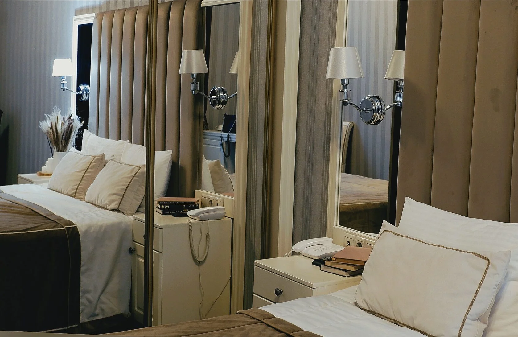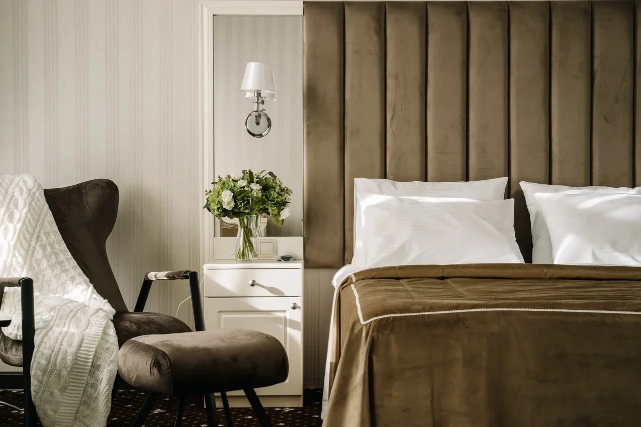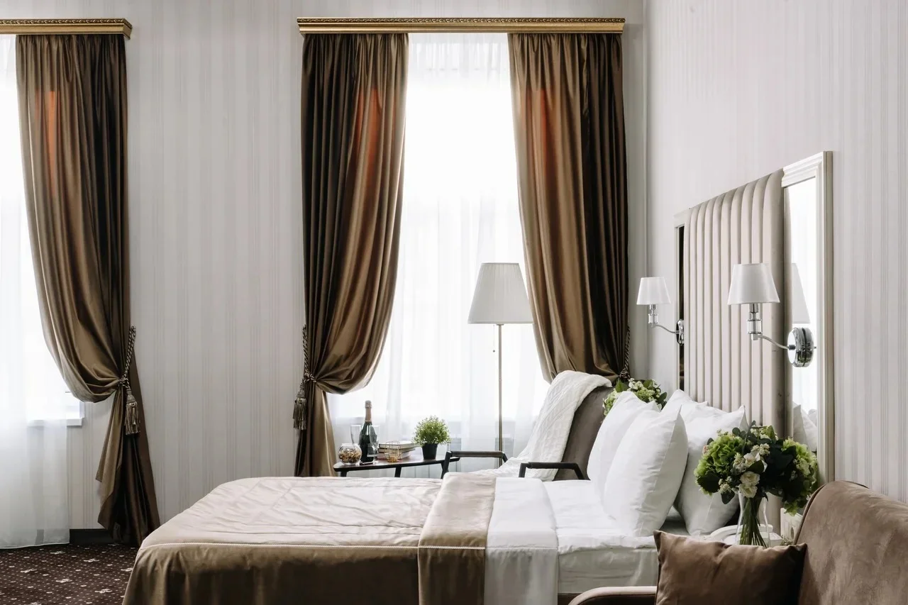 В отеле 22 однокомнатных номера различных категорий и площади. Классические интерьеры элегантно оформлены в приглушенных молочных и кофейных оттенках. Каждая комната укомплектована двуспальной кроватью размера king size, всей необходимой для комфортного размещения мебелью и техникой, собственными ванными комнатами с мягкими халатами, тапочками и косметическими наборами. Почти из всех номеров открывается вид на Тверскую улицу, и только в бюджетной категории окно отсутствует.