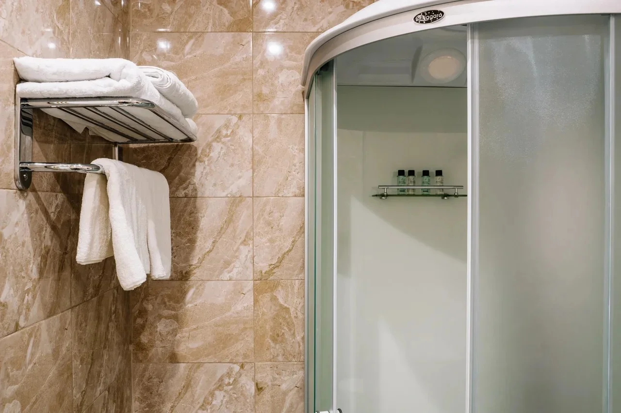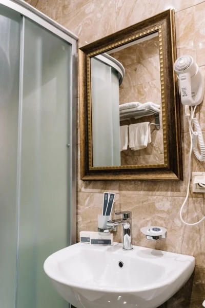 с душевой кабиной: ; тапочки: ; туалетные принадлежности: ; фен: ; халат: ;