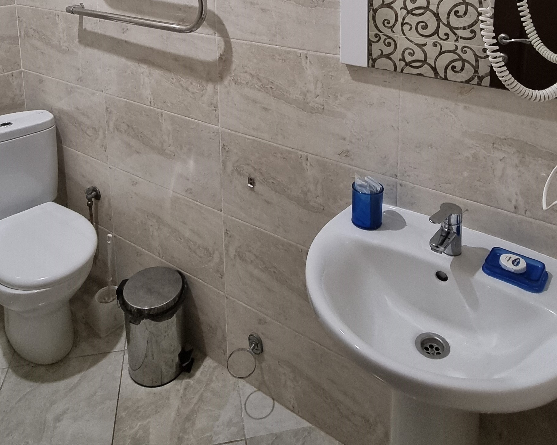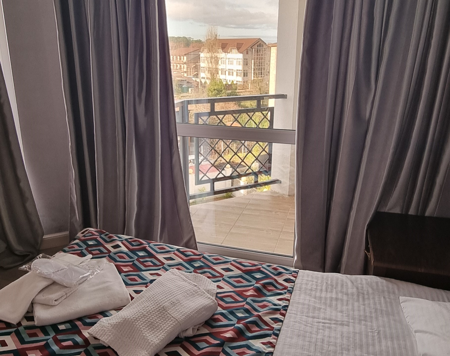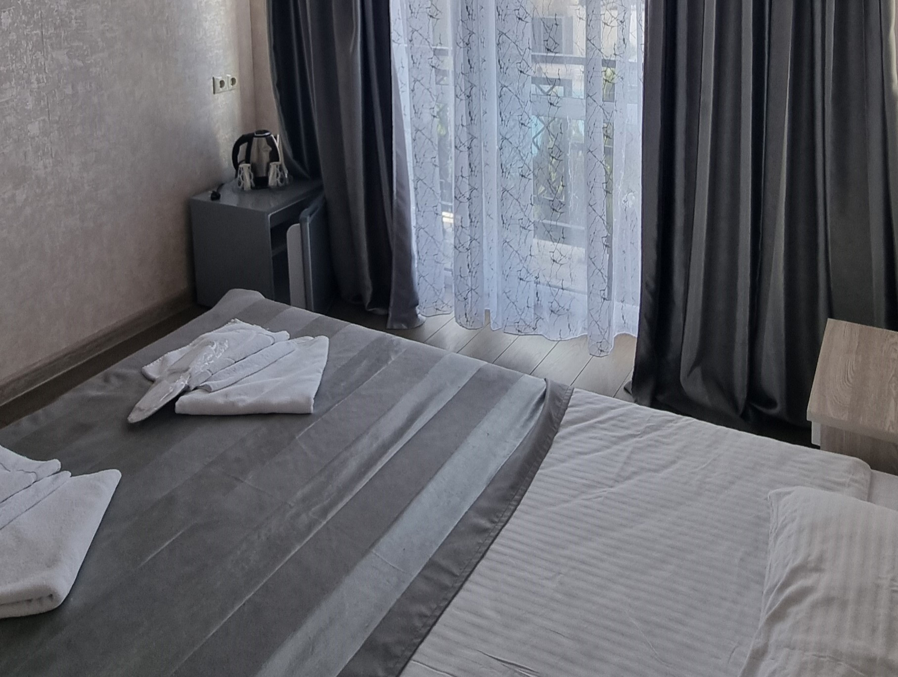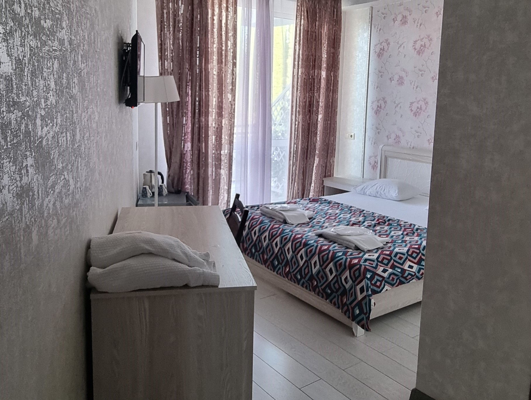 Городской мелко-галечный пляж находится в 800 метрах от гостиницы. На пляже работают раздевалки, отдыхающие могут взять напрокат шезлонги, лежаки и зонтики. Ж/д вокзал Гагра находится в 7 минутах ходьбы от отеля.