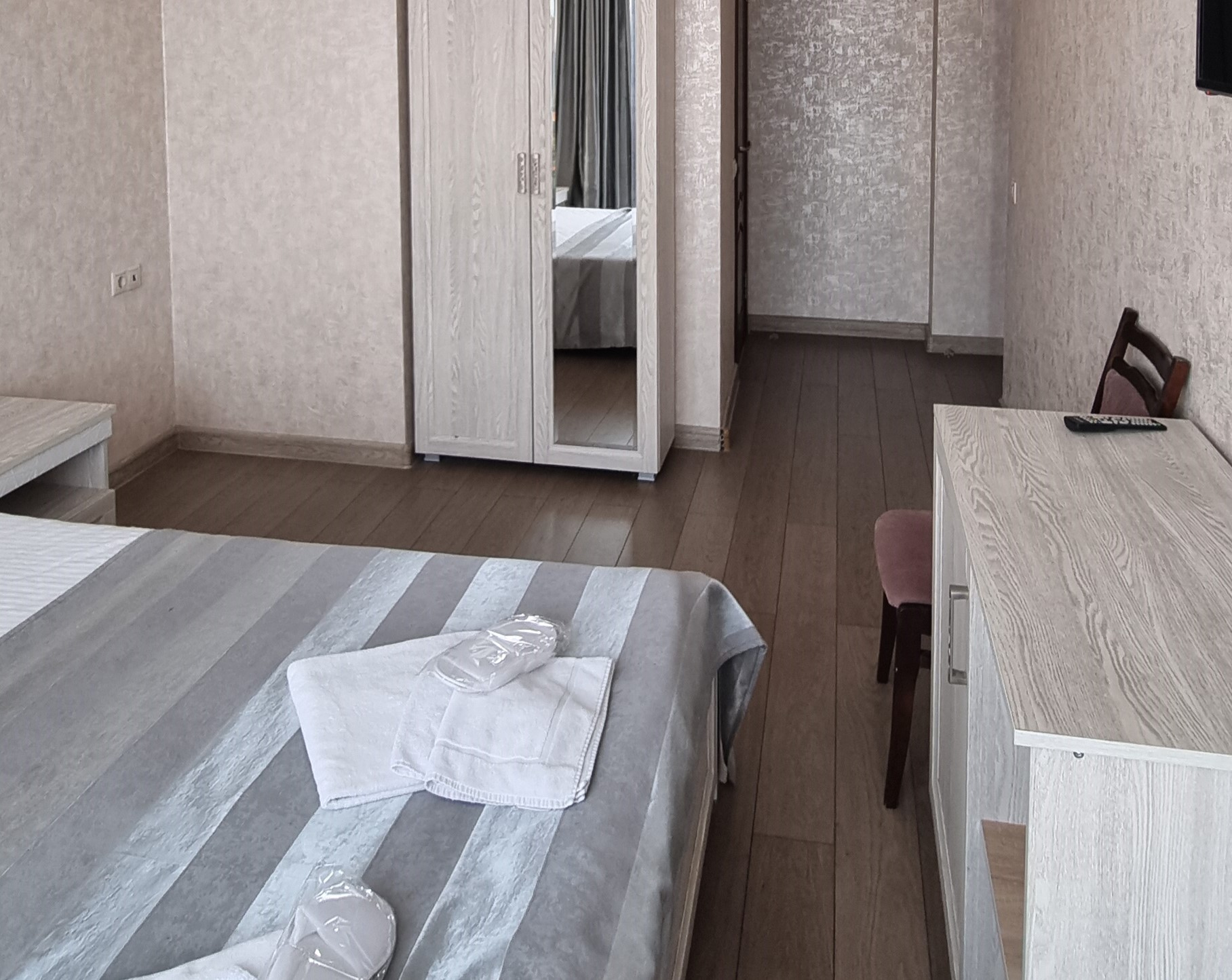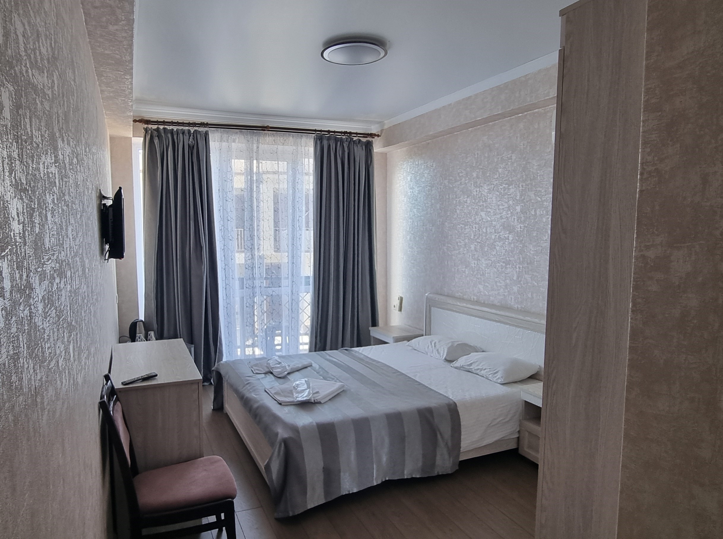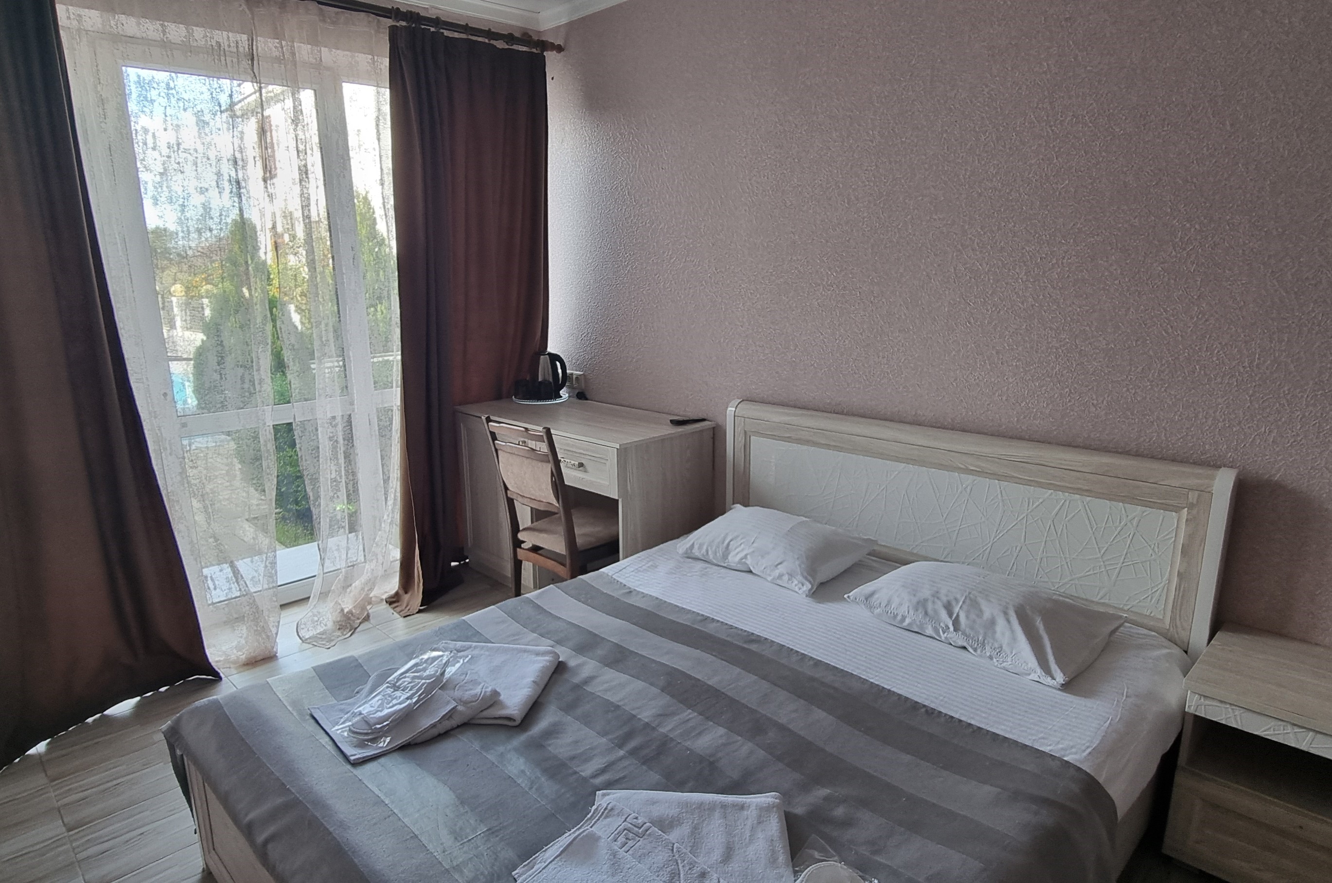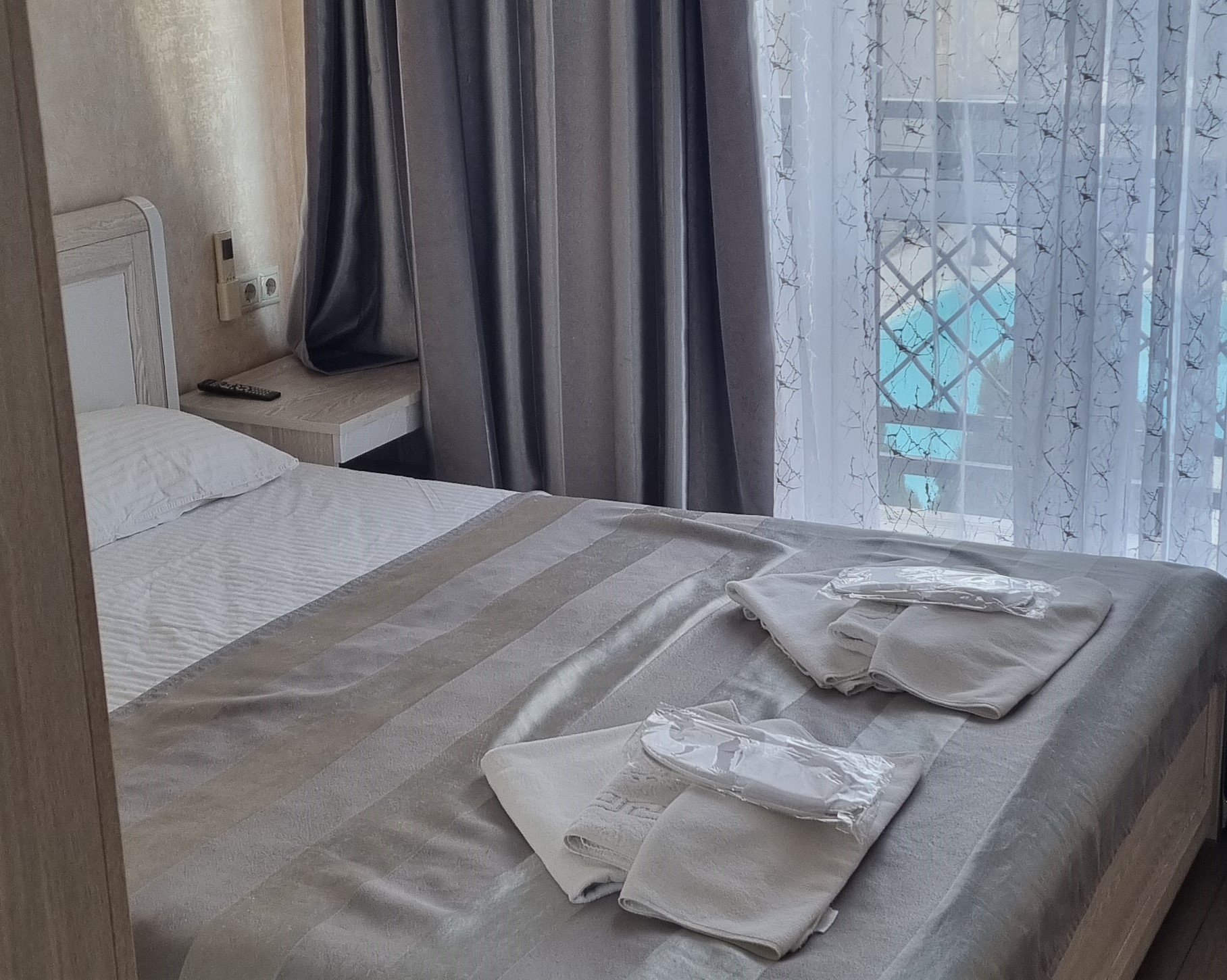Трехэтажный корпус отеля разместился на пересечении улиц Демерджипа и Космонавтов, рядом с бальнеологической лечебницей. Гостиница включает в себя 23 двухместных номера категории Стандарт, Полулюкс, Семейный, Делюкс и Люкс. Все номера оснащены кондиционером, санузлом с душем, оборудованы необходимой бытовой техникой. В некоторых комнатах предусмотрены балконы, а на первом этаже есть отдельный выход в сад.