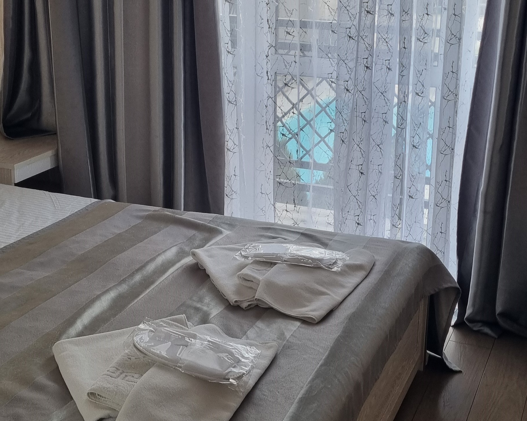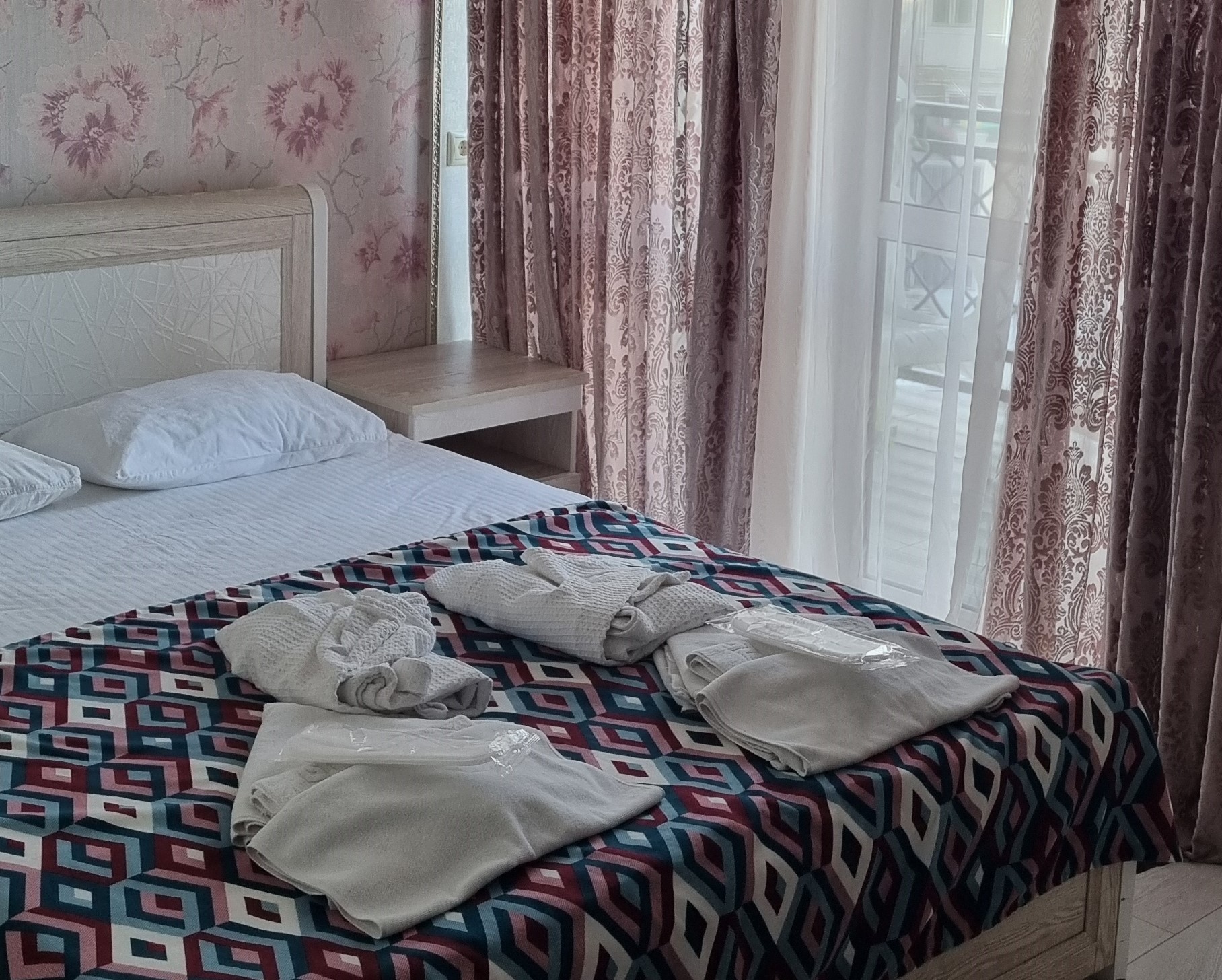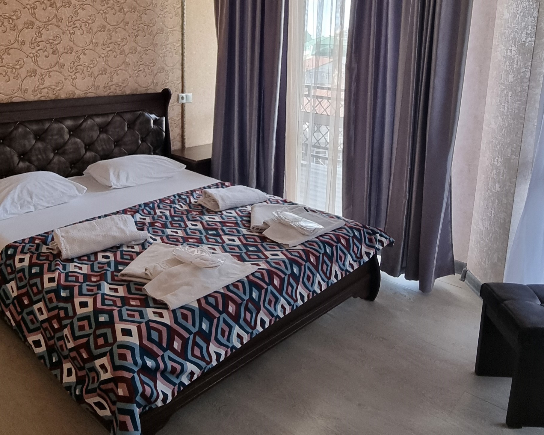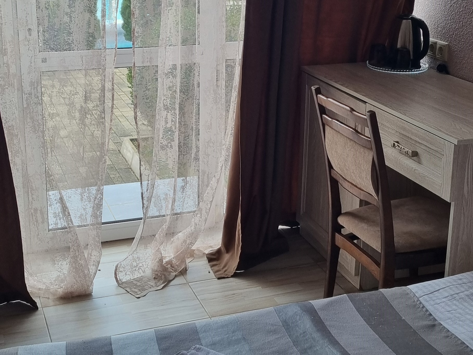 Трехэтажный корпус отеля разместился на пересечении улиц Демерджипа и Космонавтов, рядом с бальнеологической лечебницей. Гостиница включает в себя 23 двухместных номера категории Стандарт, Полулюкс, Семейный, Делюкс и Люкс. Все номера оснащены кондиционером, санузлом с душем, оборудованы необходимой бытовой техникой. В некоторых комнатах предусмотрены балконы, а на первом этаже есть отдельный выход в сад.