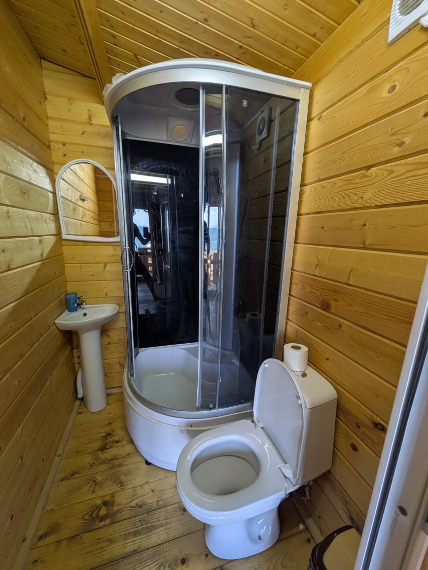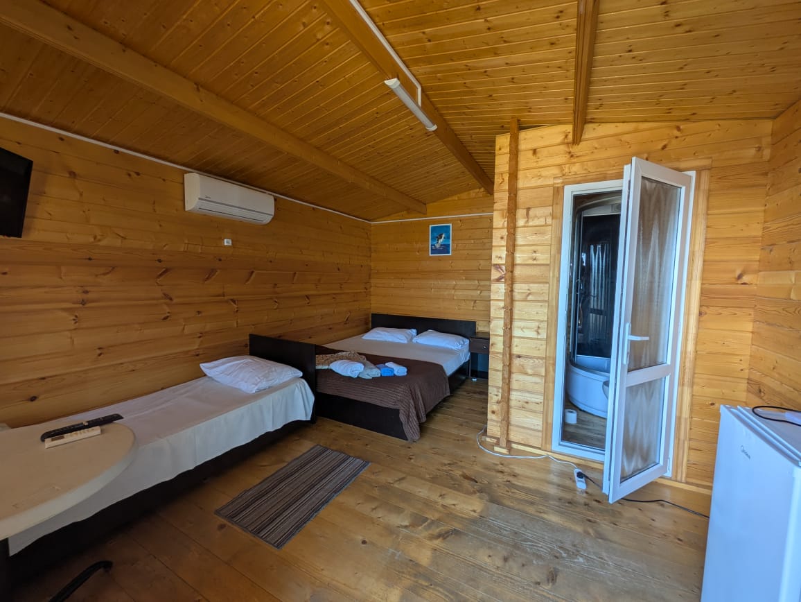 Гостям предлагаются номера, каждый из которых рассчитан на размещение 3 человек, с возможностью дополнительно установить еще одно спальное место. В каждом номере имеются: горячая и холодная вода, душ, умывальник, санитарный узел, система кондиционирования, мебель, а также пледы и полотенца для каждого постояльца. Также имеется домик с собственной кухней для организации питания.