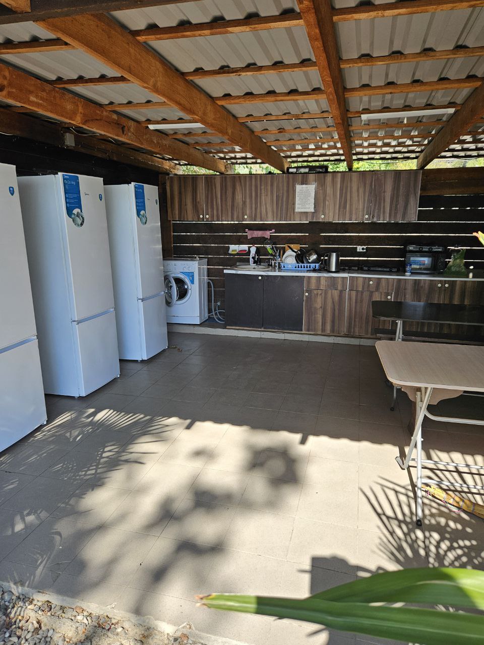 На территории комплекса есть общая кухня, а также мангальная зона, беседки. Гостям доступны спутниковое телевидение, стиральная машина, утюги и доступ к интернету на всей территории. Кроме того, комплекс предоставляет лежаки под навесом на пляже.