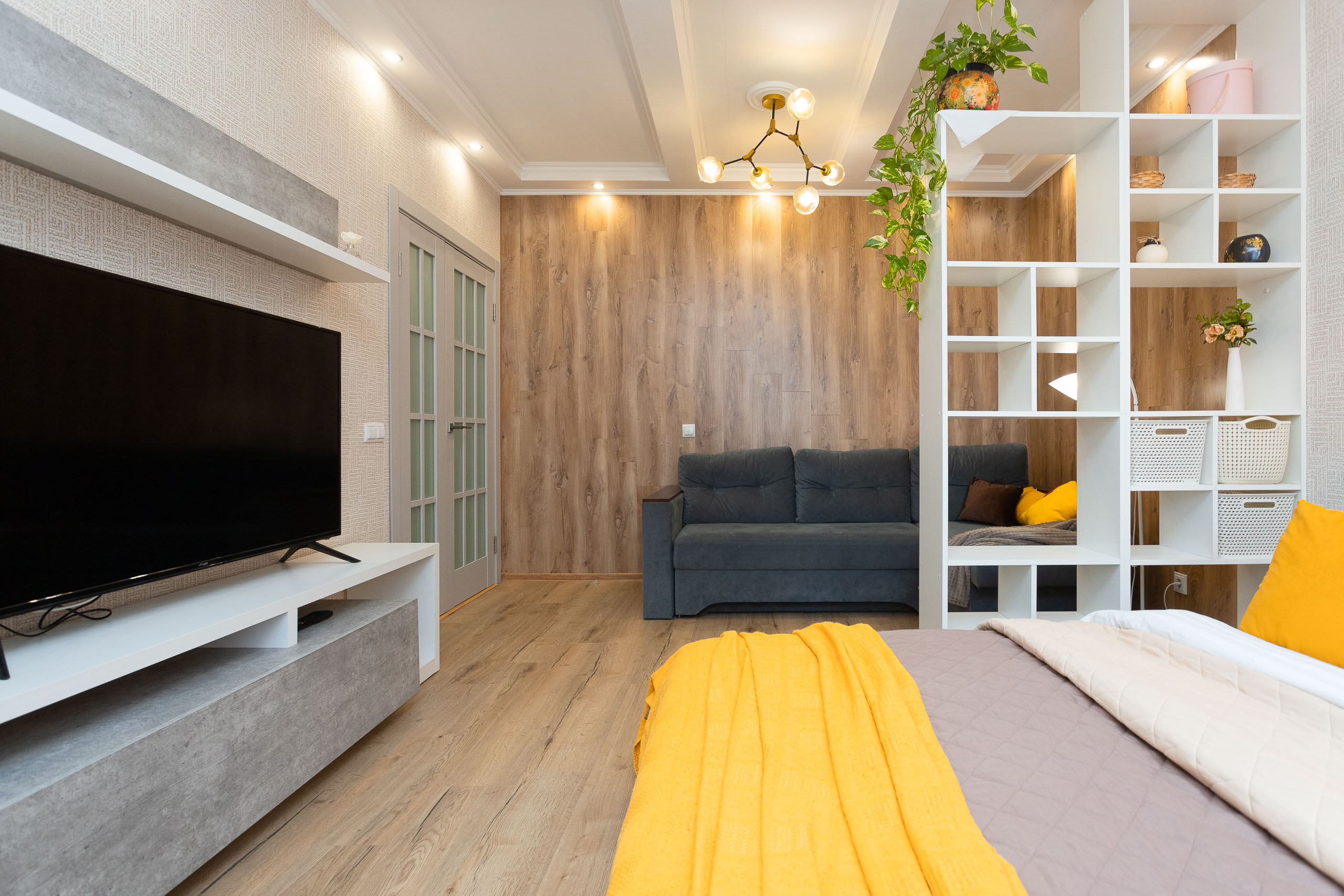 Апартаменты находятся в новом Жилом комплексе «Мой Центр». В распоряжении гостей стильные однокомнатные апартаменты с кухней, оснащенные всей необходимой техникой, в том числе есть стиральная машина. В комнате – удобная двуспальная кровать, гостиный уголок с диваном, плазменный телевизор. В числе удобств – крытая парковка и беспроводной интернет, позволяющий всегда оставаться на связи.