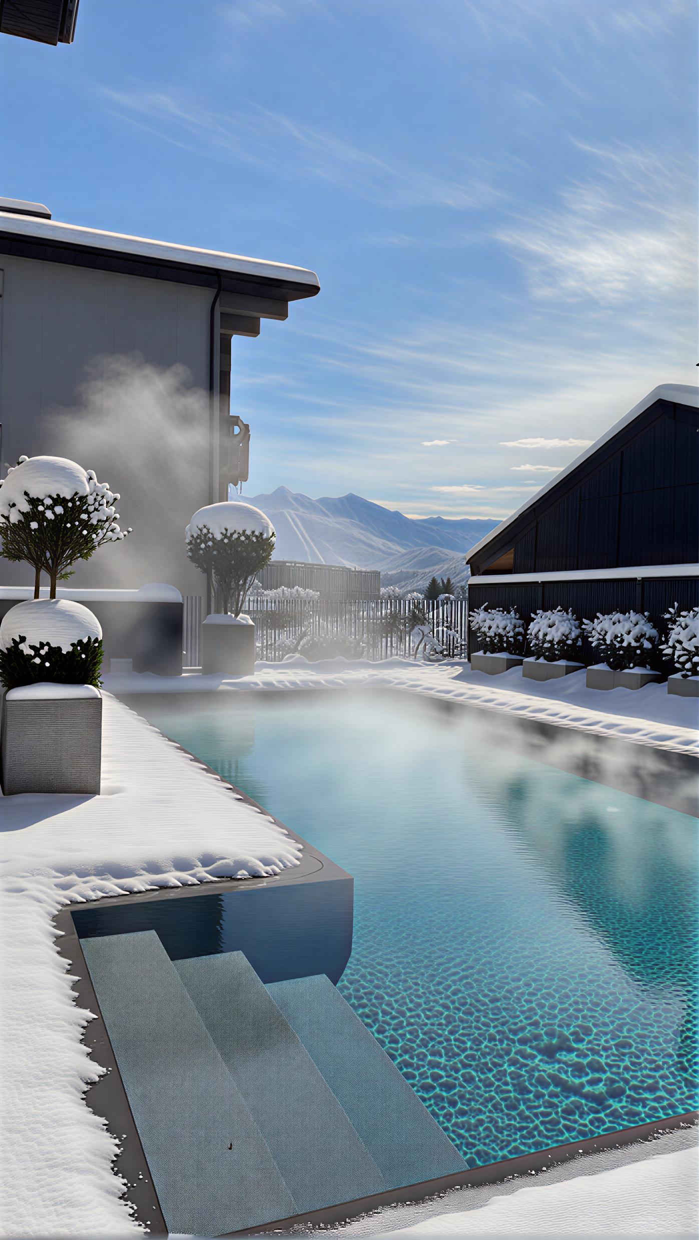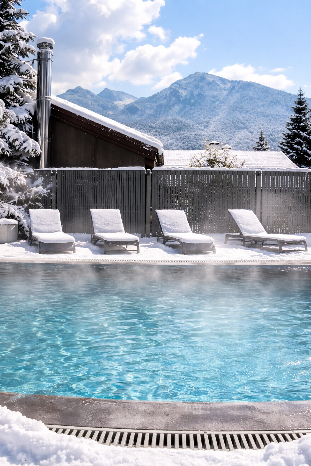 Плавание с видом на вершины, шезлонги, мягкое тепло воды – всё это уже включено в стоимость проживания.
