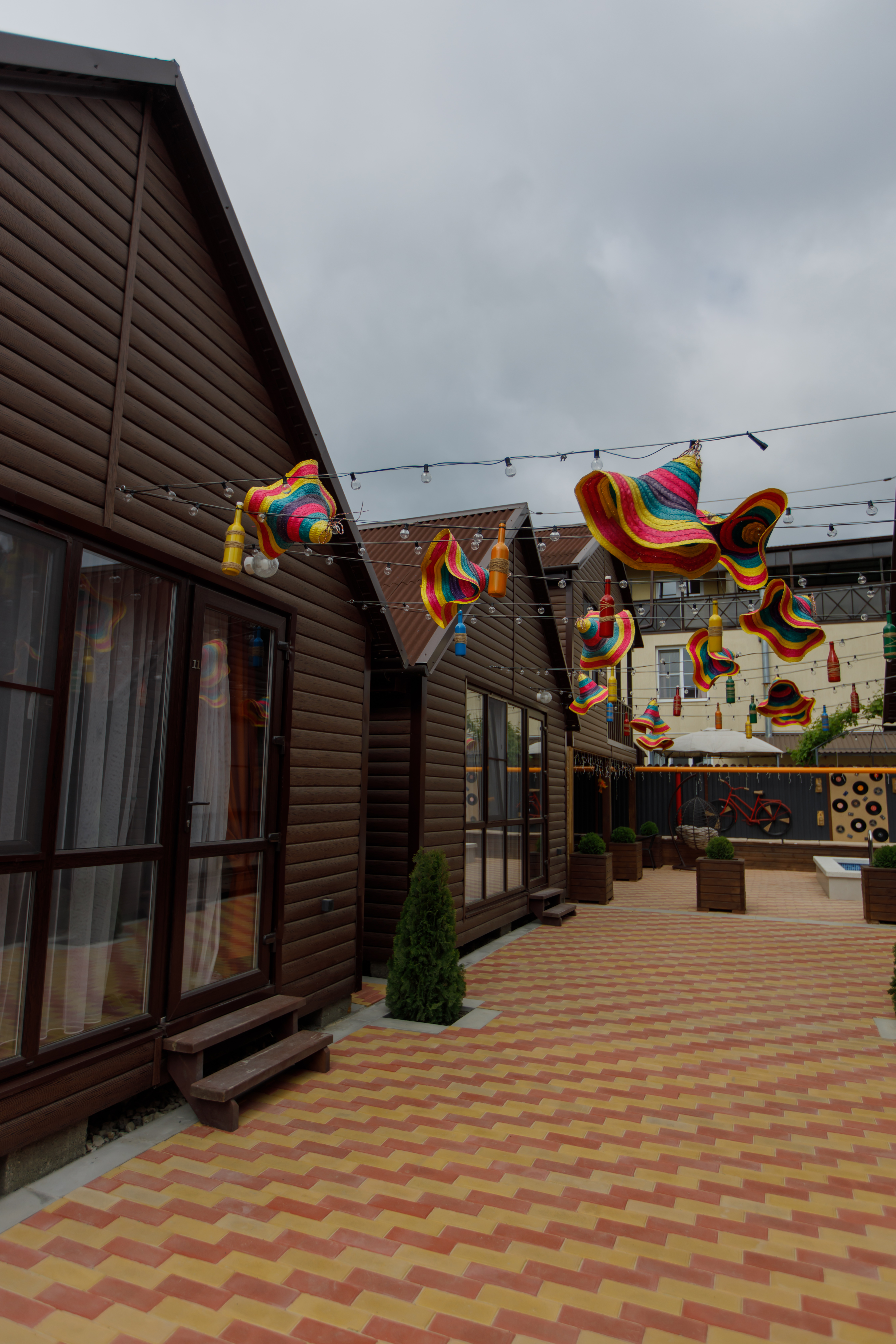 К заселению гостям предлагаются деревянные домики разной вместимости. Все они оснащены современной мягкой мебелью и местами для хранения одежды. Работает высокоскоростной интернет. Также к услугам гостей кондиционер, высокоскоростной интернет, стиральная машина, телевизор. Санузел с душем, туалетными принадлежностями и мягкими полотенцами. Для самостоятельного приготовления еды есть кухня, оборудованная необходимой бытовой техникой и набором посуды. На свежем воздухе предусмотрены мангальные зоны, столы и столики для отдыха.