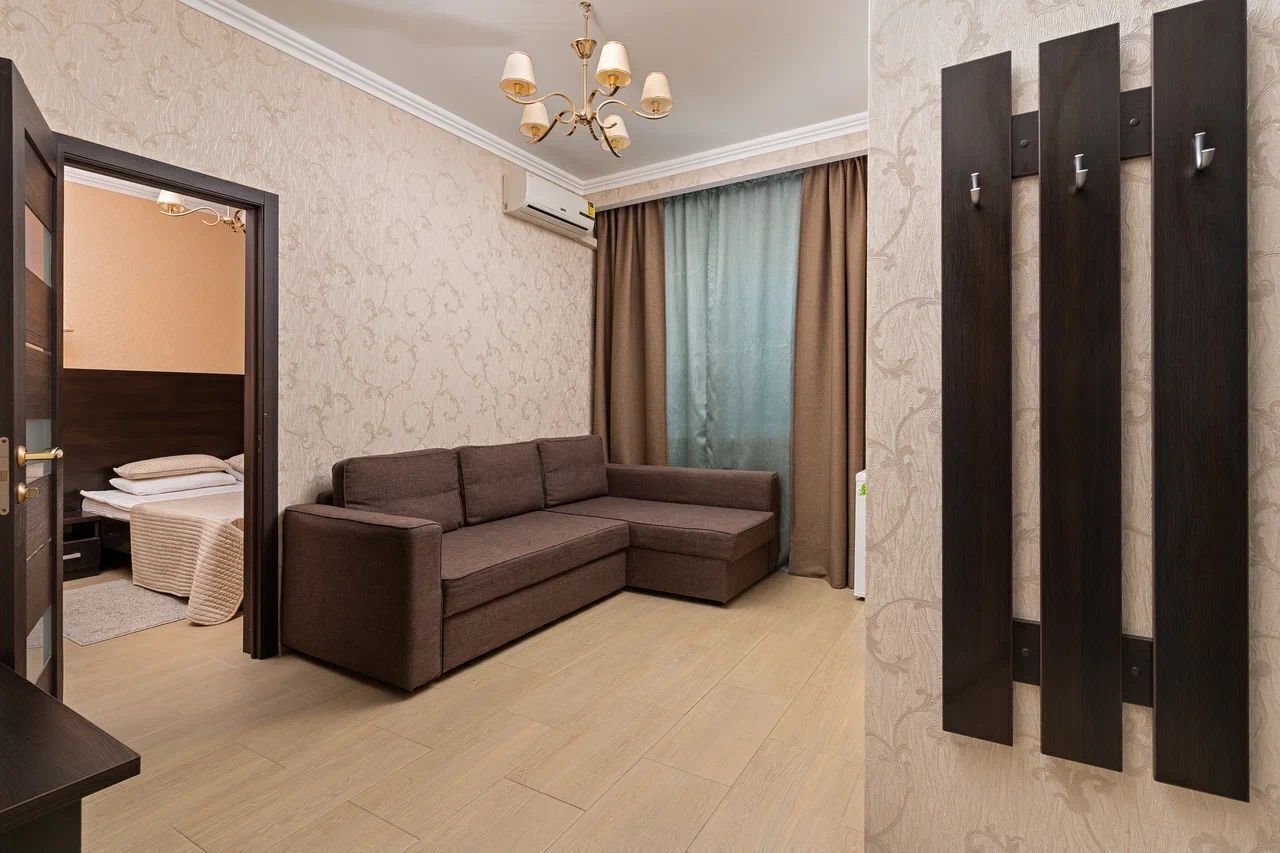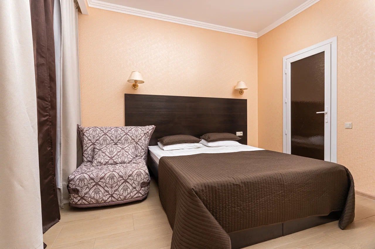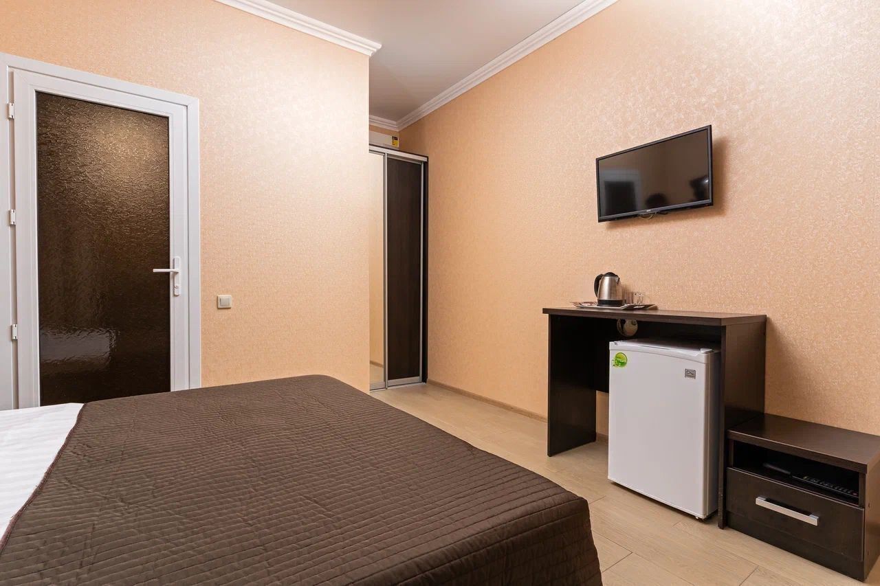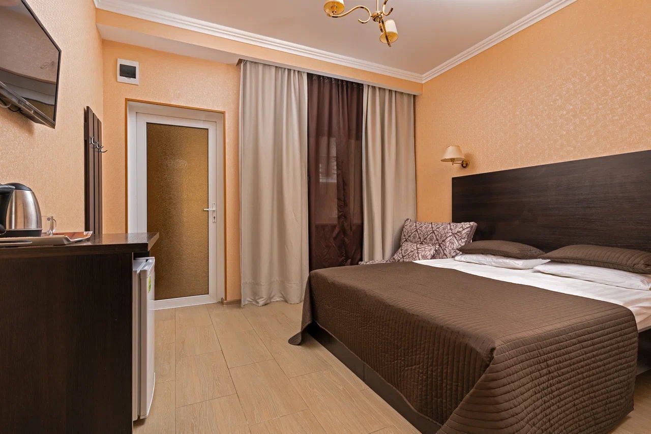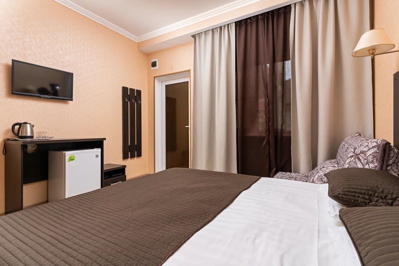 Здание отеля занимает благоустроенную закрытую территории с внутренним двором. В распоряжении гостей однокомнатные и двухкомнатные номера с удобствами. В каждом номере предусмотрен санузел с душем, есть кондиционер, электрочайник, набор чайной посуды, телевизор-ЖК.