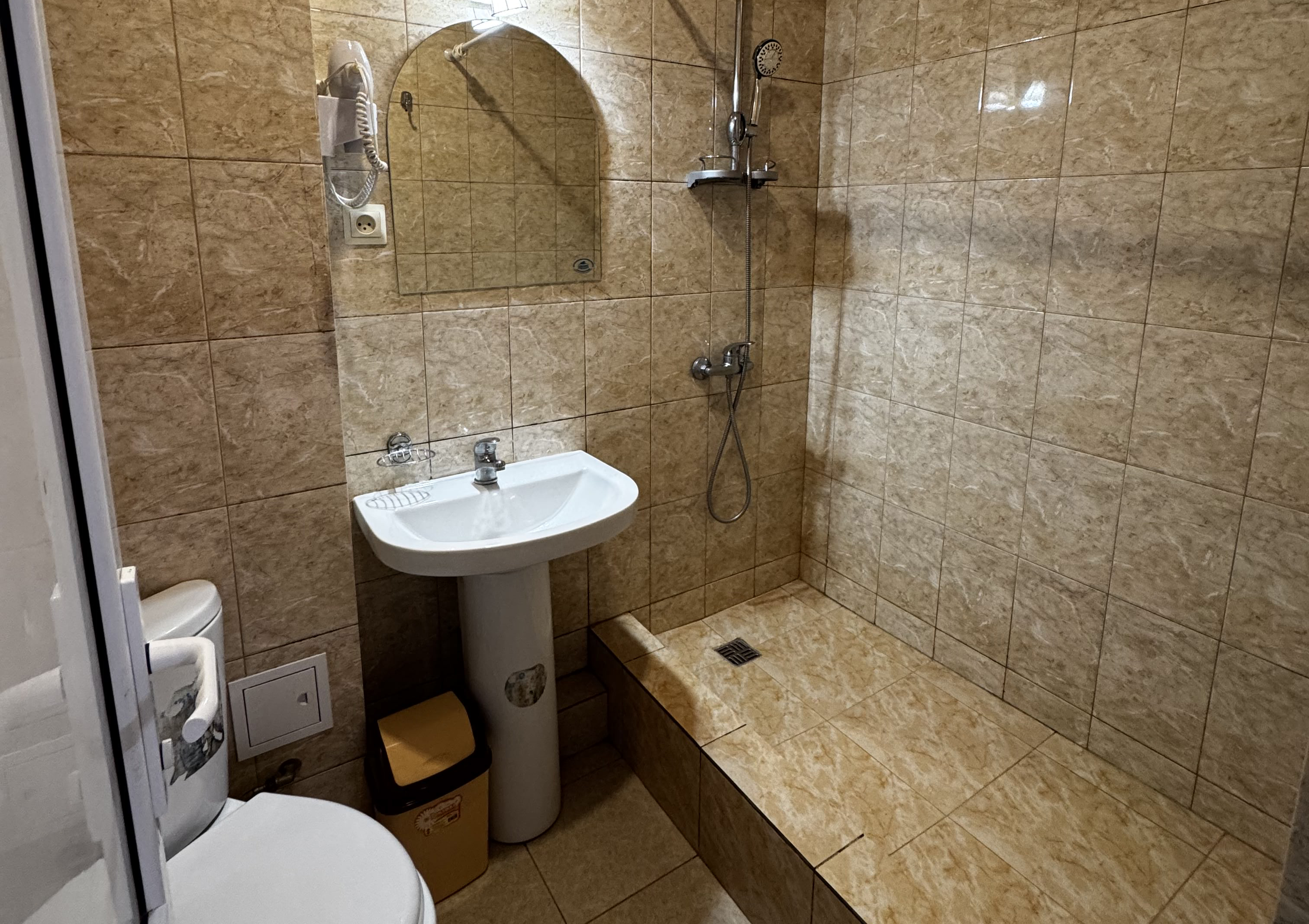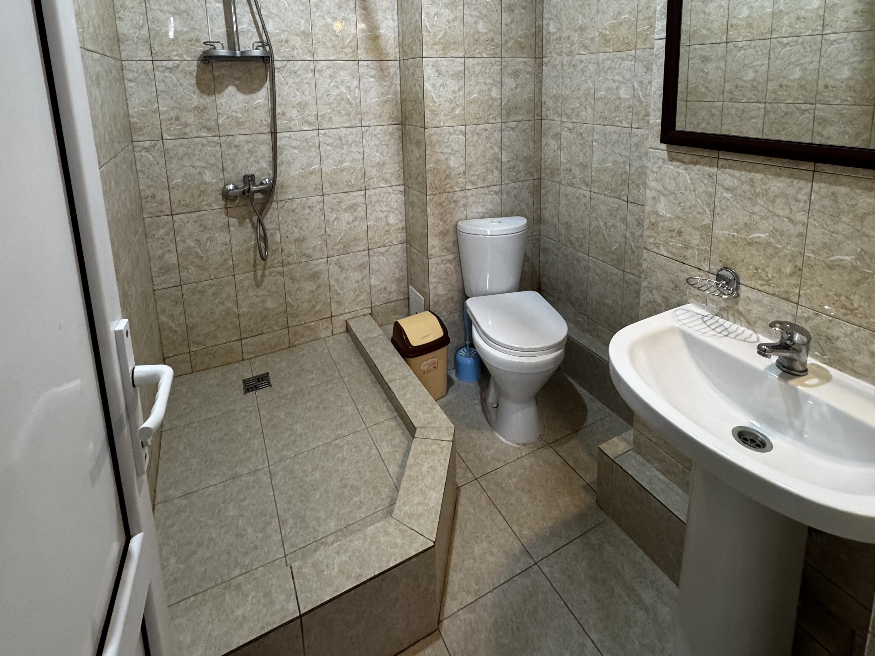 с душем: ; туалетные принадлежности: ;