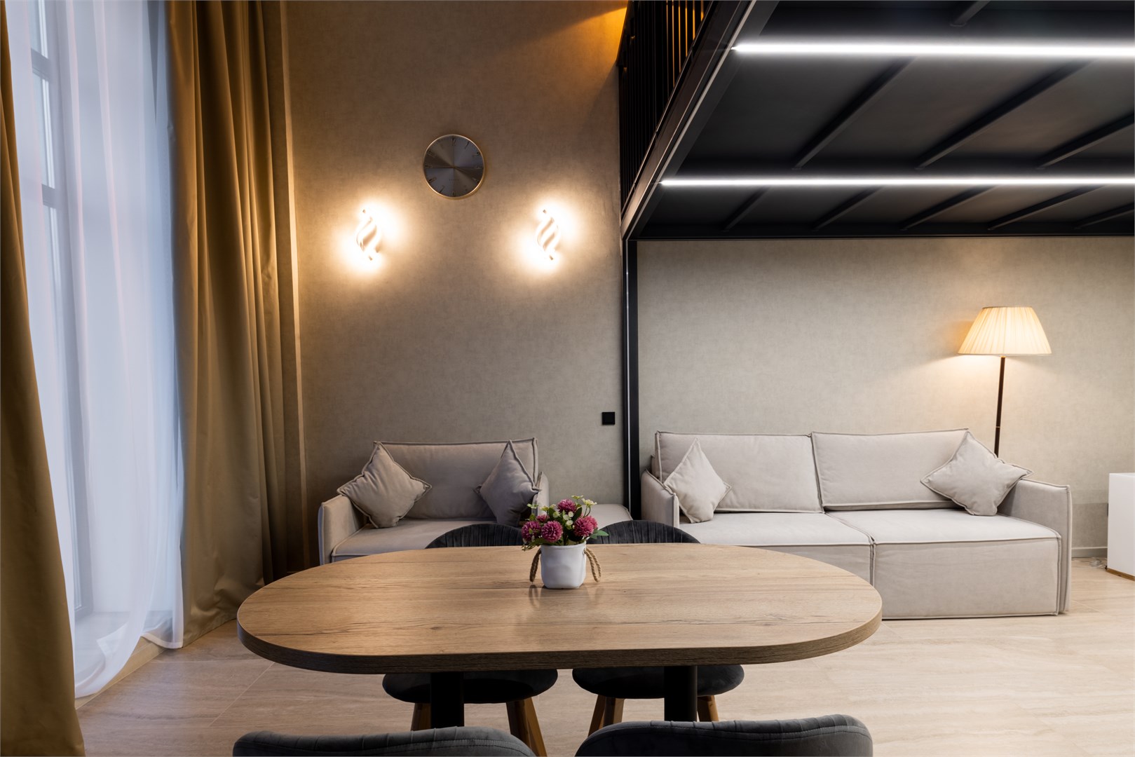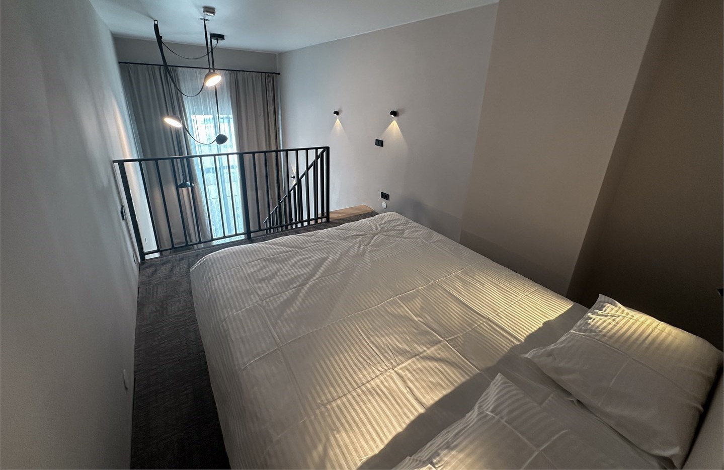 Двухэтажный корпус занимает благоустроенную территорию на улице Быкова рядом с набережной реки Сысерть. В распоряжении гостей современный двухуровневые номера: на первом ярусе – гостиная с кухней, оснащенной всей необходимой техникой, санузел с душем, халатами и тапочками для гостей, на втором – уютная спальная зона с двуспальной кроватью. Среди прочих удобств – кондиционер, сеть wi-fi и телевизор.