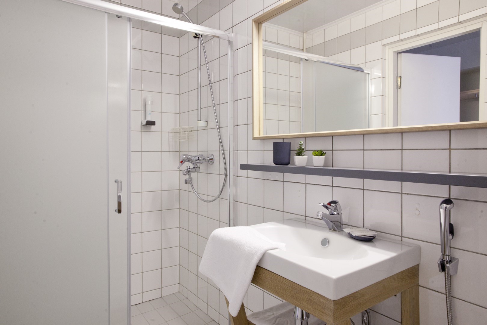 с душем: ; тапочки: ; туалетные принадлежности: ; фен: ;