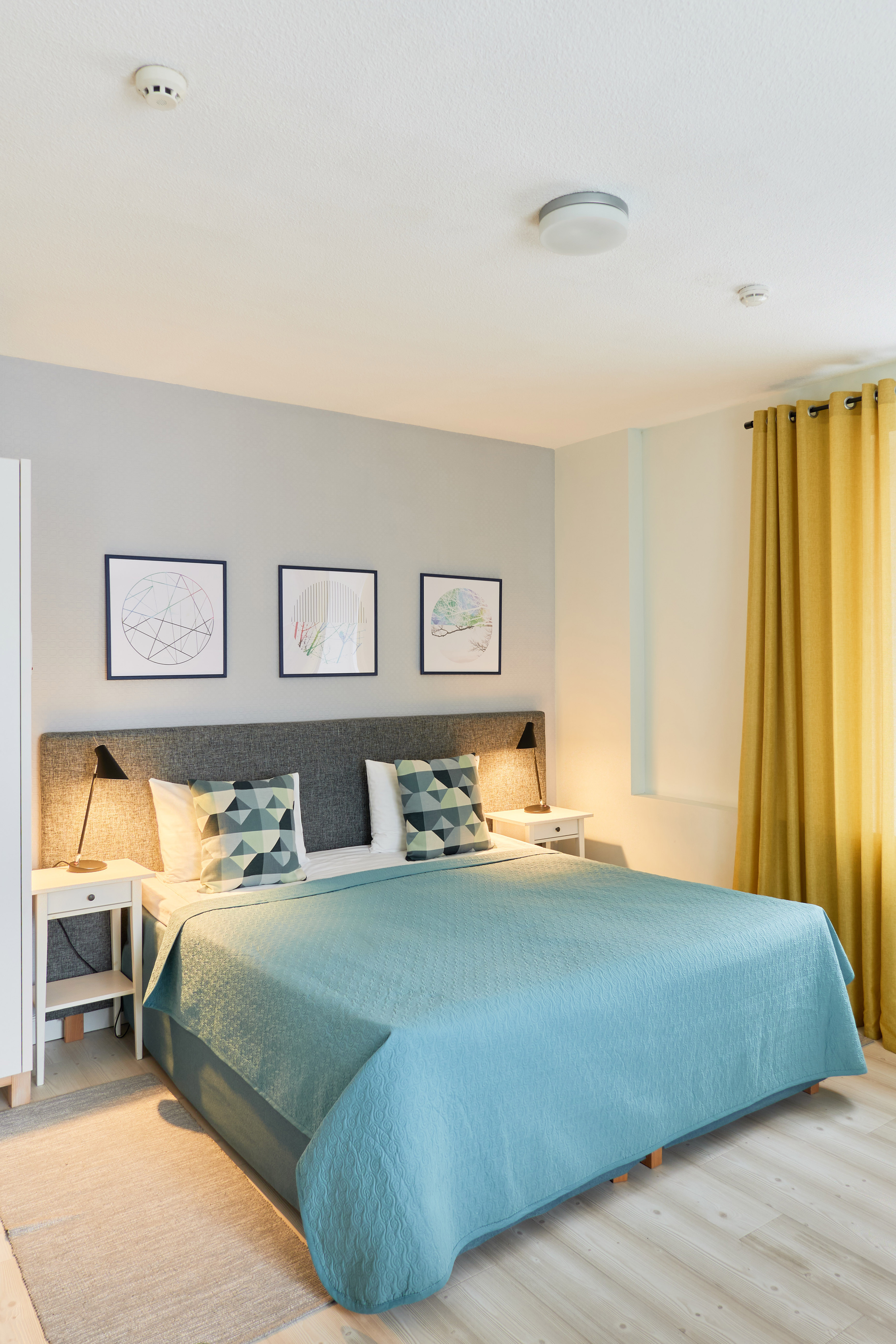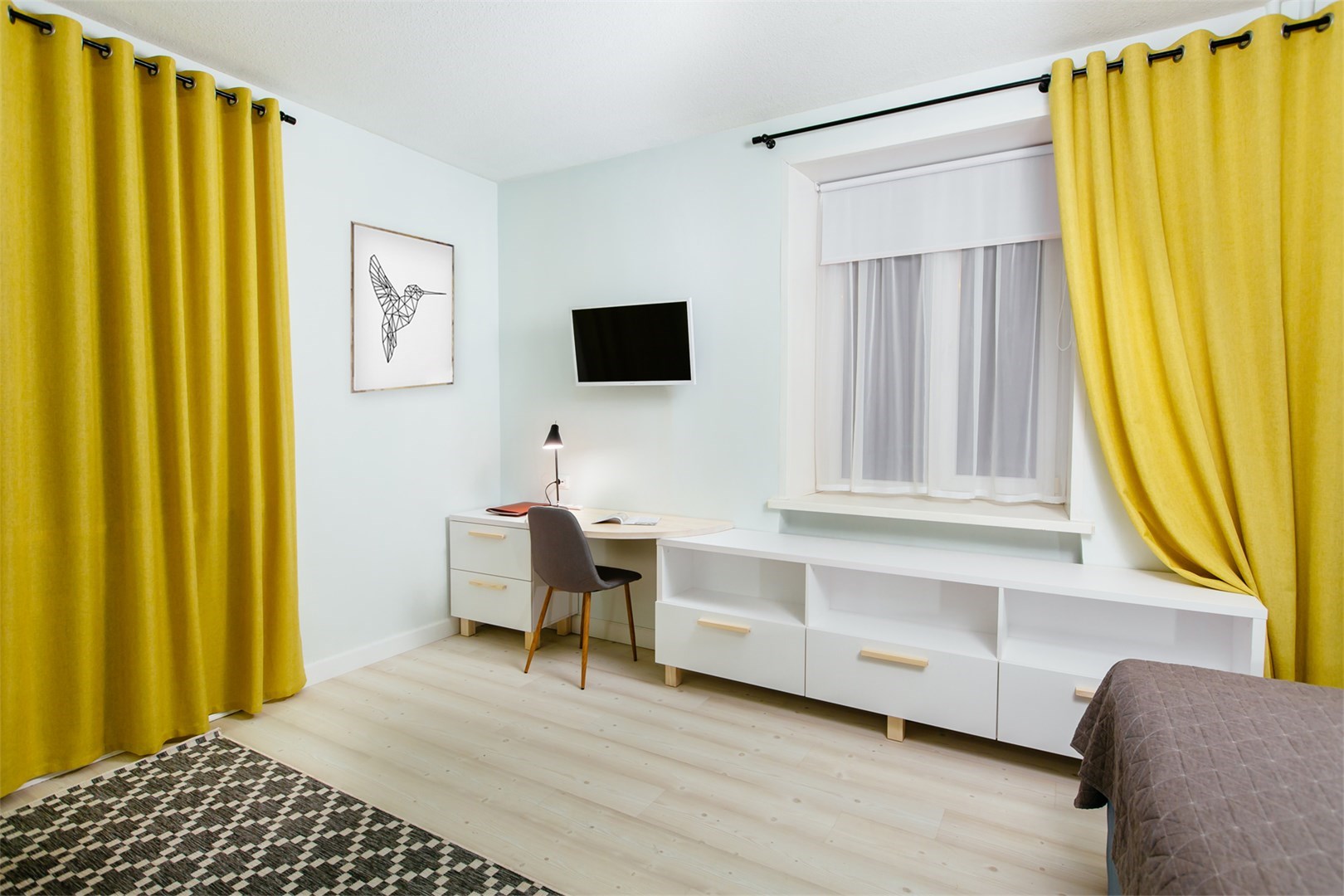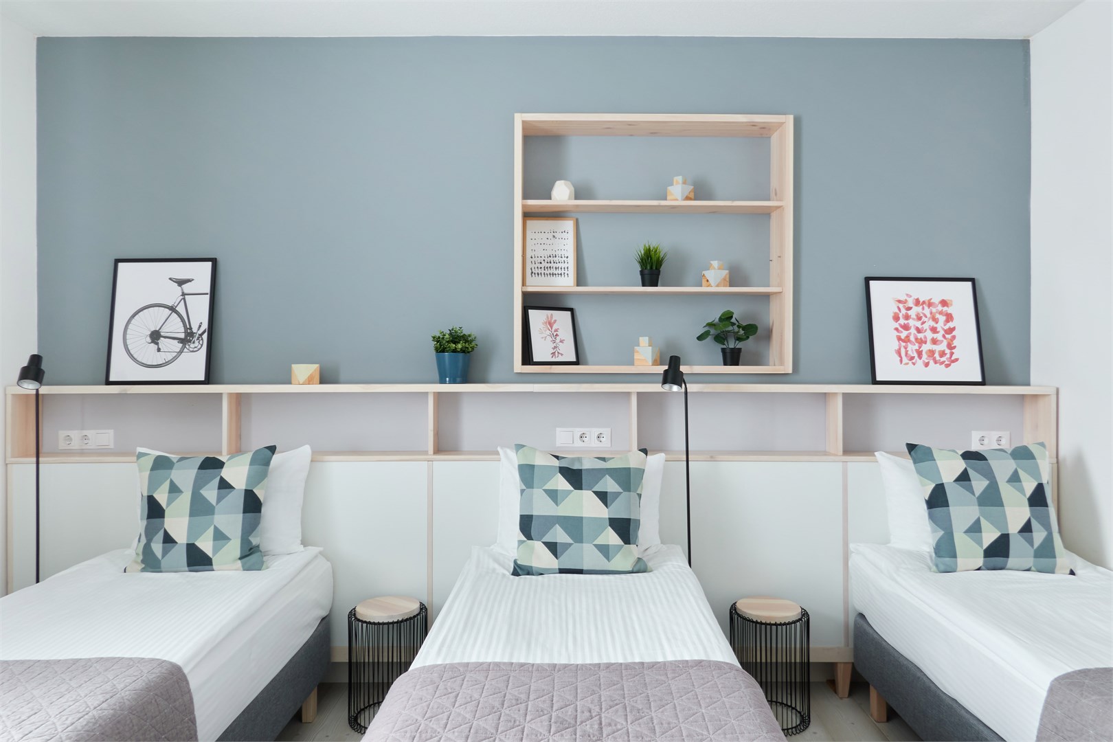 вешалка: ; кресло-кровать: ; кровати односпальные /одна двуспальная кровать: ; кровать односпальная: ; прикроватные тумбочки: ; стол: ; стол для компьютера: ; стулья: ; шкаф: ;