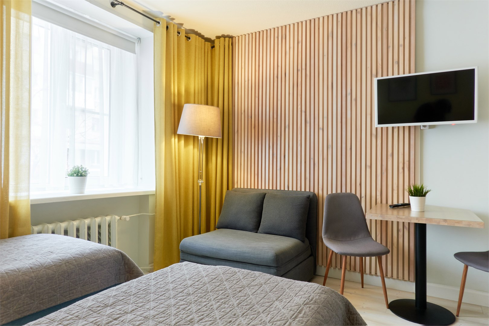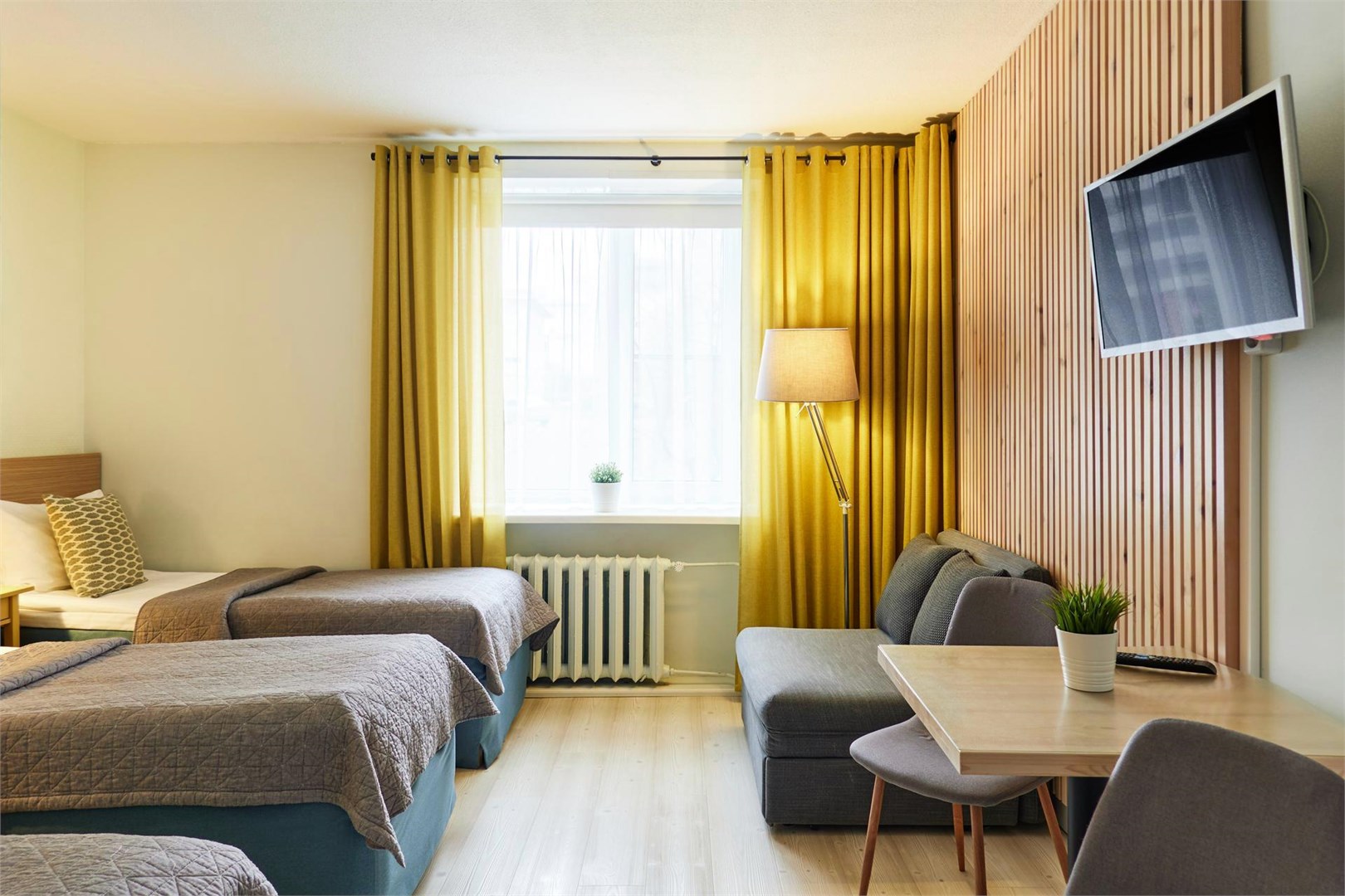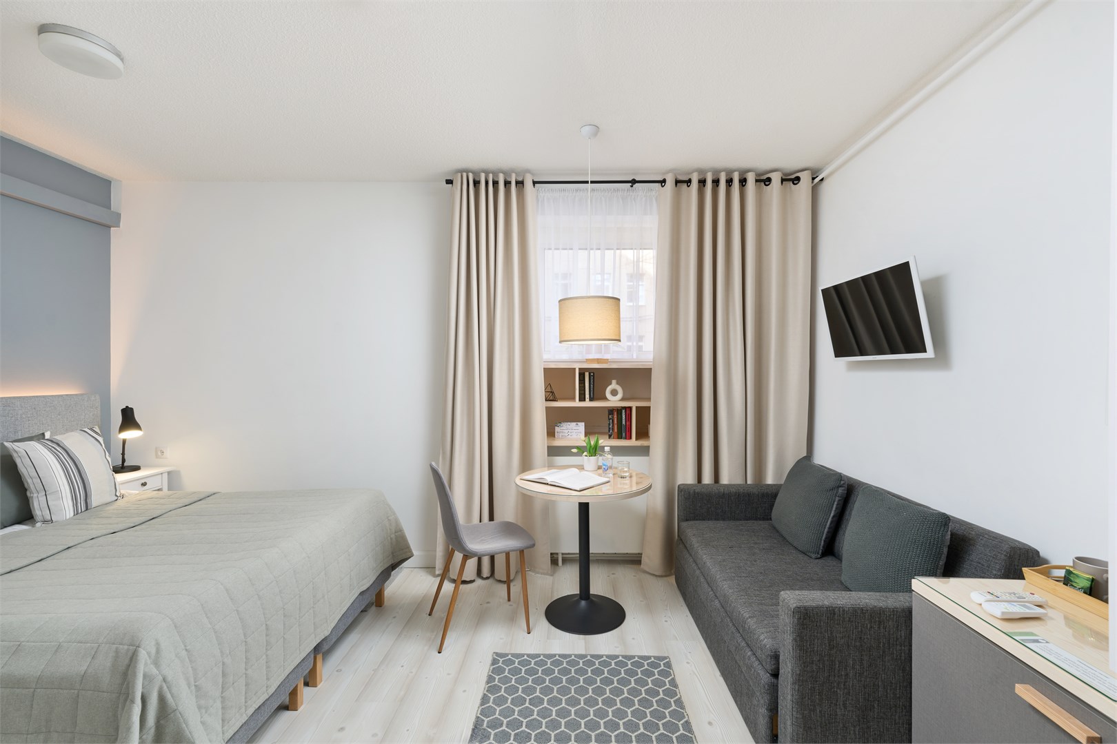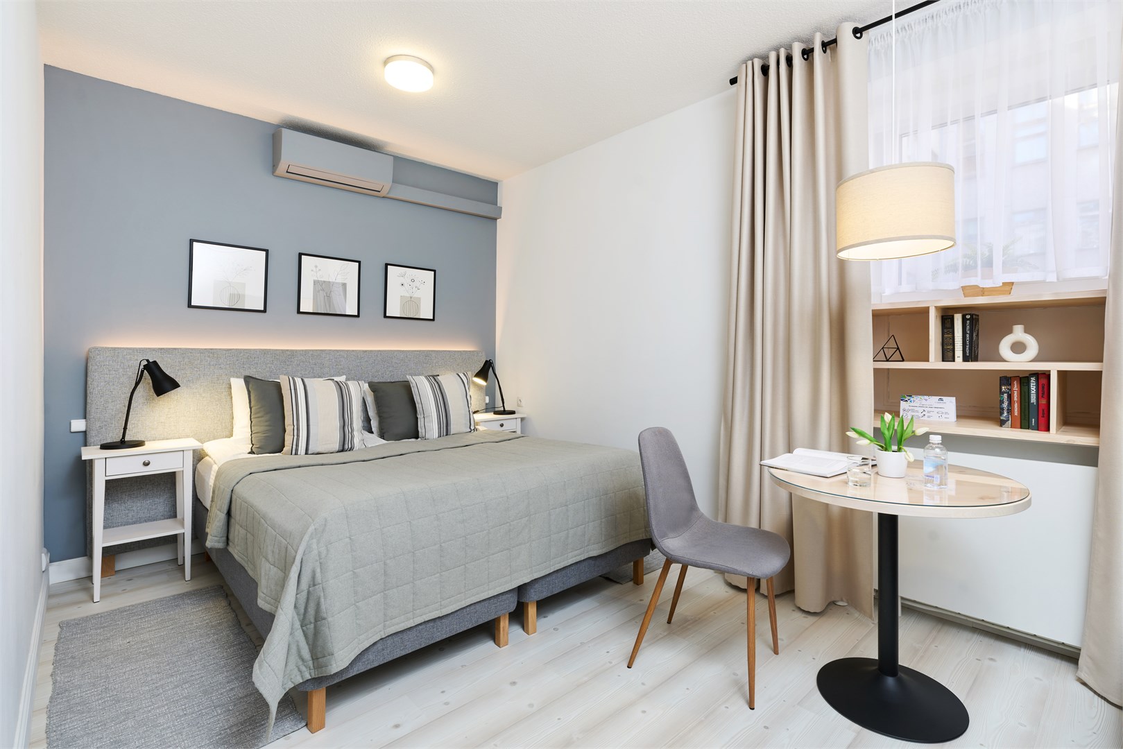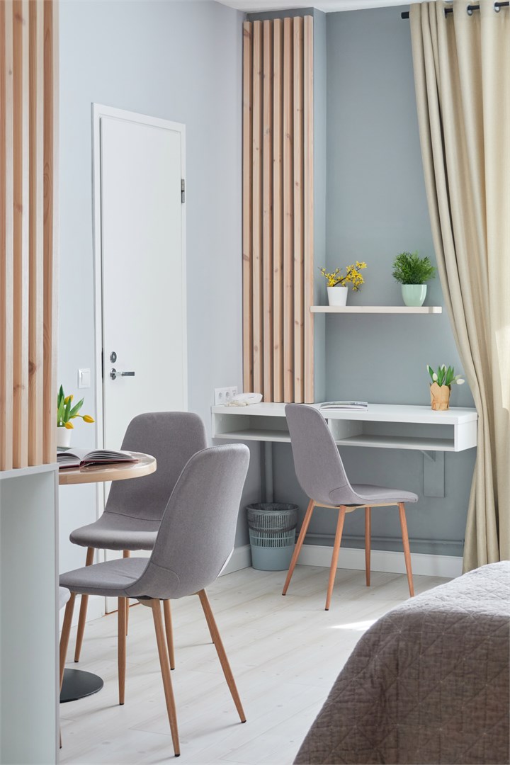 Гостей ждут 23 уютных номера, в каждом из которых продуманы детали для комфортного отдыха и работы: удобная кровать, эргономичная рабочая зона, современный телевизор, мини-холодильник и чайник. Ванные комнаты оснащены всем необходимым, а кондиционер создает приятный микроклимат в любое время года. Высокоскоростной Wi-Fi позволяет оставаться на связи. По утрам гости могут насладиться завтраком по системе «шведский стол», а вечером — собраться за чашкой чая с кондитерскими изделиями. Есть возможность заказа обедов и ужинов по меню «А-ля карт».