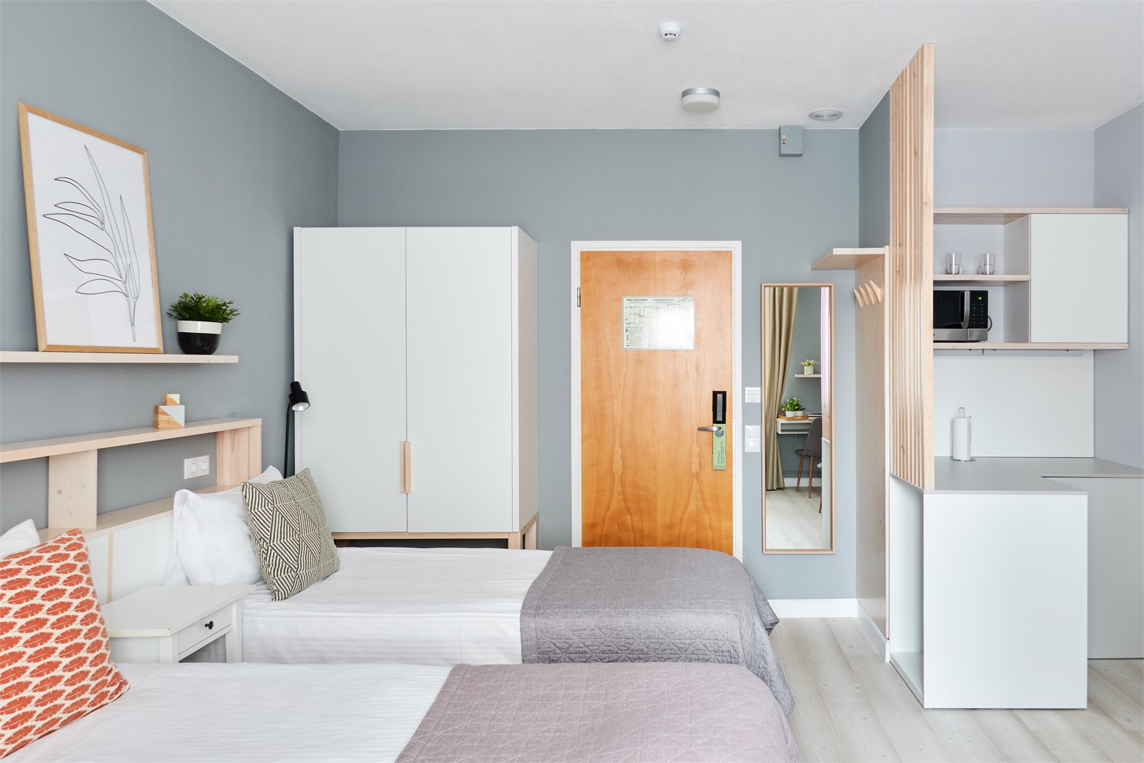 вешалка: ; диван раскладной: ; зеркало: ; кровати односпальные /одна двуспальная кровать: ; кровать односпальная: ; прикроватные тумбочки: ; стол для компьютера: ; стол обеденный: ; стулья: ; шкаф: ;