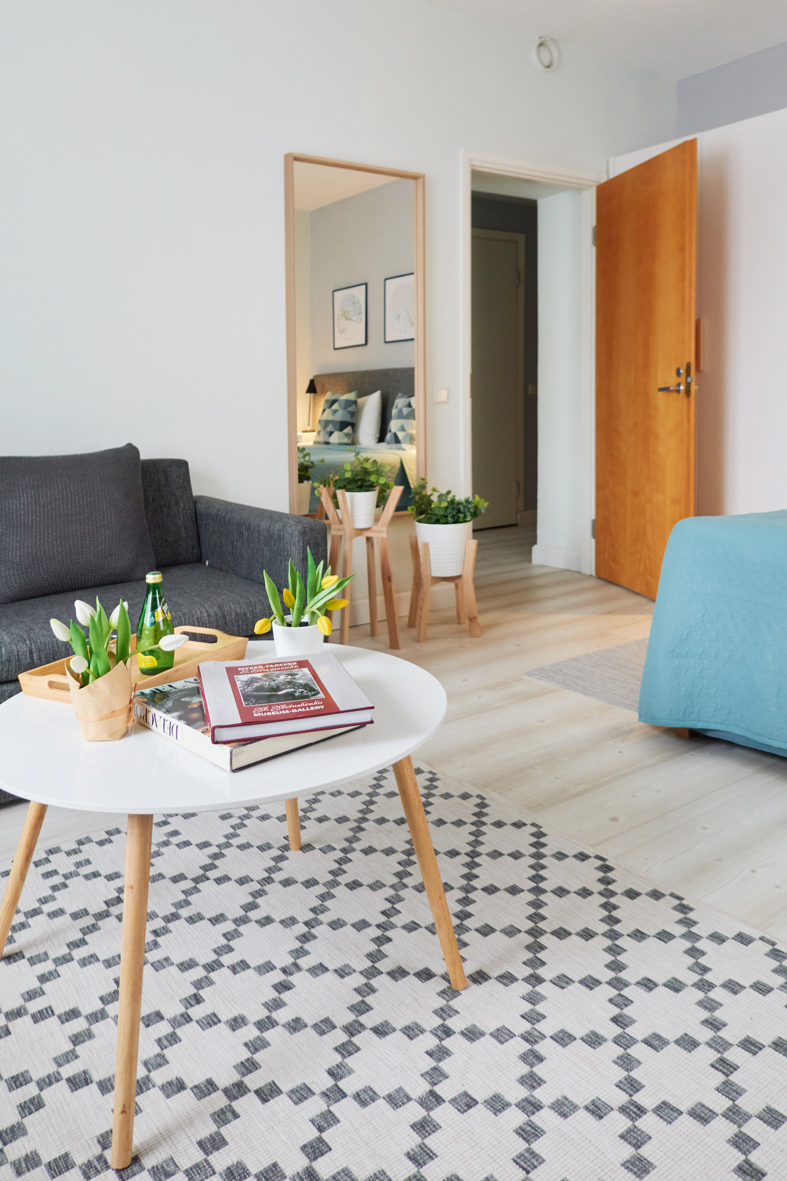 вешалка: ; диван раскладной: ; зеркало: ; кровати односпальные /одна двуспальная кровать: ; прикроватные тумбочки: ; стол: ; столик журнальный: ; стулья: ; шкаф: ;