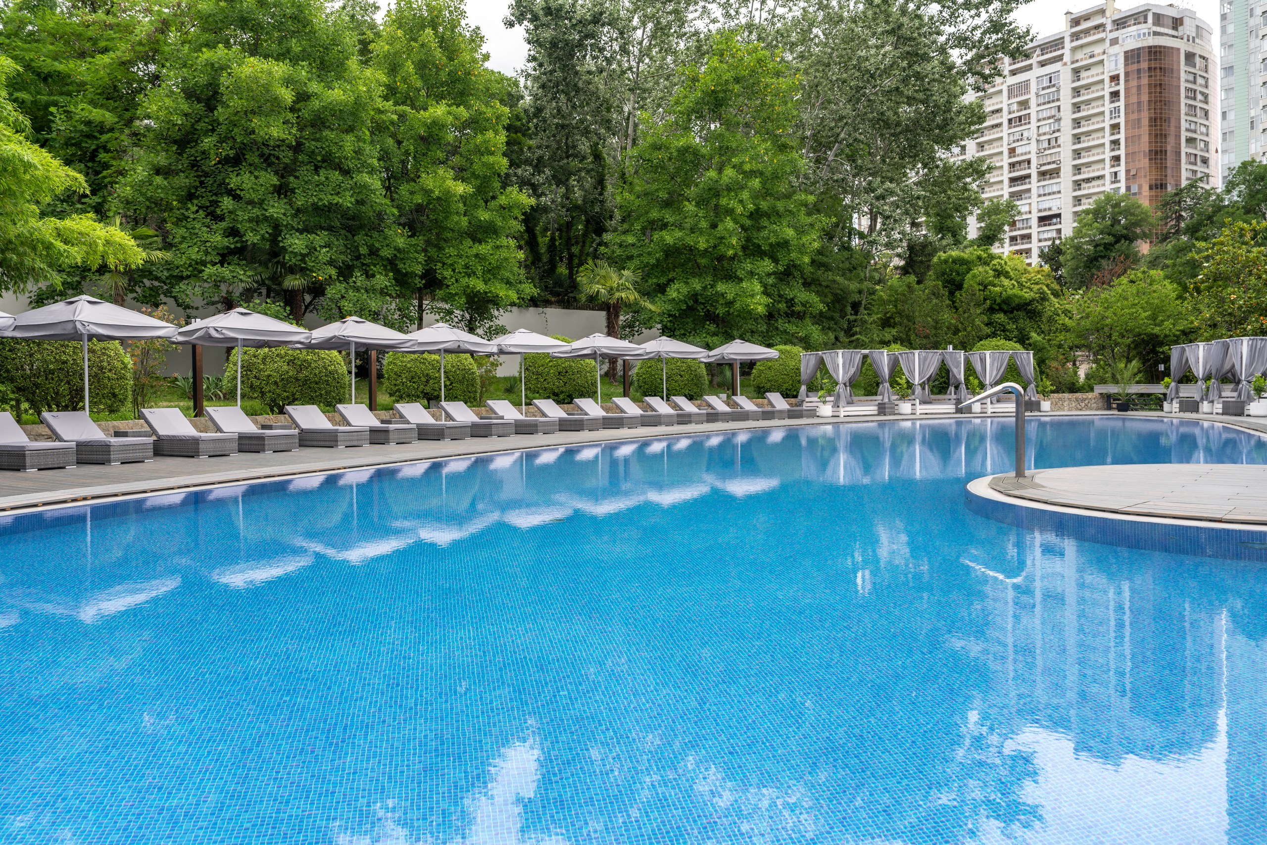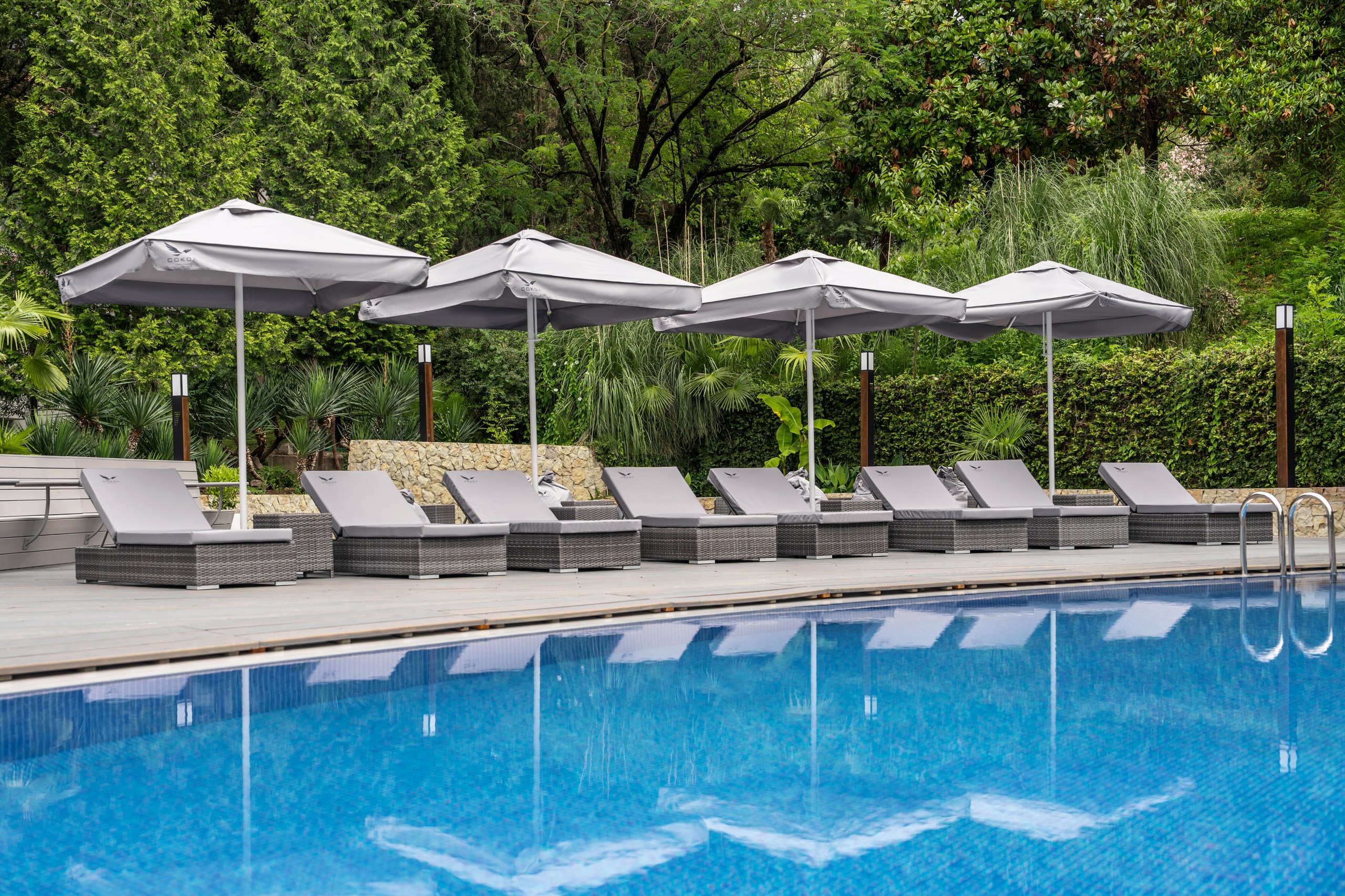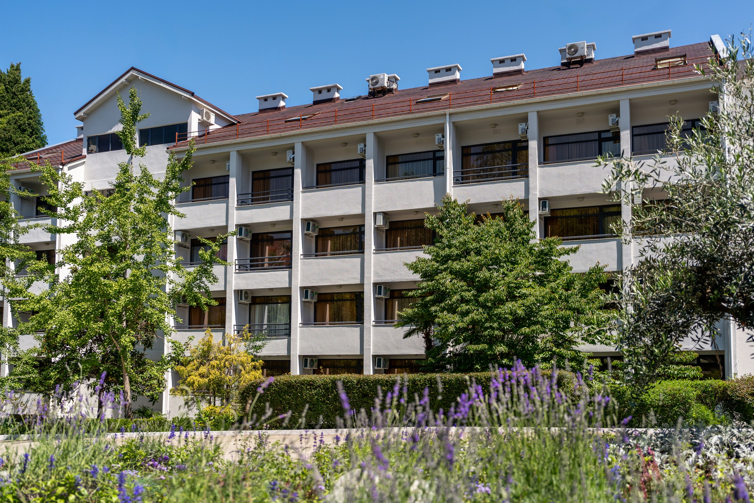 На территории пансионата предусмотрены открытый подогреваемый бассейн с гидромассажем, шезлонгами, матрасами и зонтами. Питание организовано в столовой, работает уютный бар с напитками, коктейлями и закусками прямо у бассейна. Для автолюбителей обустроена парковка. Функционирует интернет Wi-Fi.