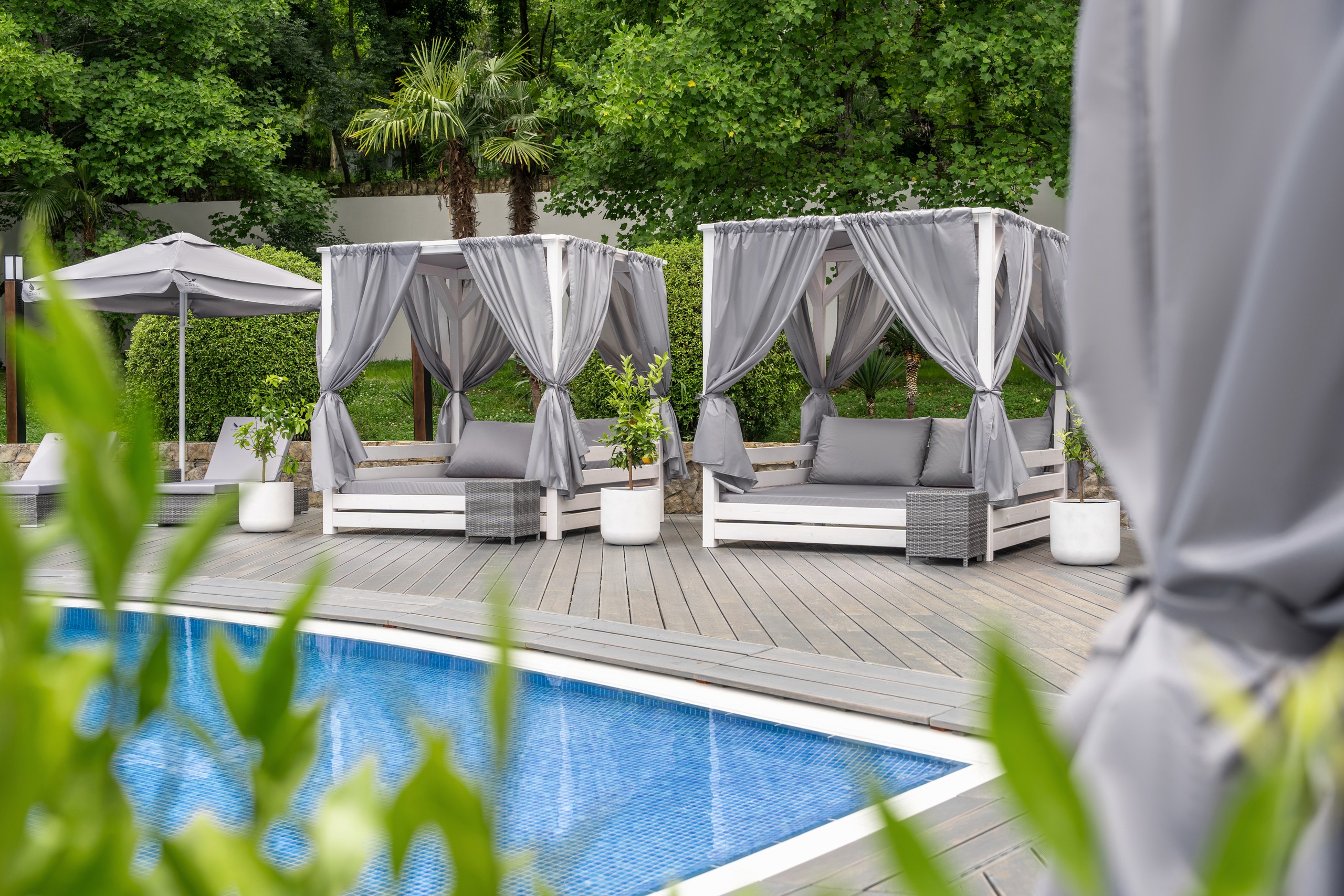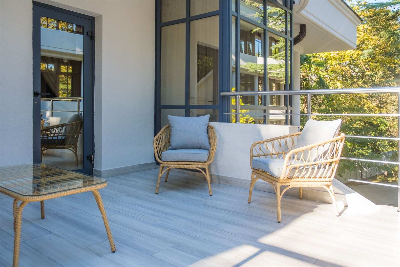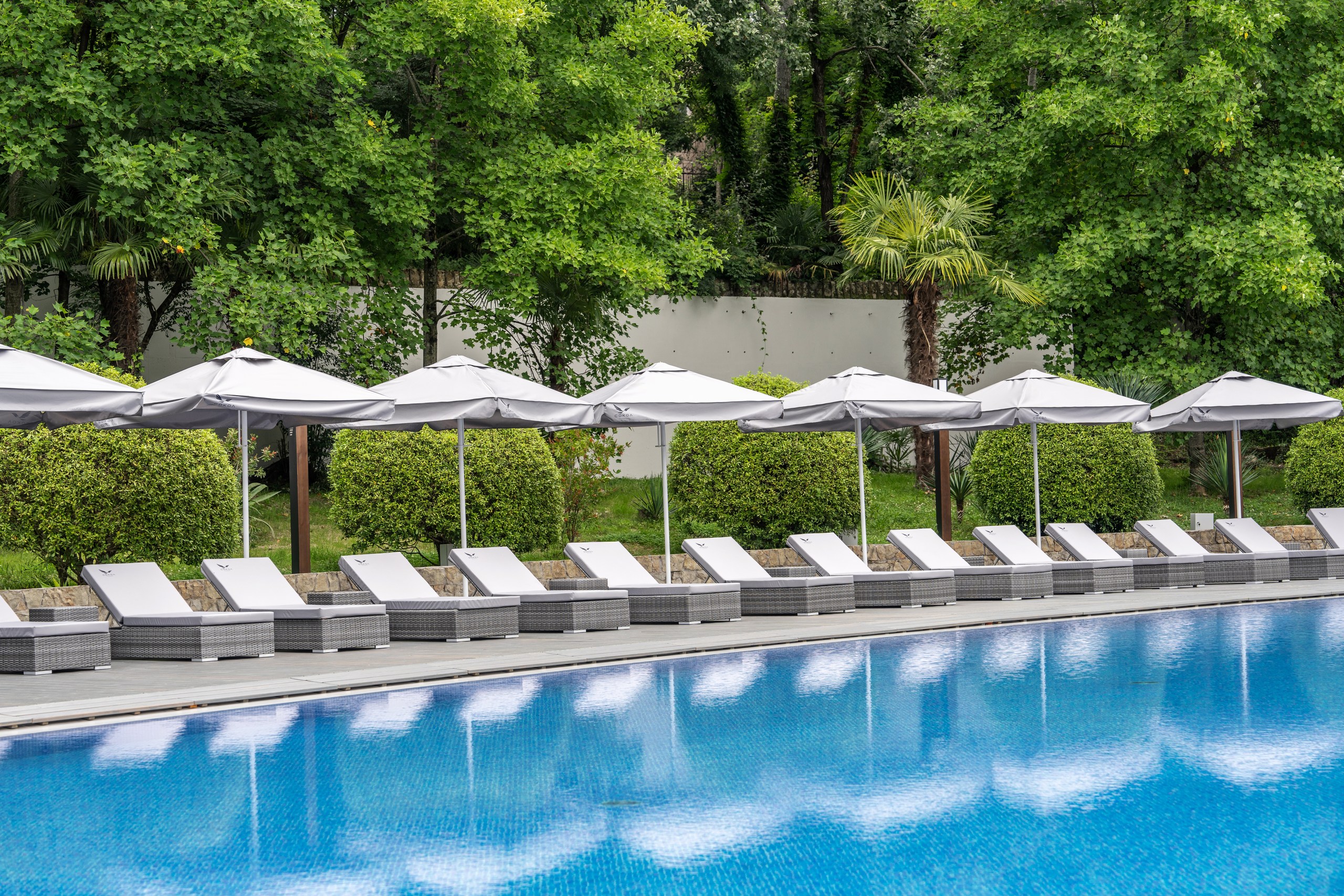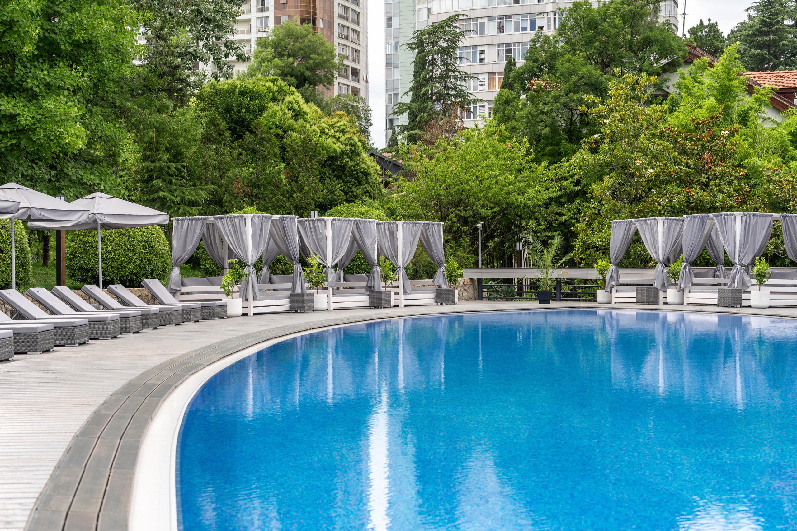 На территории пансионата предусмотрены открытый подогреваемый бассейн с гидромассажем, шезлонгами, матрасами и зонтами. Питание организовано в столовой, работает уютный бар с напитками, коктейлями и закусками прямо у бассейна. Для автолюбителей обустроена парковка. Функционирует интернет Wi-Fi.