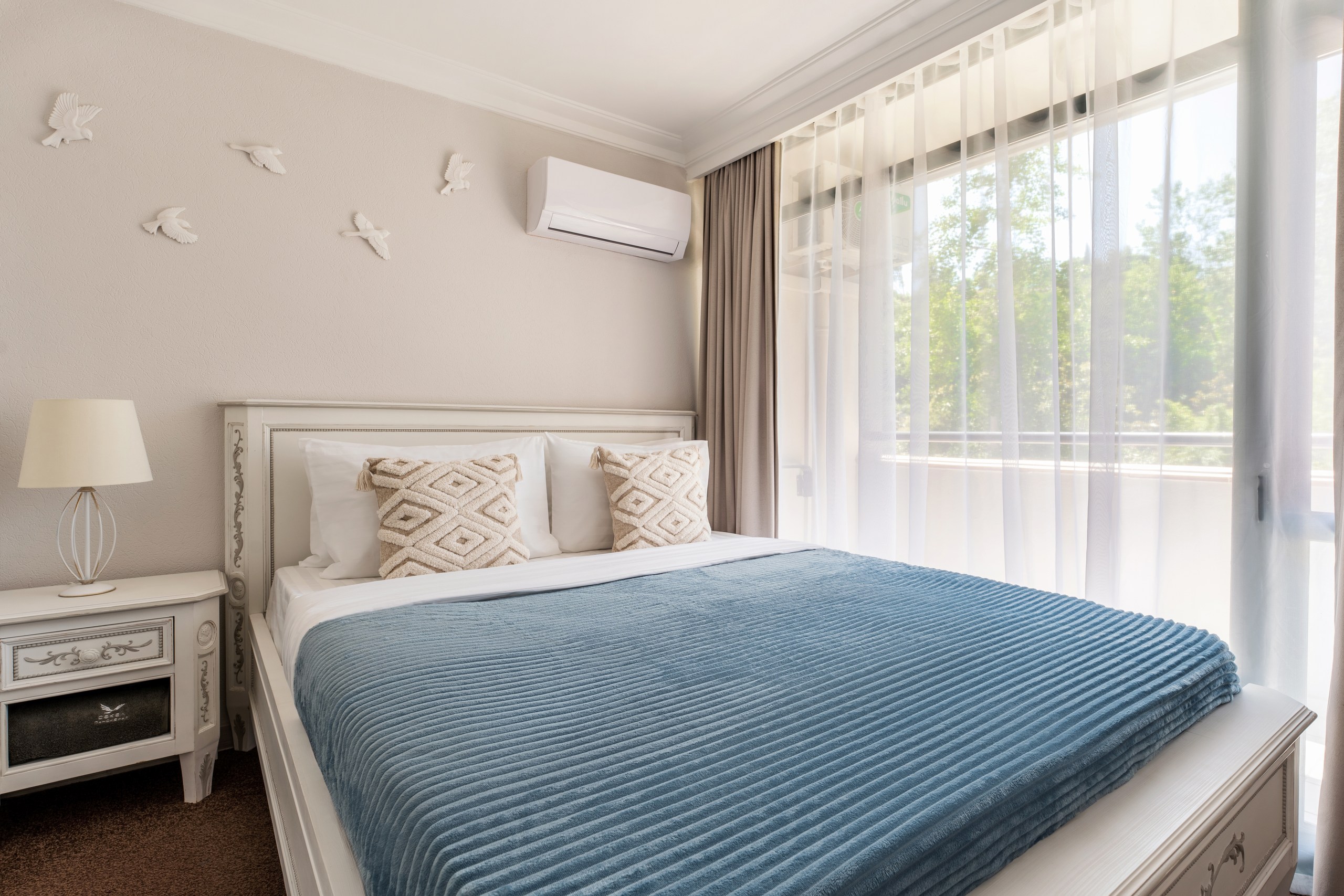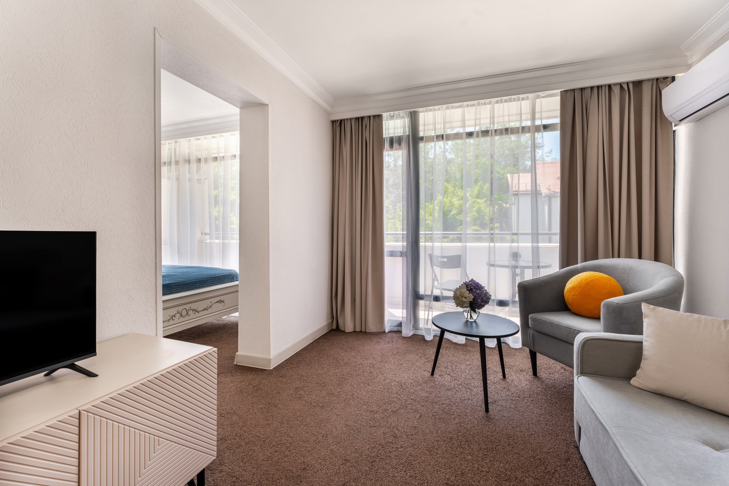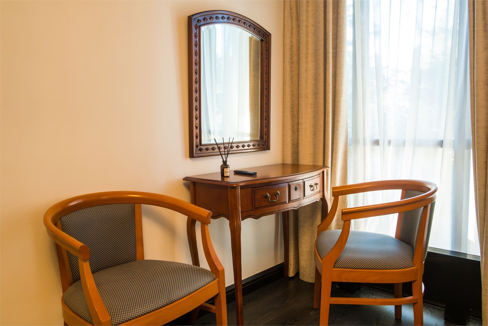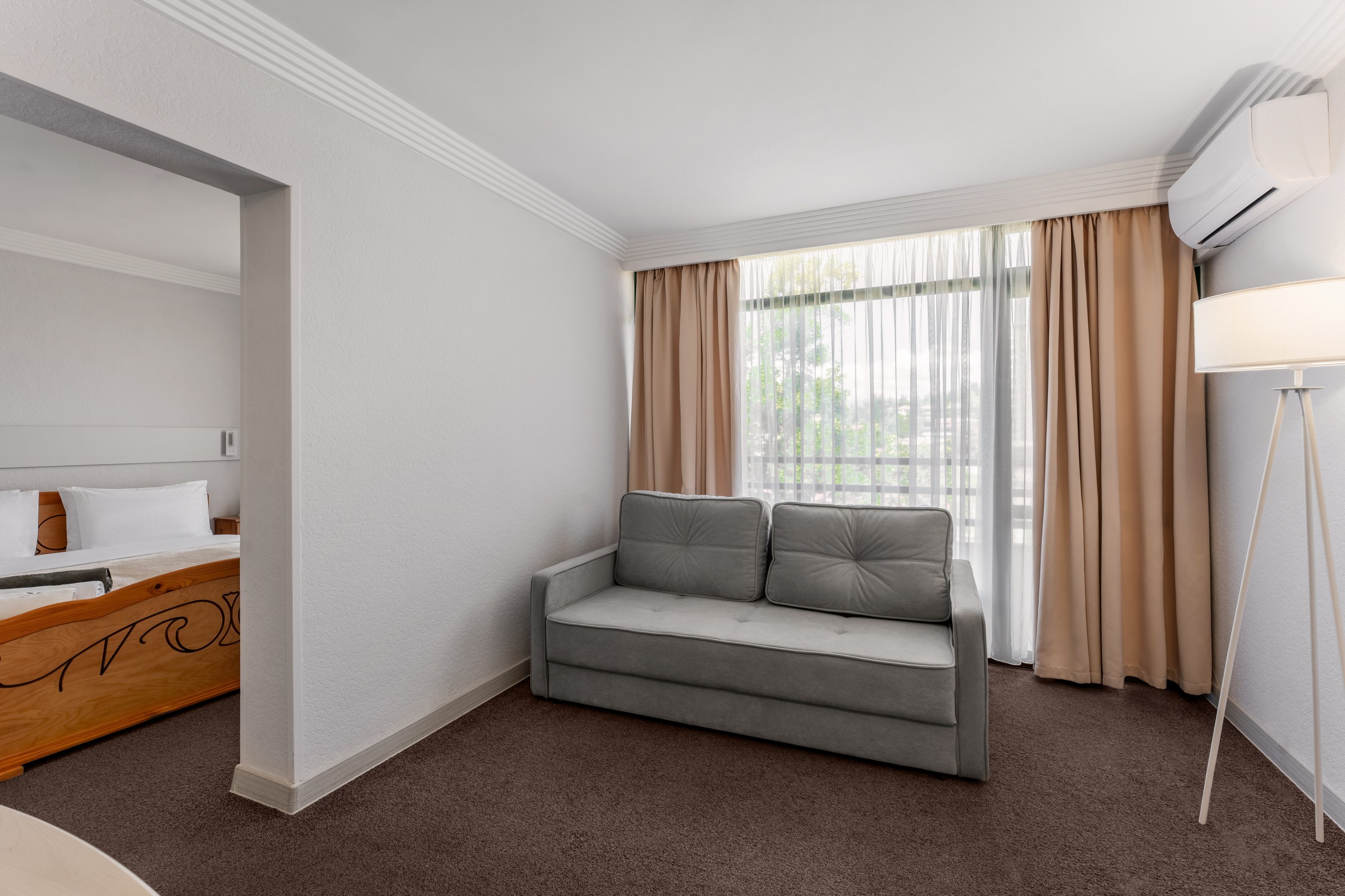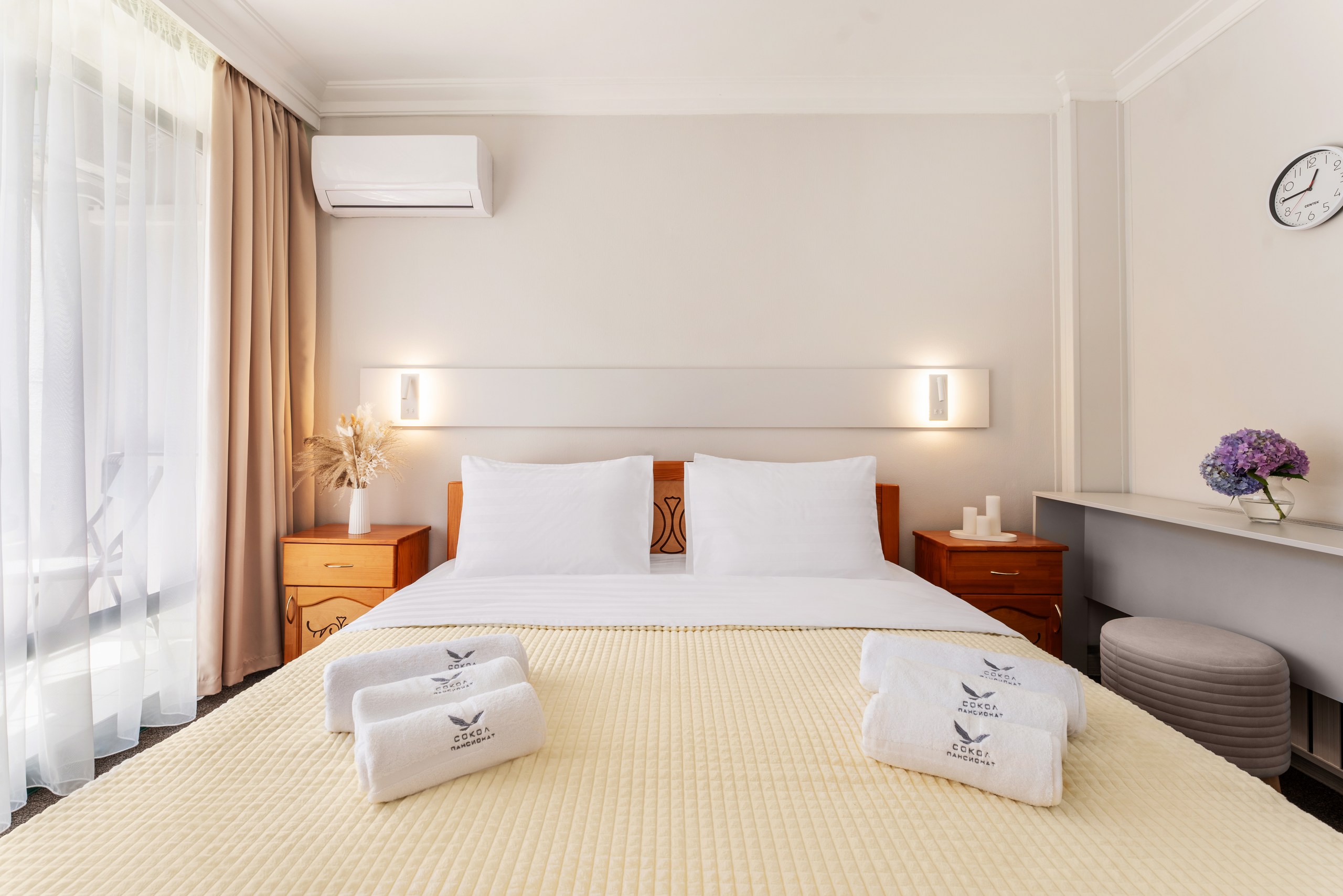 Номерной фонд представлен номерами различной комфортности. В каждом номере санузел с душем или ванной, фен, халат, тапочки, современная и удобная мебель, балкон, телевизор ЖК, холодильник, сплит-система, электрочайник.
