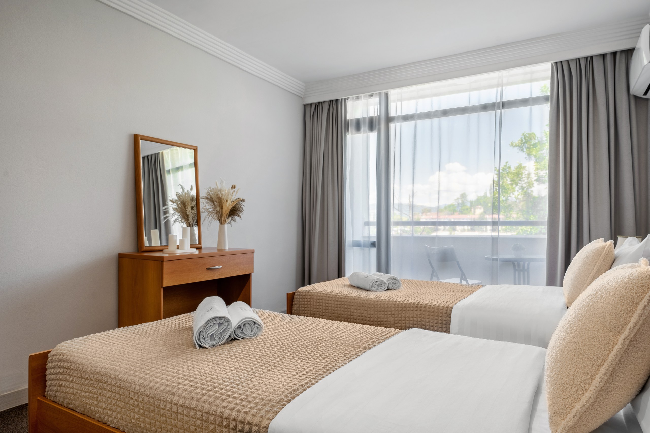 - Улучшенный. 2-местный 2-комнатный. Площадь: 24-30. Осн. мест: 2. Доп. мест: 2. Всего таких номеров: 9.