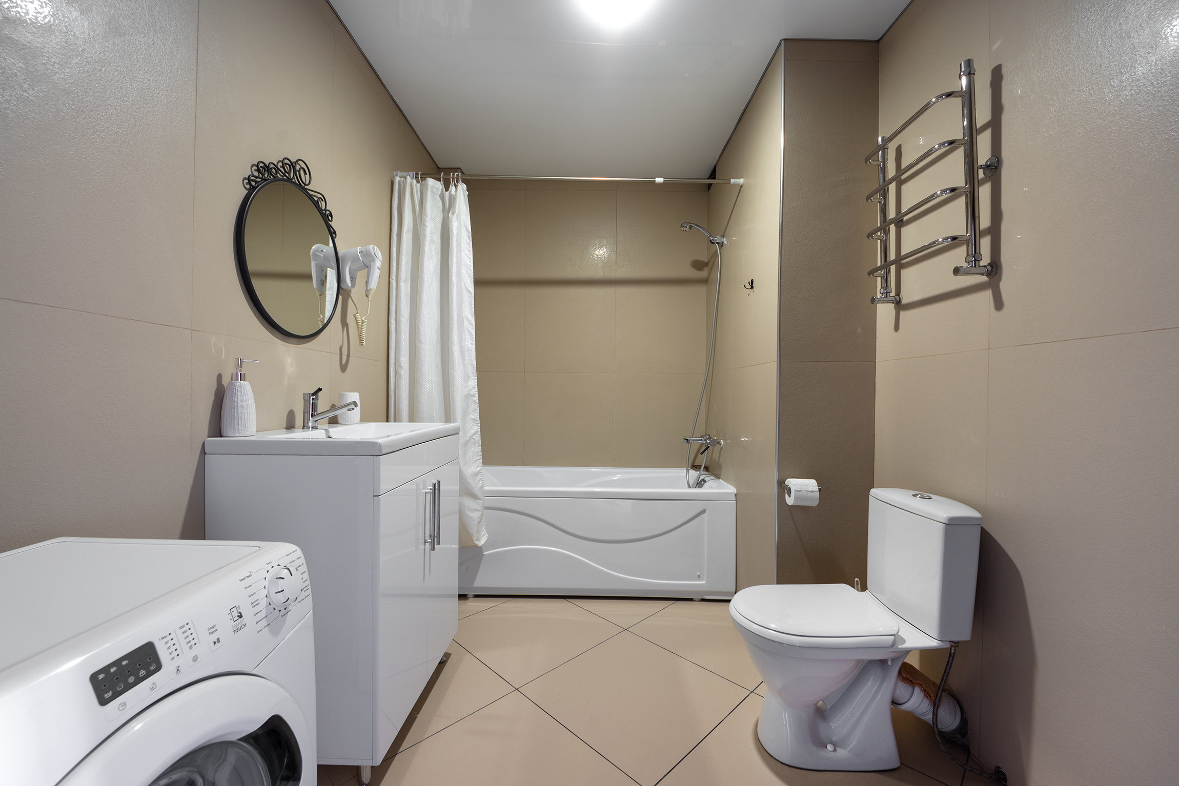 с ванной: ; туалетные принадлежности: ; фен: ;