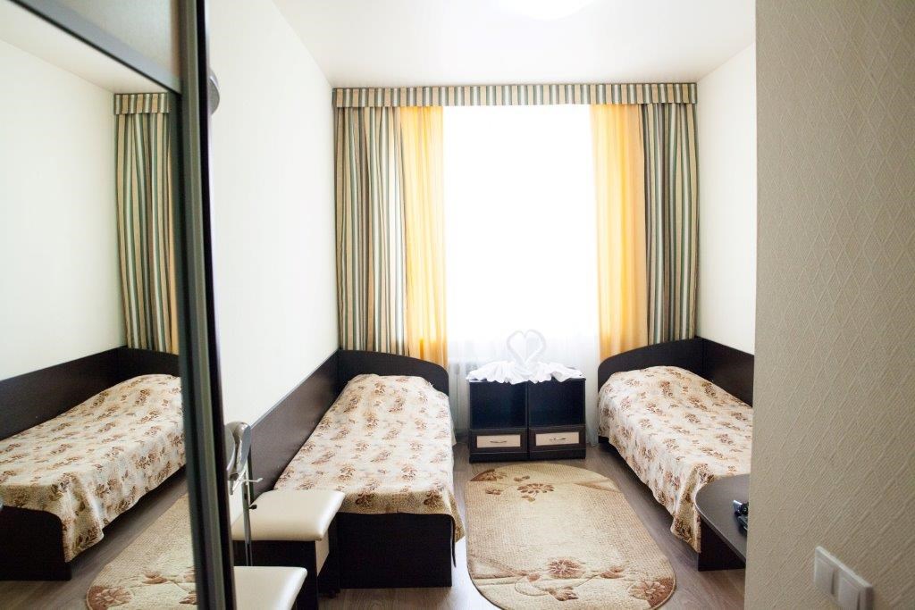 Пятиэтажный корпус расположен на тихой зеленой Баталинской улице. Для размещения гостям предлагаются номера разных категорий: можно выбрать стандартный номер или разместиться в общих комнатах. В номерах предусмотрен санузел с душем, есть кондиционер и телевизор.