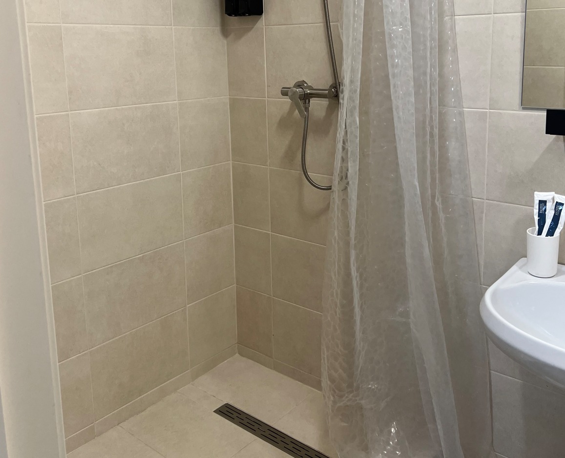 с душем: ; туалетные принадлежности: ;