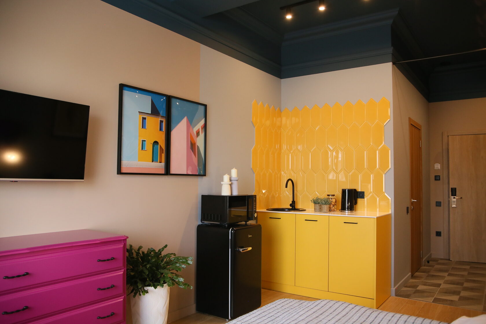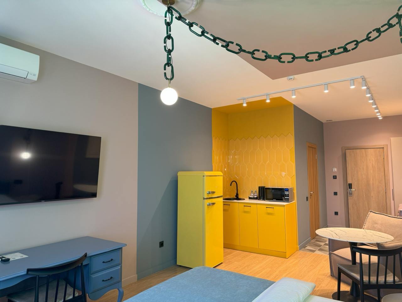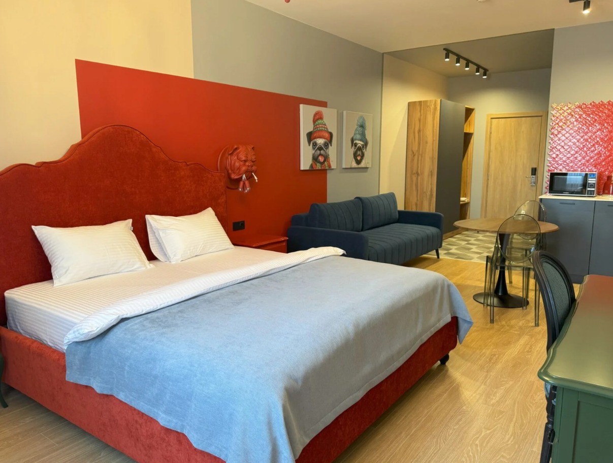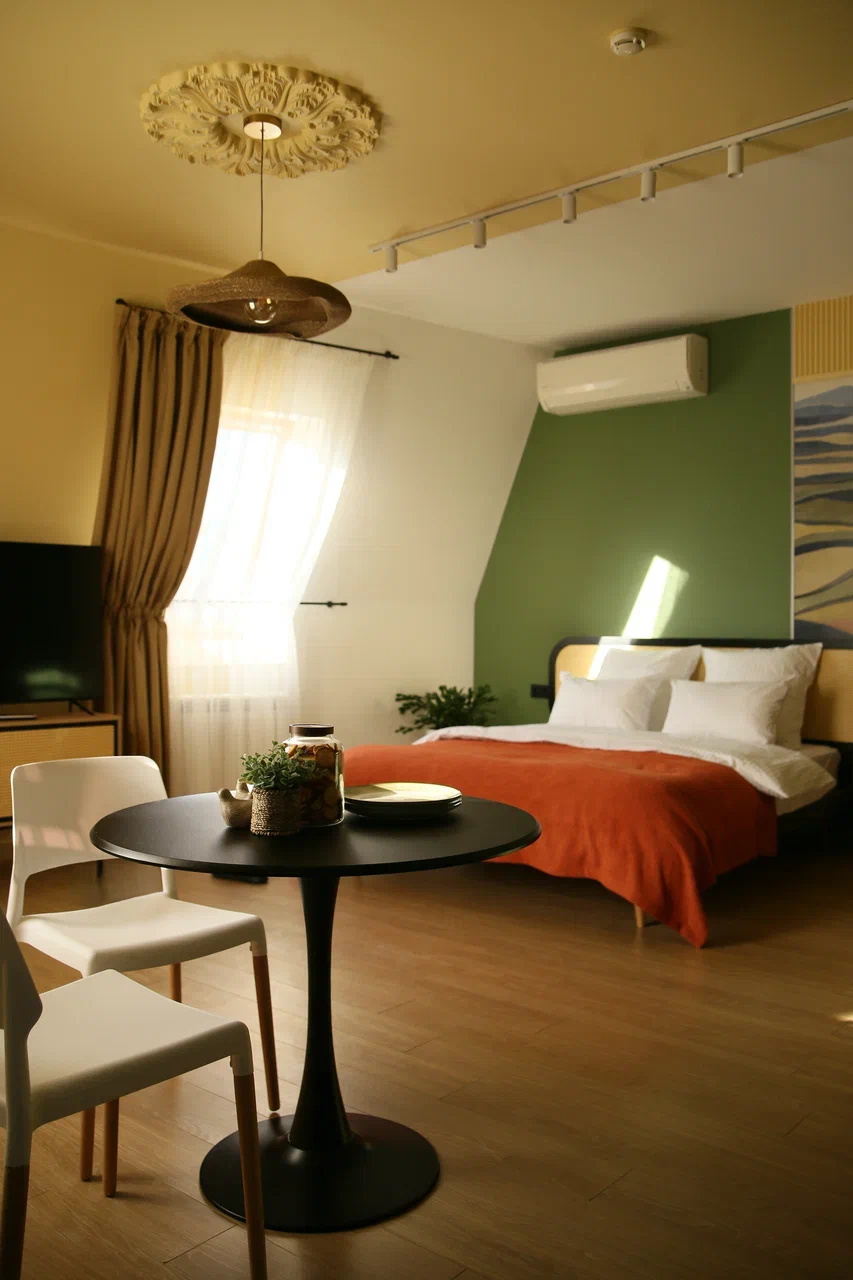 Апарт-отель Размалевич находится в самом центре Пятигорска и приглашает насладиться комфортом и стилем. К вашим услугам 17 не похожих друг на друга дизайнерски оформленных номеров с индивидуальными кухнями — от компактных мини-версий до полнофункциональных помещений с плитой и всей необходимой утварью.