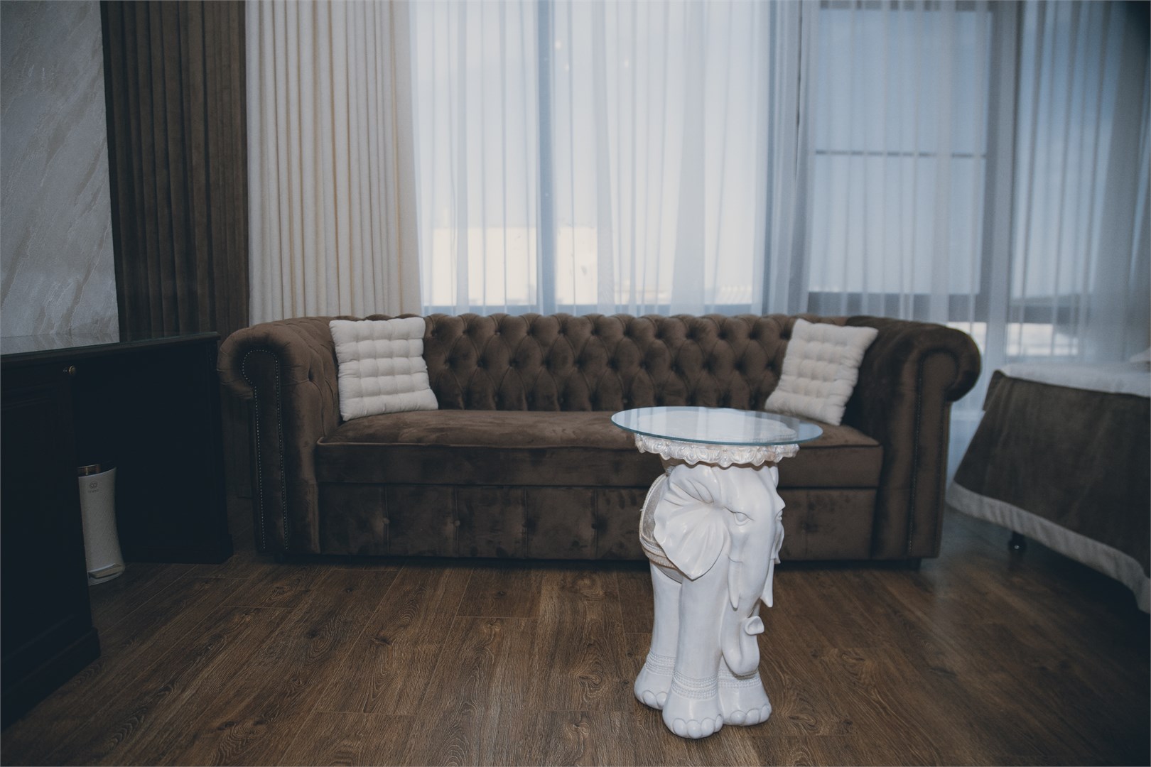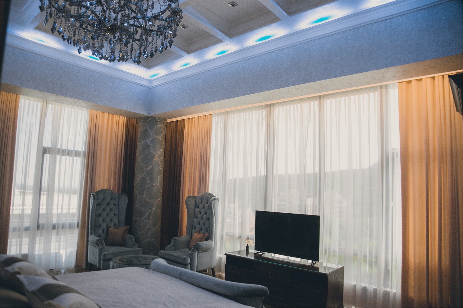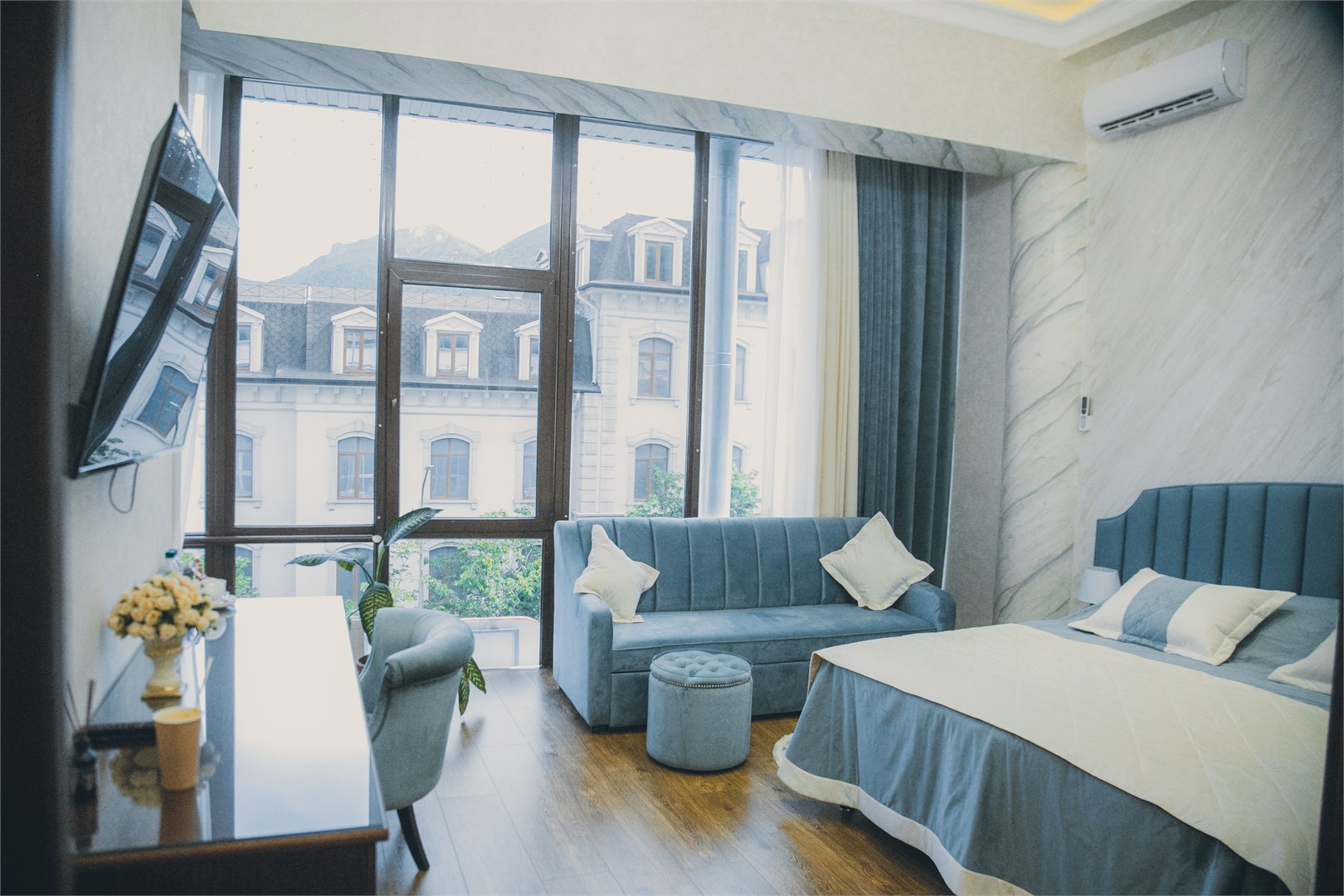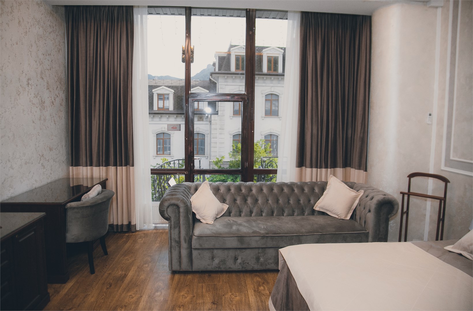 Гости могут остановиться в номерах разных категорий. Интерьеры оформлены в спокойных нейтральных тонах, меблировка современная и функциональная?— в комнатах есть удобные кровати, диваны, кондиционер, телевизор, мини?бар и сейф. В санузлах — душевая кабина, фен, тапочки и гигиенические средства, а подогрев полов позволяет комфортно чувствовать себя при любой погоде.