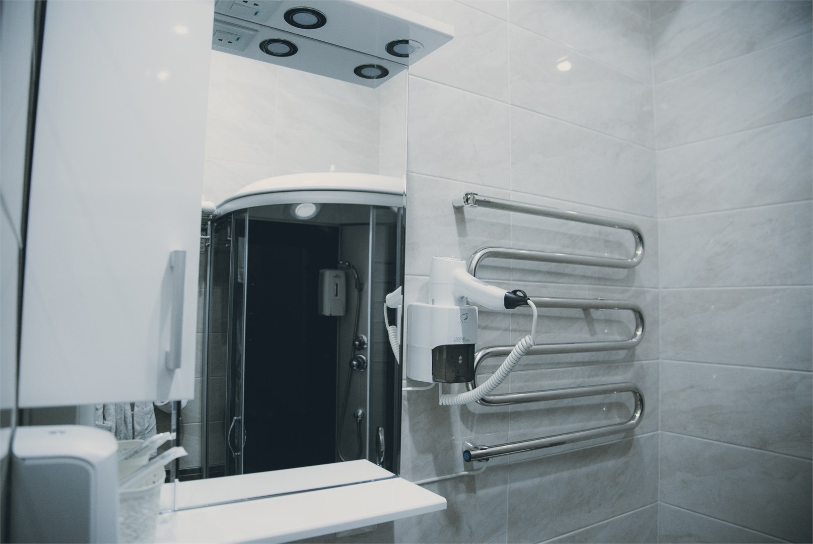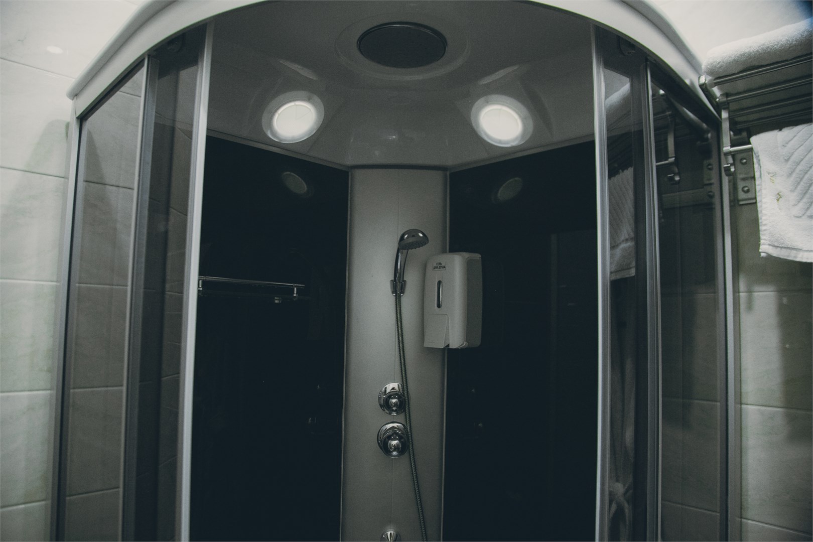 с душевой кабиной: ; туалетные принадлежности: ; фен: ;