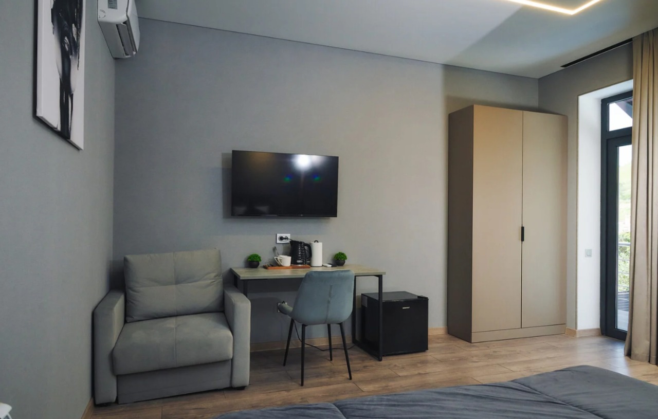 мини-холодильник: ; телевизор ЖК: ; чайный набор посуды: ; электрочайник: ;