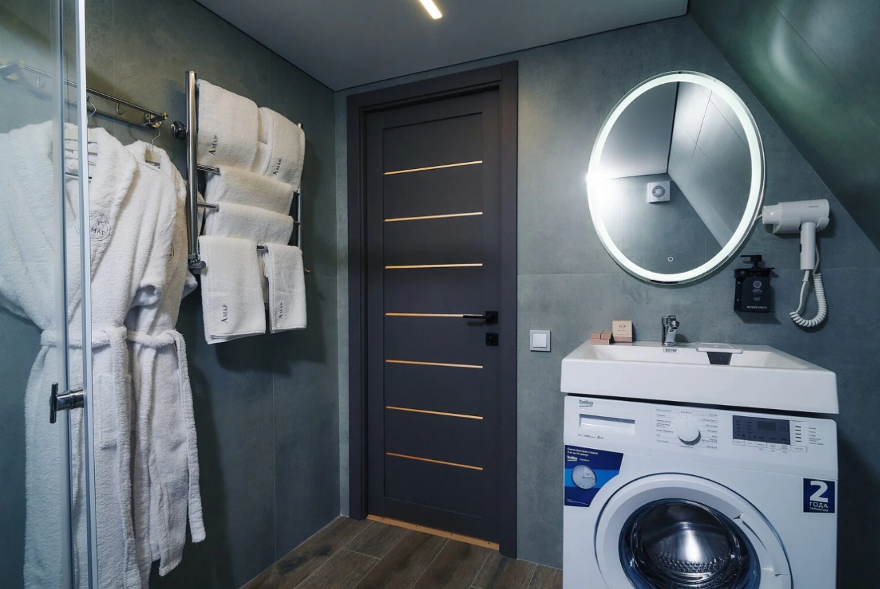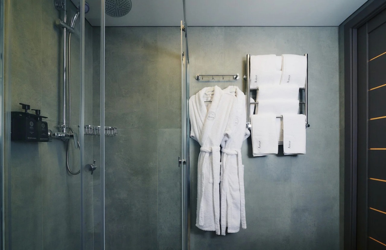с душевой кабиной: ; туалетные принадлежности: ; фен: ; халат: ;