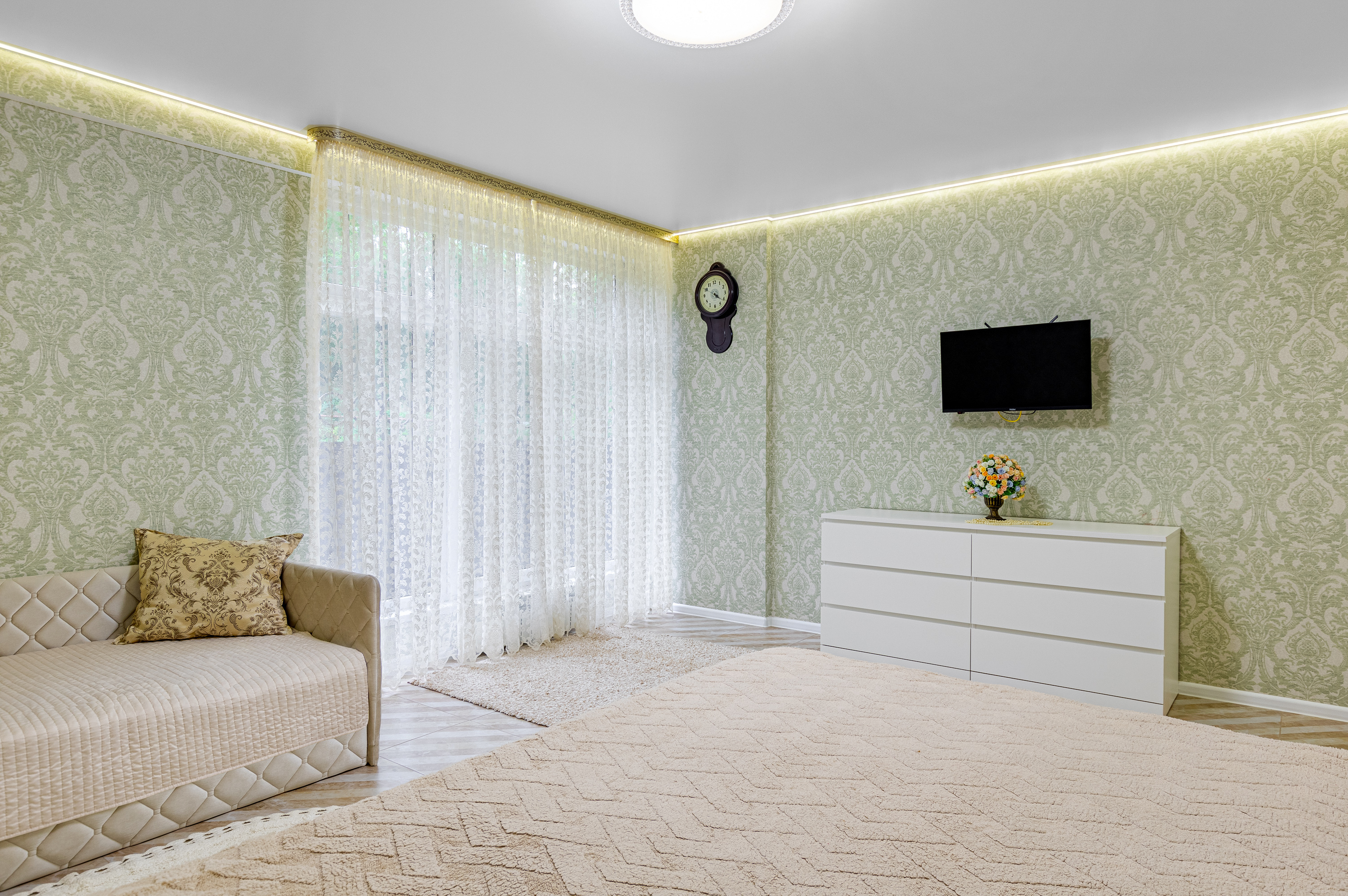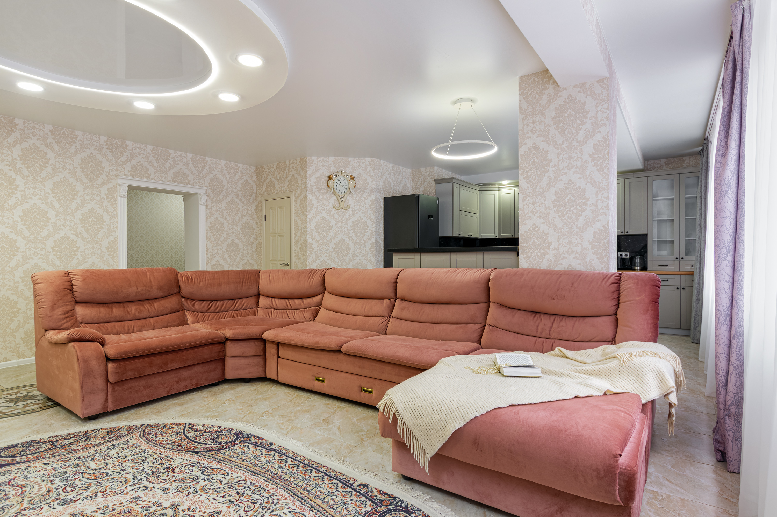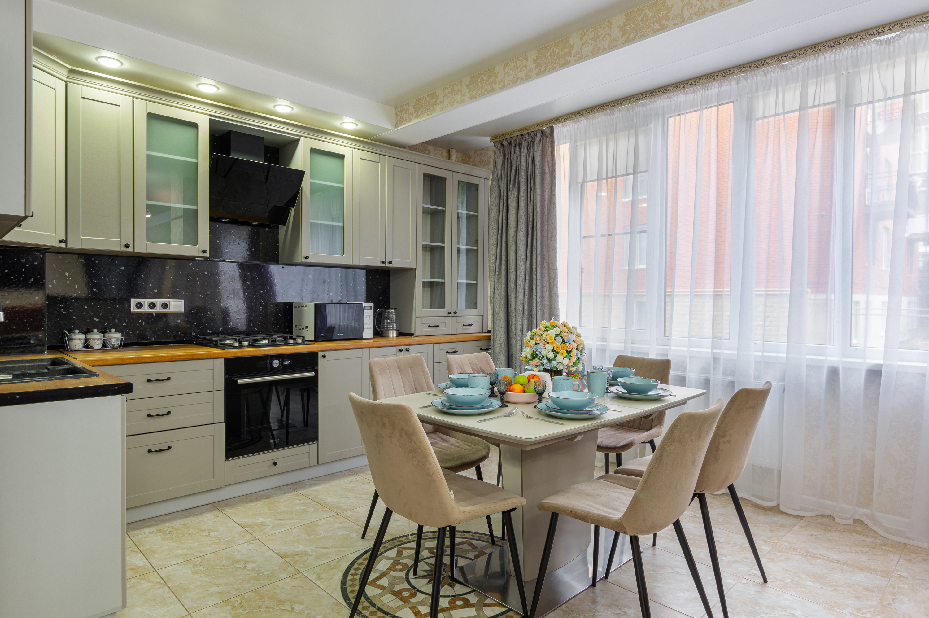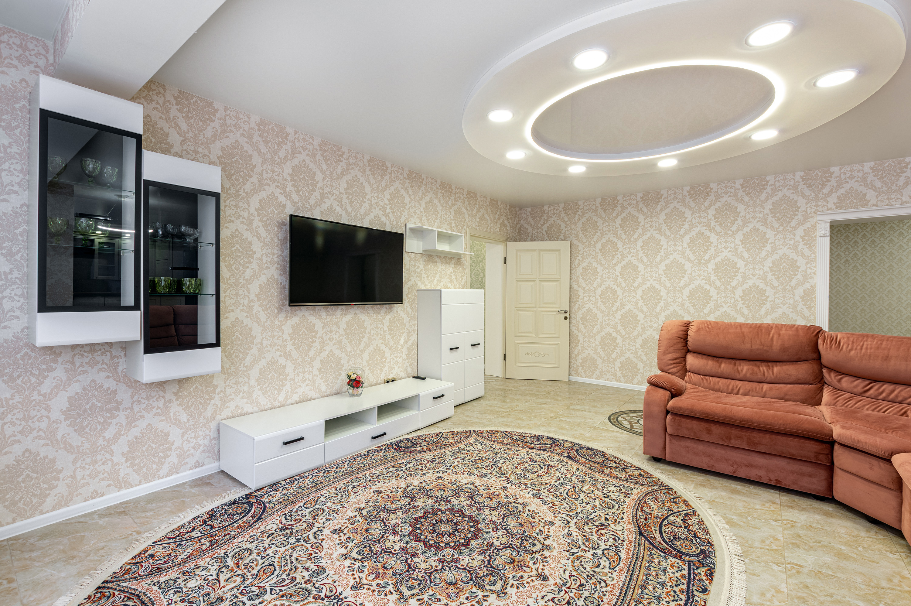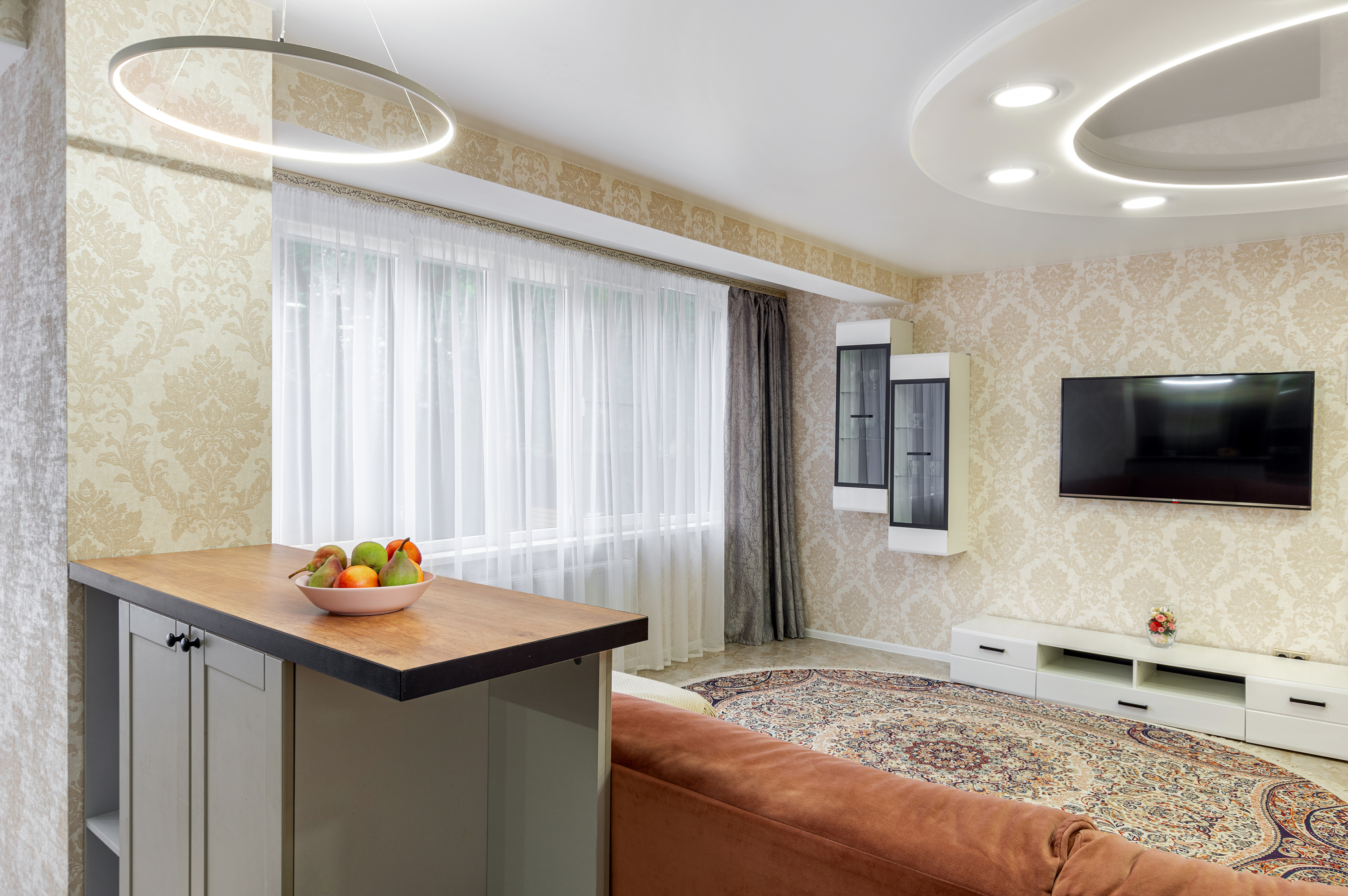 Просторные двухкомнатные апартаменты площадью 88 квадратных метров рассчитаны на комфортное размещение четырёх человек. В спальне установлена двуспальная кровать с прикроватными тумбочками, в гостиной — удобный диван. В каждой комнате есть телевизор, а на всей территории доступен беспроводной Wi-Fi. Кухня полностью оборудована для самостоятельного приготовления пищи: газовая плита с духовым шкафом, холодильник, микроволновая печь, электрочайник и полный набор посуды. Для бытовых нужд предусмотрены стиральная машина, утюг с гладильной доской.