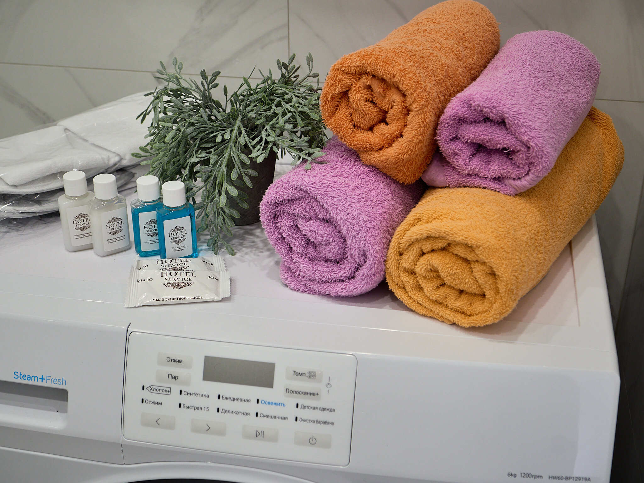 Ванная комната укомплектована туалетными принадлежностями. Гостей ждут свежее постельное бельё и полотенца. Приятным дополнением станет умная колонка с «Салютом», готовая развлечь гостей в любой момент. Это продуманное жилое пространство в центре Кисловодска, созданное для спокойного и незабываемого отдыха.