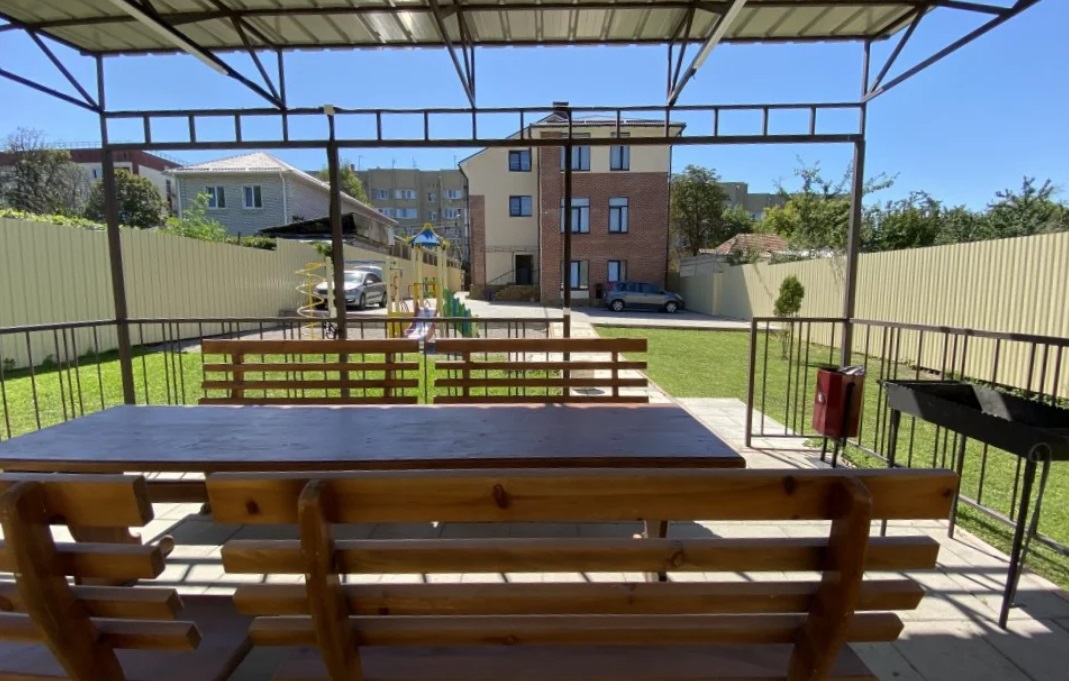 Оборудована столовая, по утрам постояльцам предлагают завтраки. На территории обустроена барбекю-зона с беседкой и мангалом, установлено детское игровое оборудование. Работает сауна с вместительной комнатой отдыха. Во дворе выделено место для гостевого транспорта.