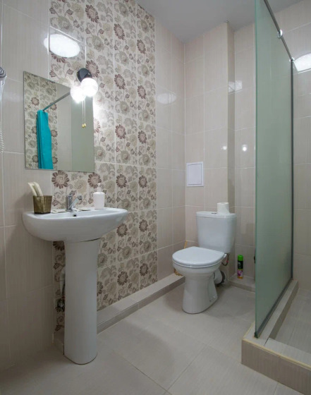 с душем: ; туалетные принадлежности: ; фен: ;