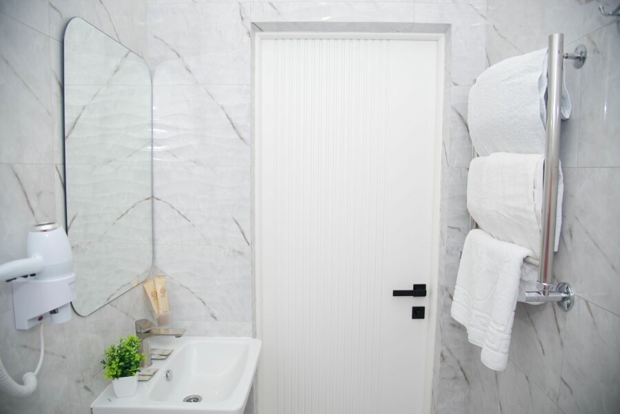 с душем: ; туалетные принадлежности: ; фен: ;