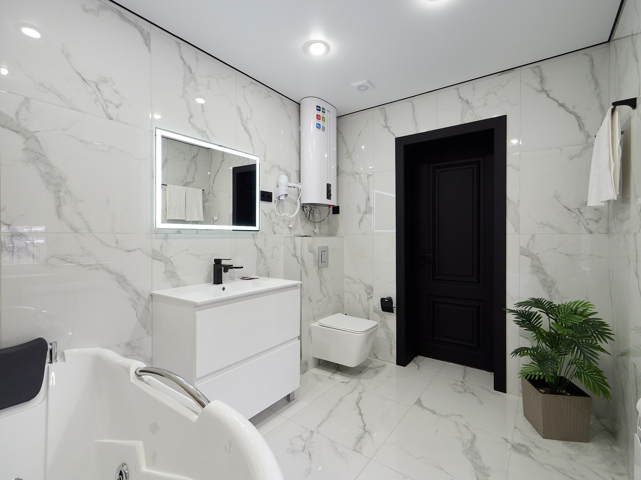 с джакузи: ; туалетные принадлежности: ; фен: ;